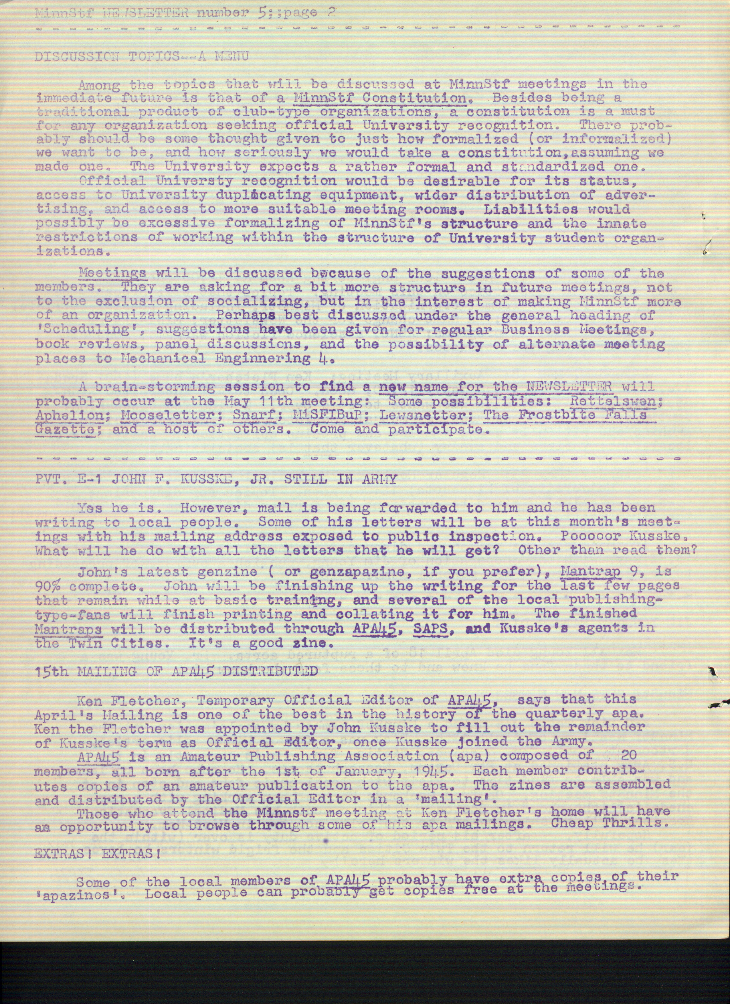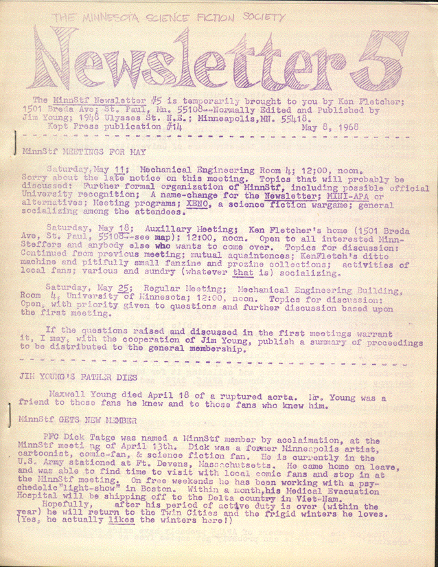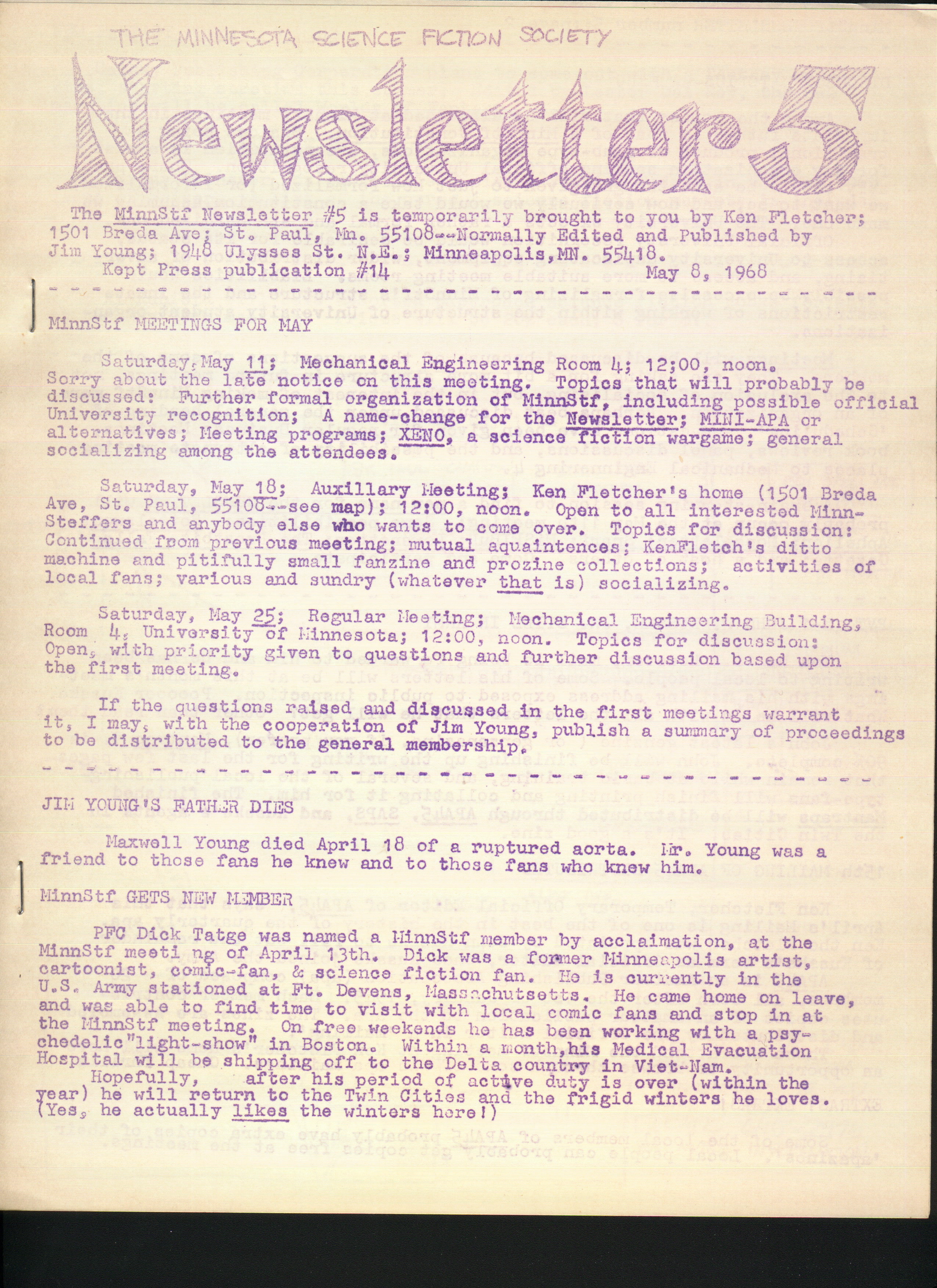 The Minnesota Science Fiction Newsletter 5 was published before 1977 without a copyright notice and so is in the public domain.