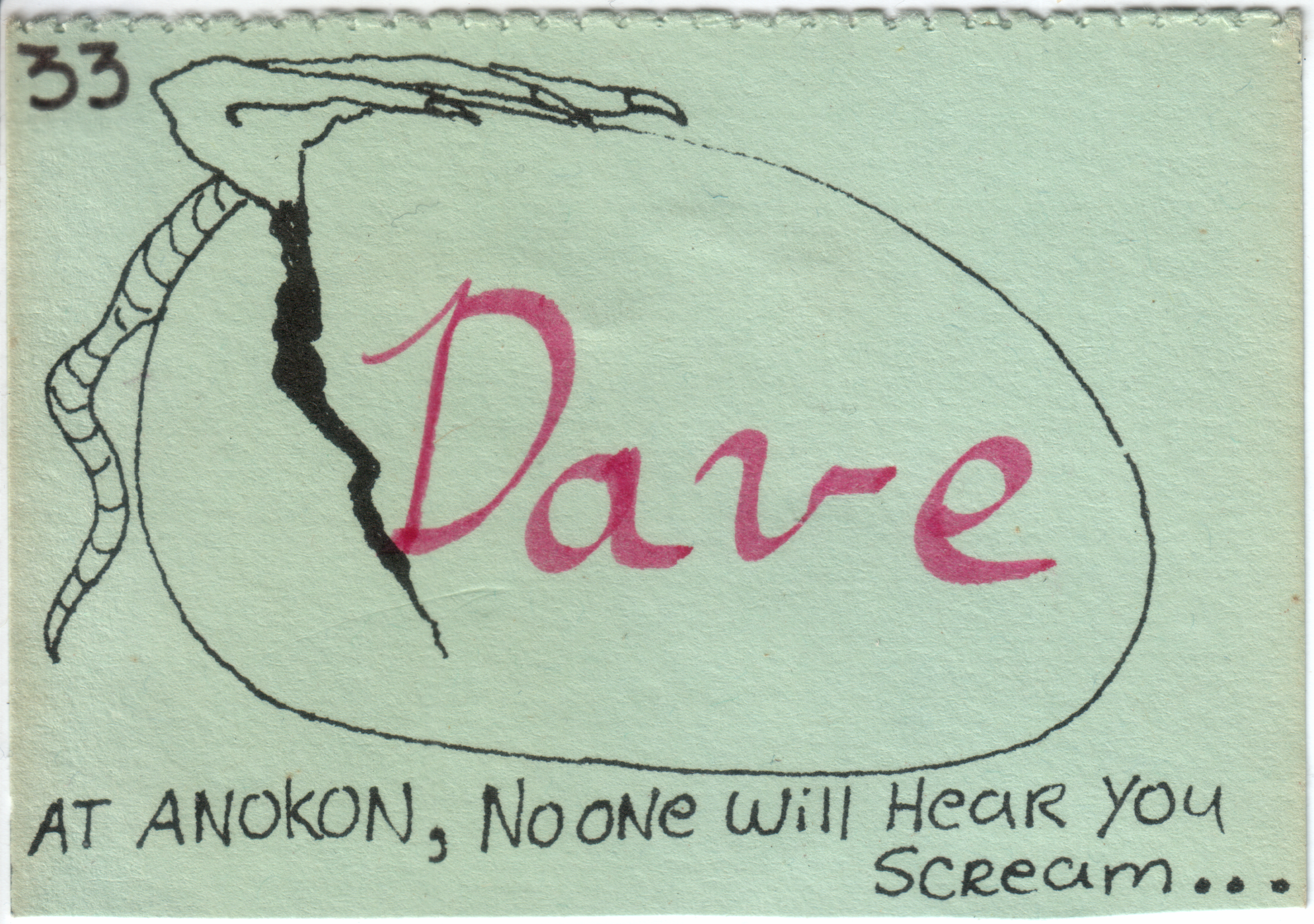 Here's an Anokon badge that doesn't say what year it is. I am almost sure that it must be for Anokon 2 because Alien ("In space, no one can hear you scream") didn't premiere until May 1979.