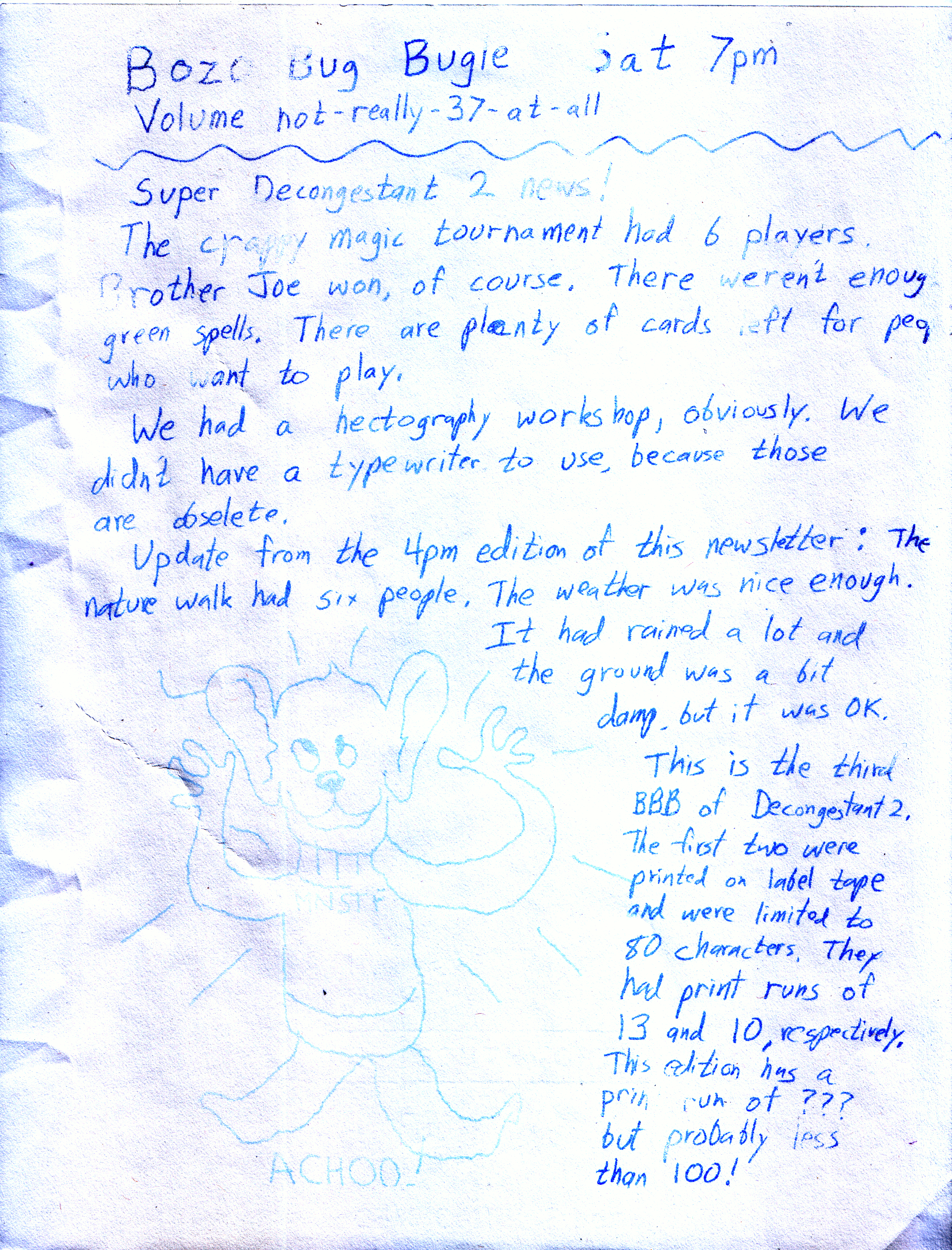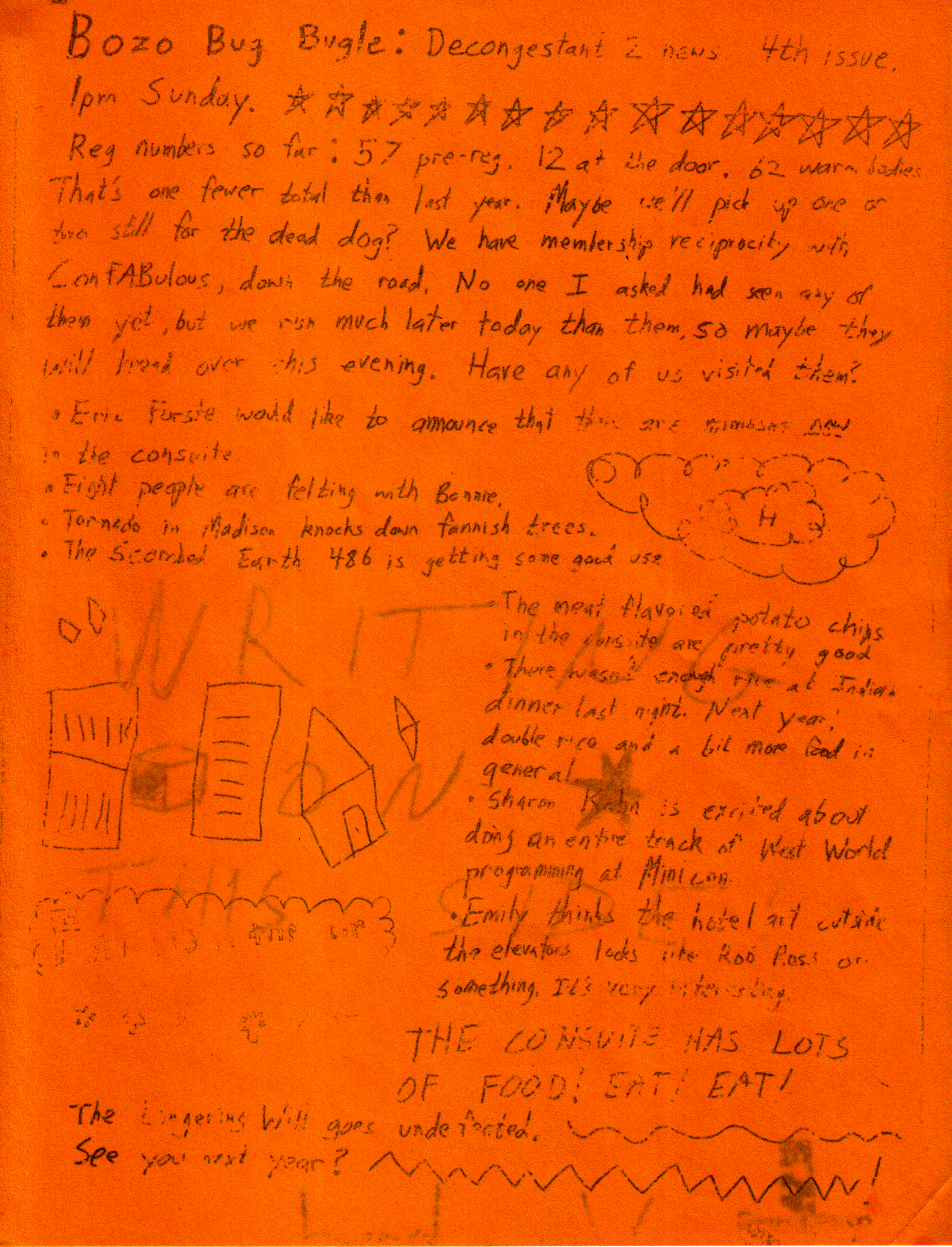 Decongestant 2 is over. Fun was had! There were even some educational and productive activities for people who wanted them. We had 70 members, all but four of whom attended. 58 pre-reg'd. This included 7 children and teens.
