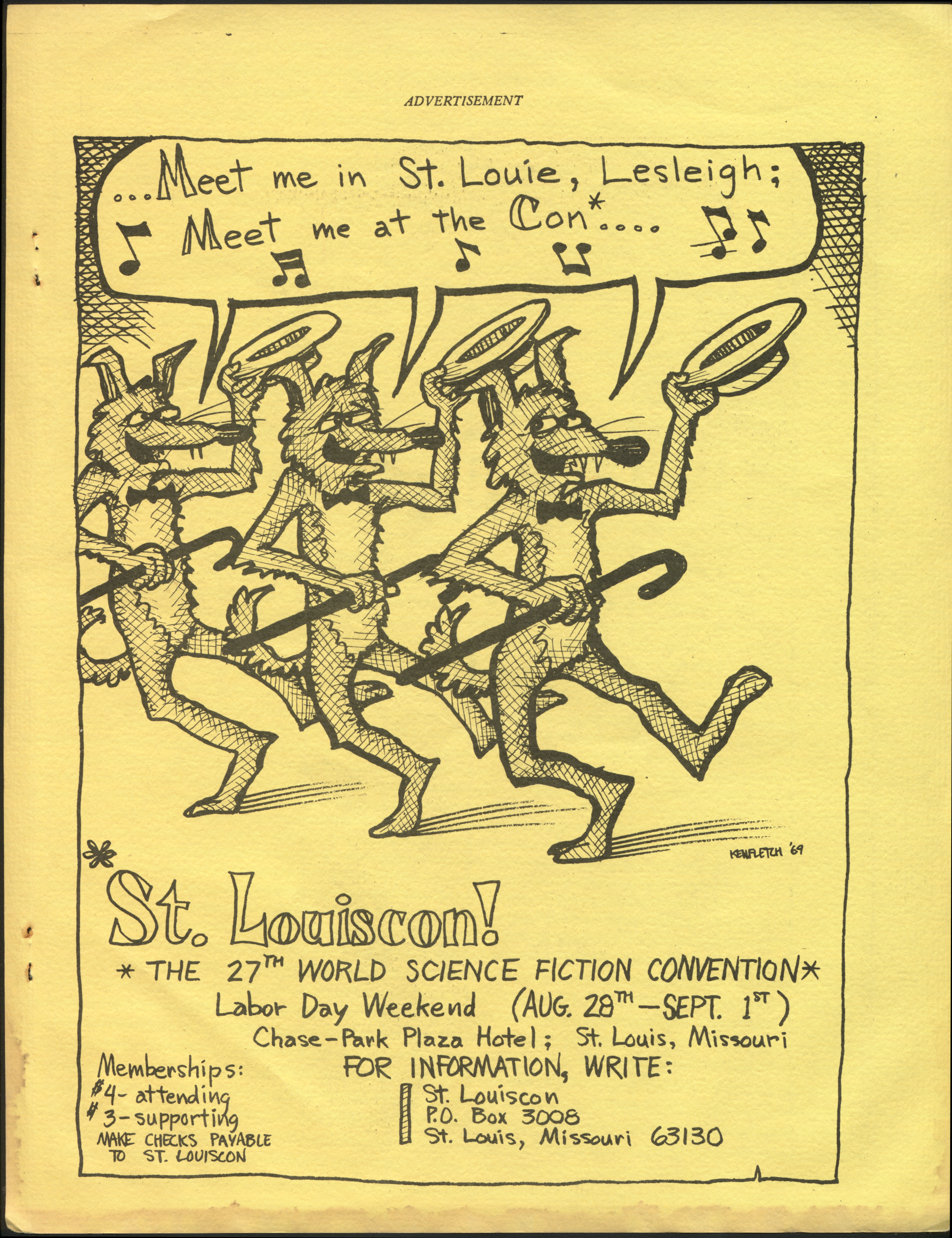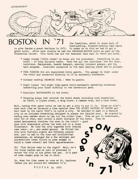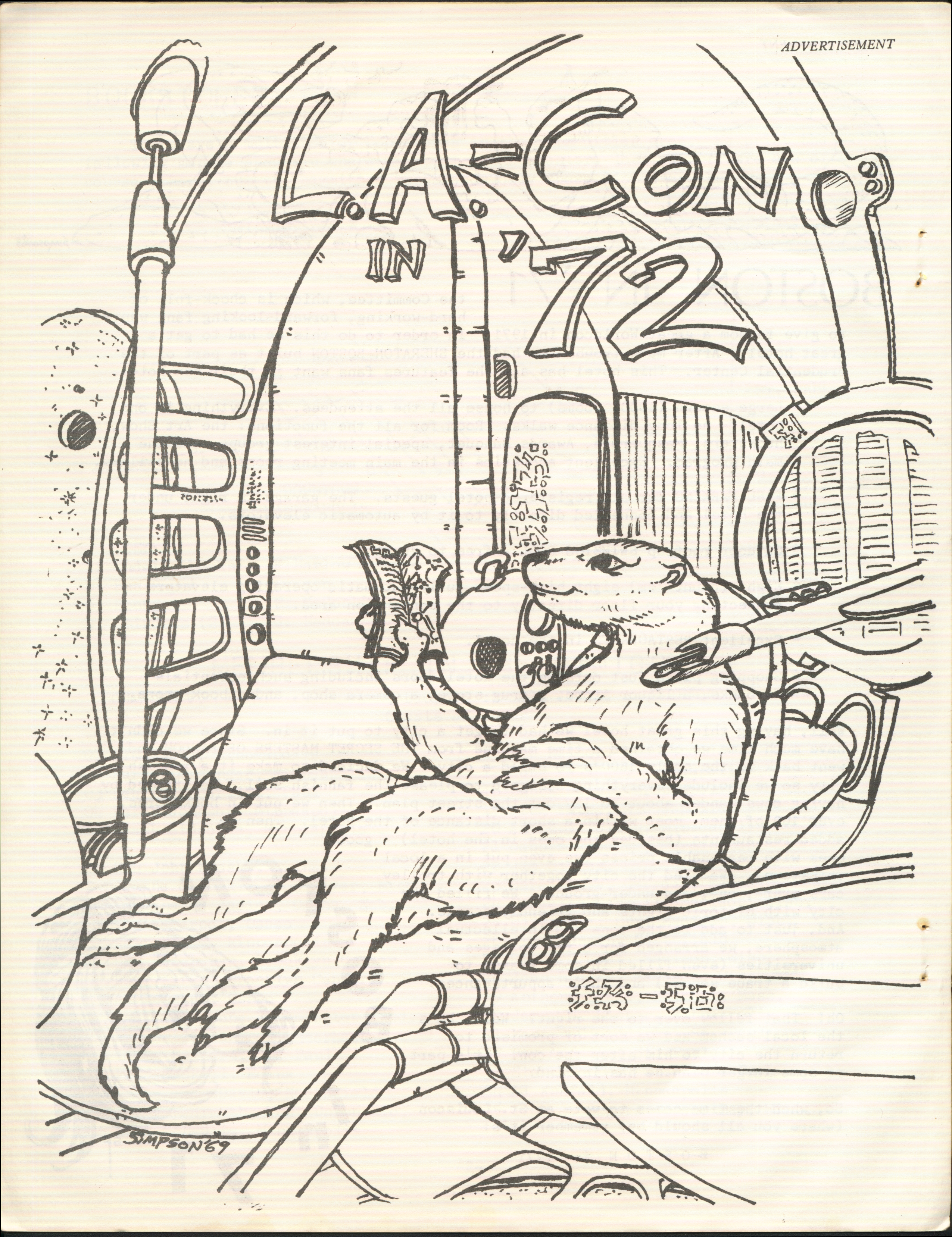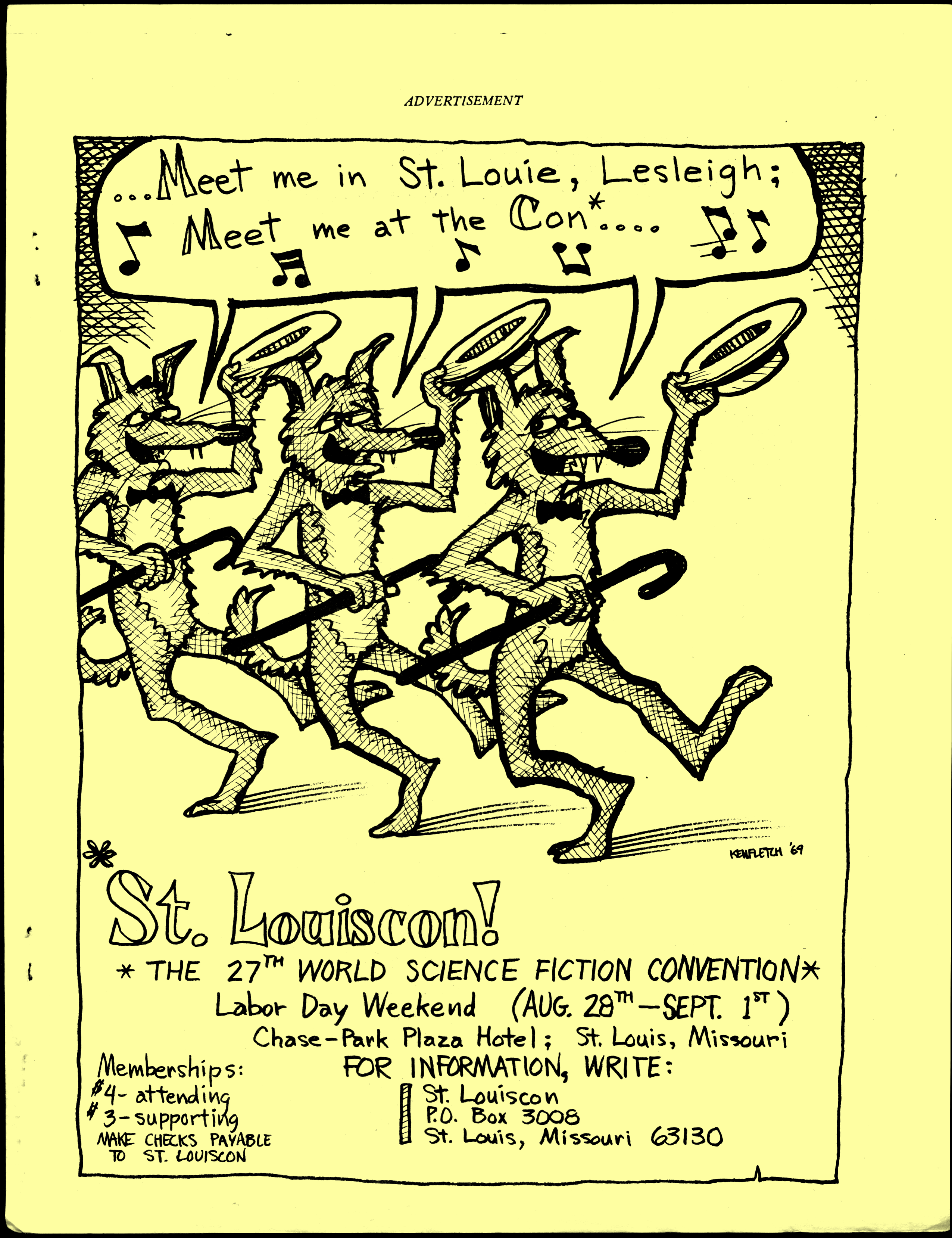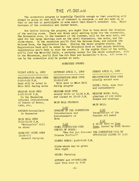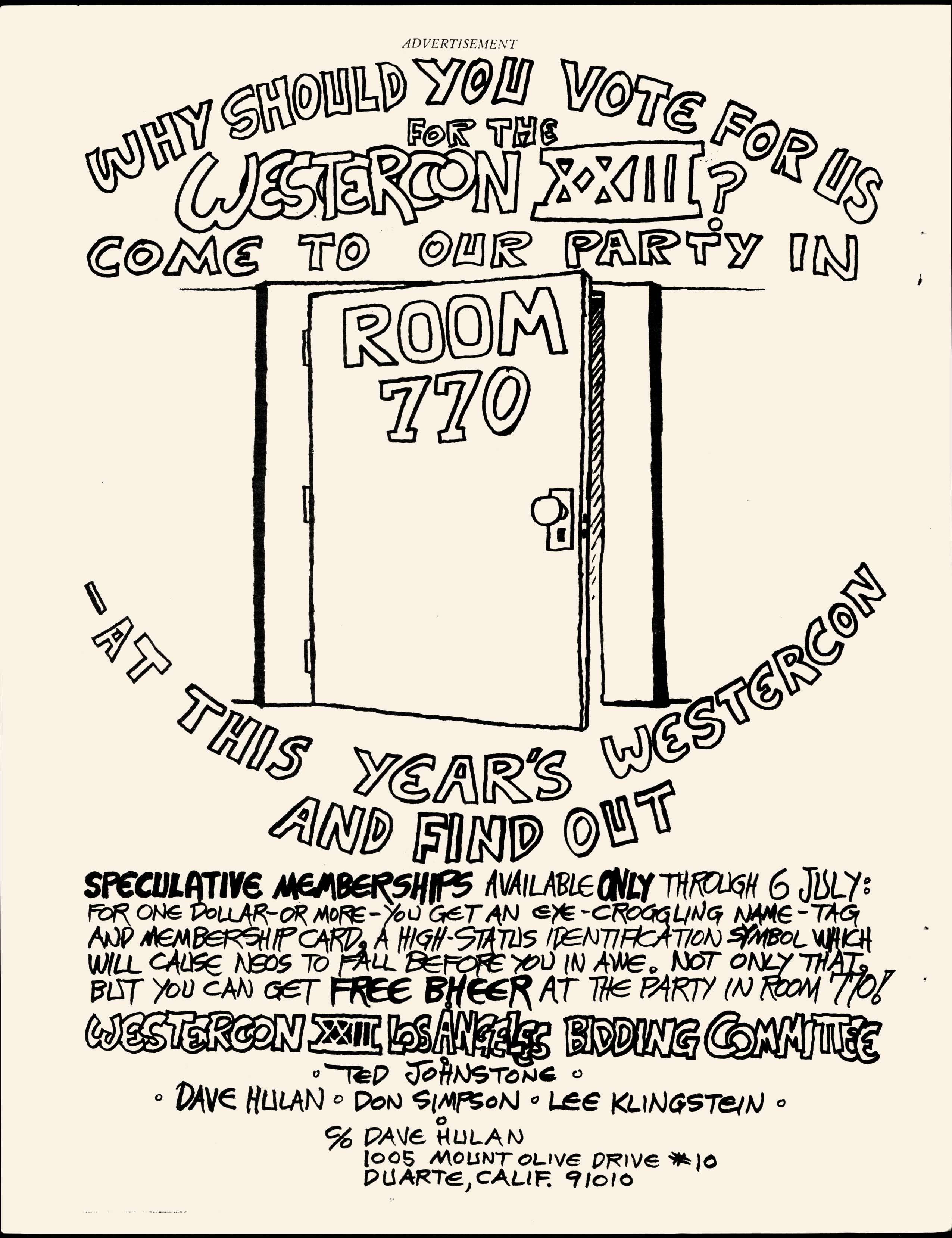 Marge Lessigner, Treasurer Ken Fletcher, Advertising Karen Johnson, Registration Frank Stodolka, Art-show and Book Room Lorie Berndt, Fred Haskell, Al Bencker, Rein Konen, Dan Musick Louis Fallert, Carol Stodolka, Nate Bucklin, Members of the Committee