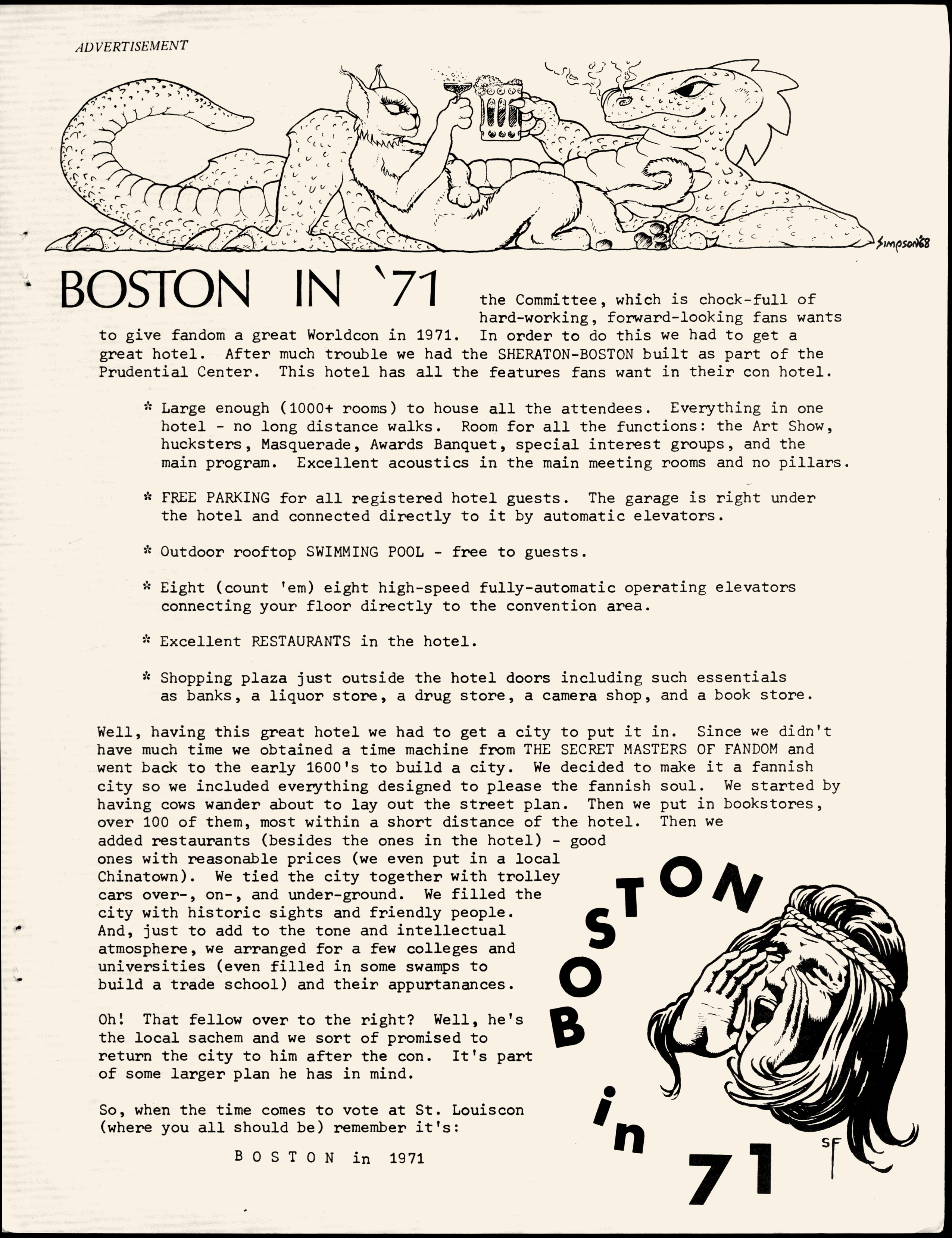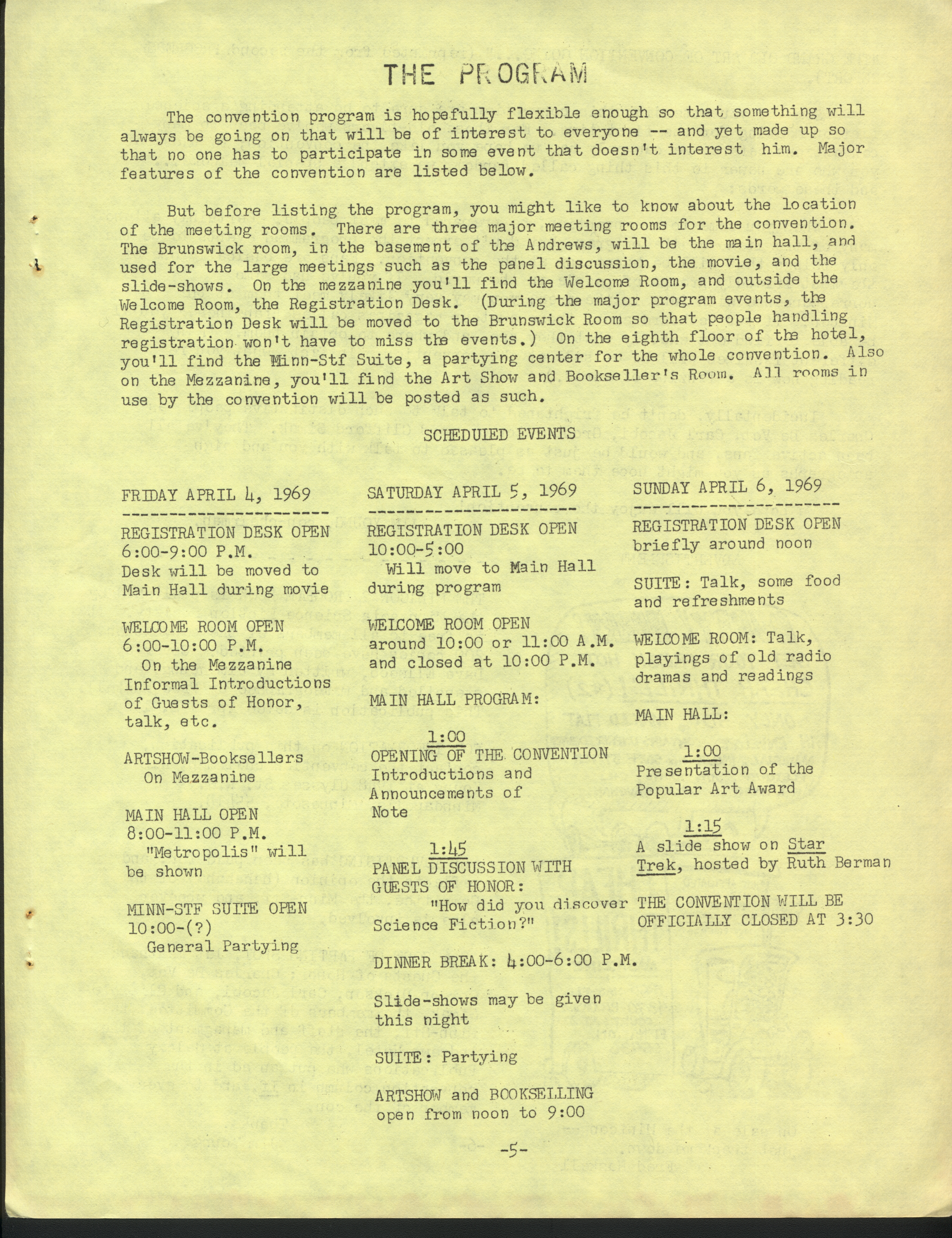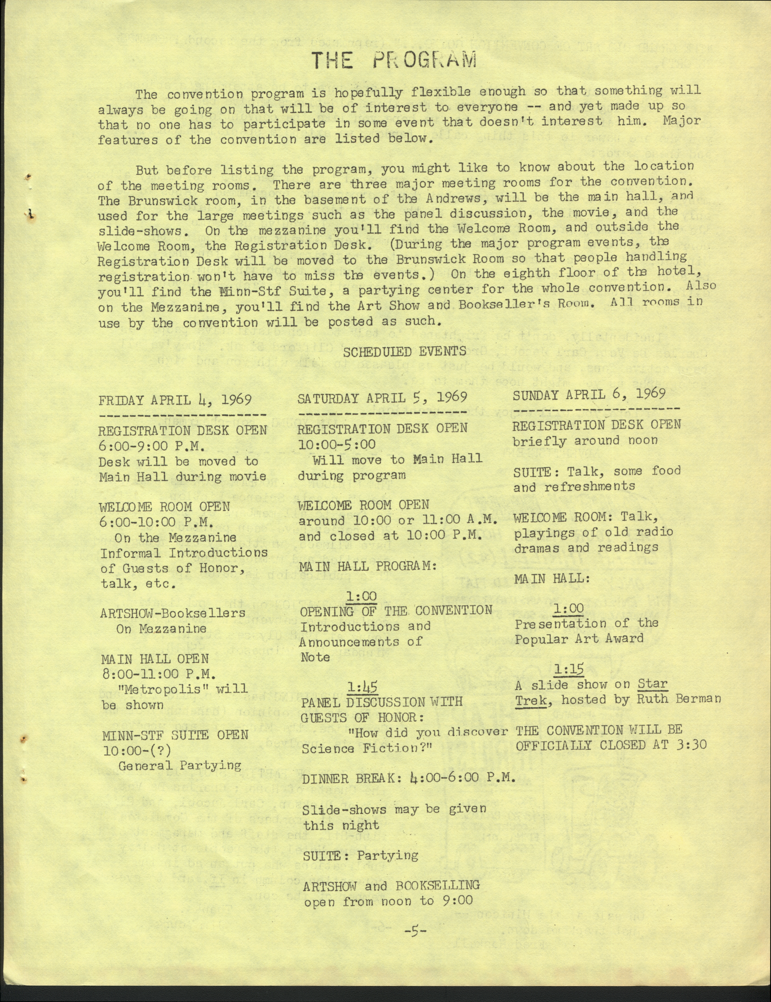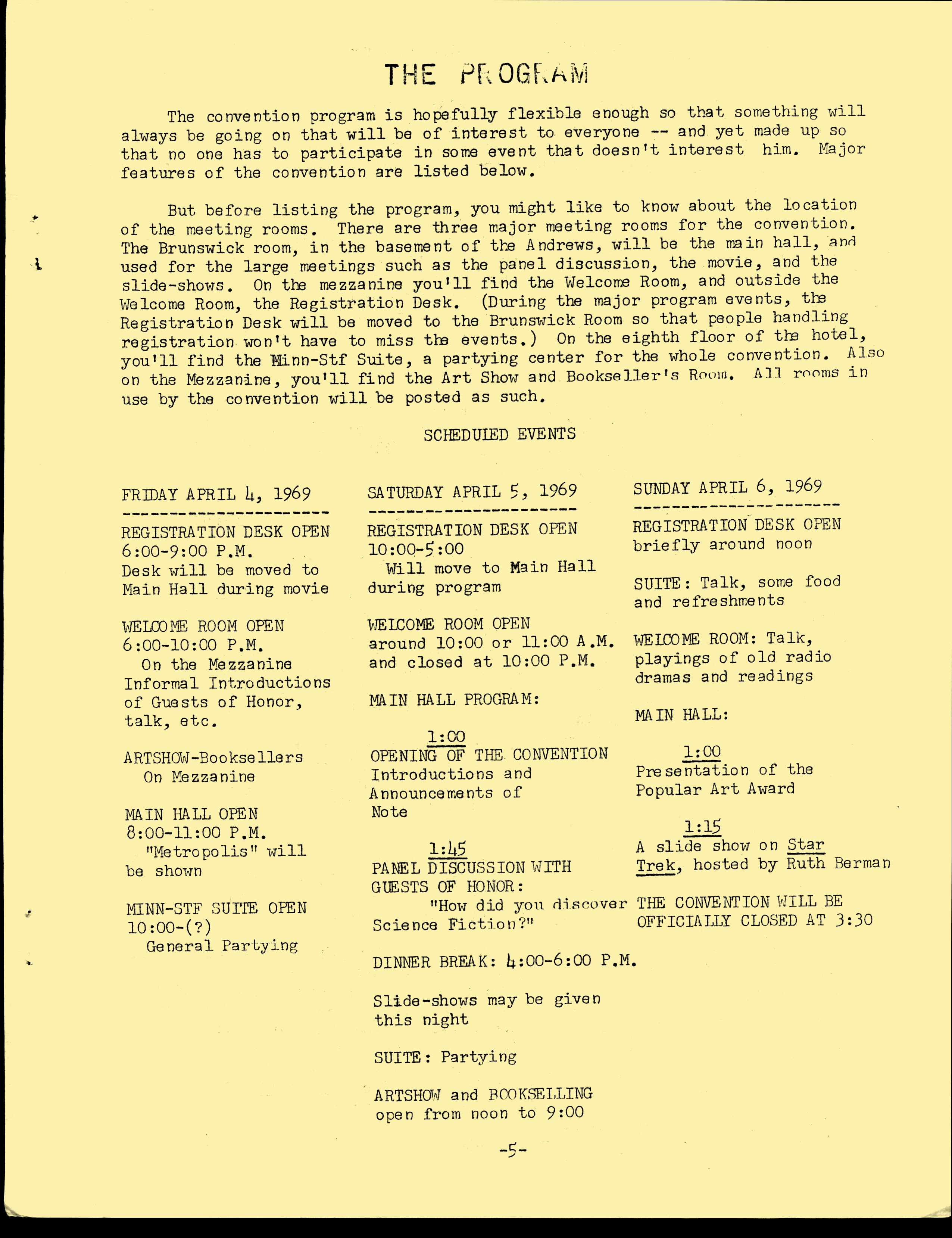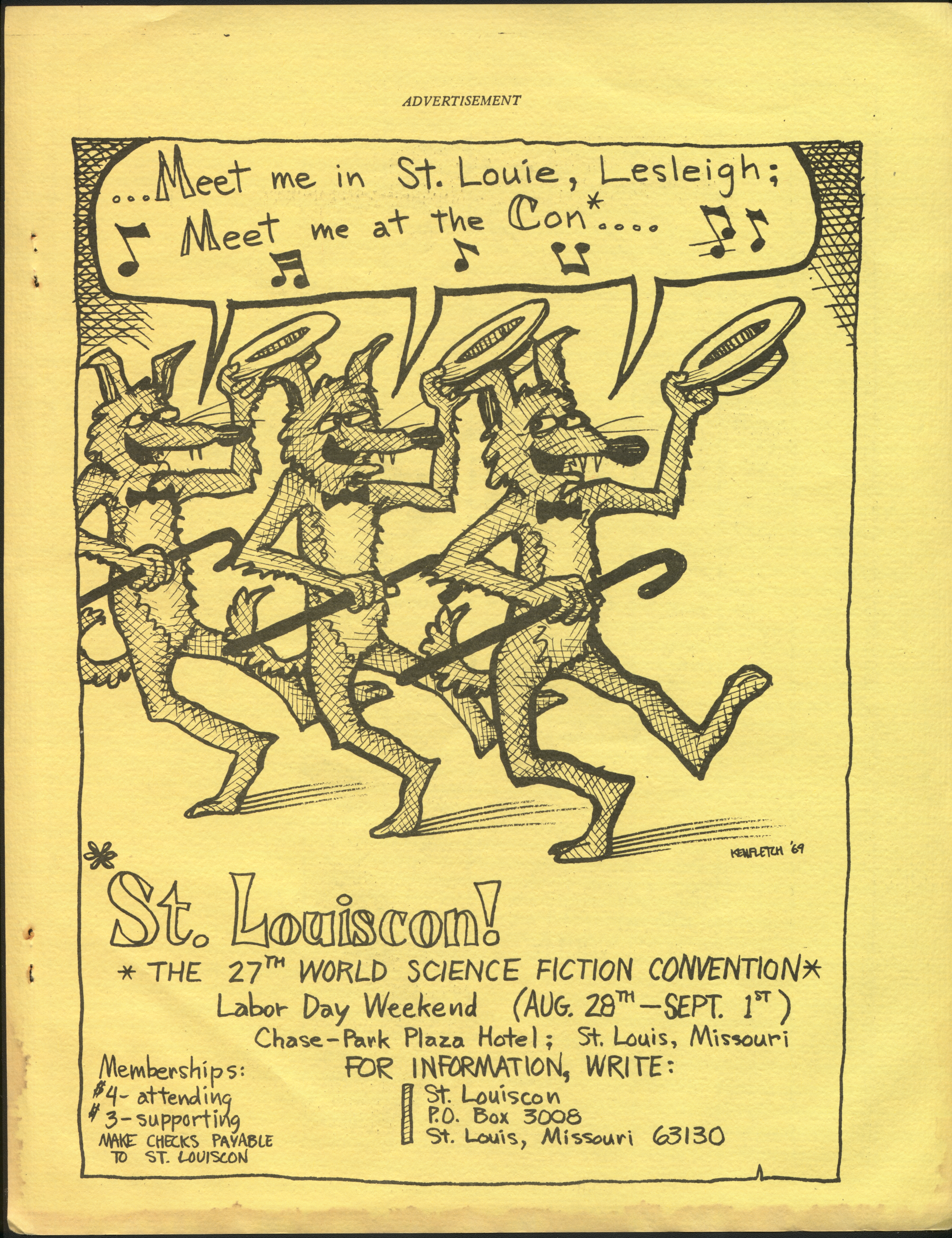 Marge Lessigner, Treasurer Ken Fletcher, Advertising Karen Johnson, Registration Frank Stodolka, Art-show and Book Room Lorie Berndt, Fred Haskell, Al Bencker, Rein Konen, Dan Musick Louis Fallert, Carol Stodolka, Nate Bucklin, Members of the Committee
