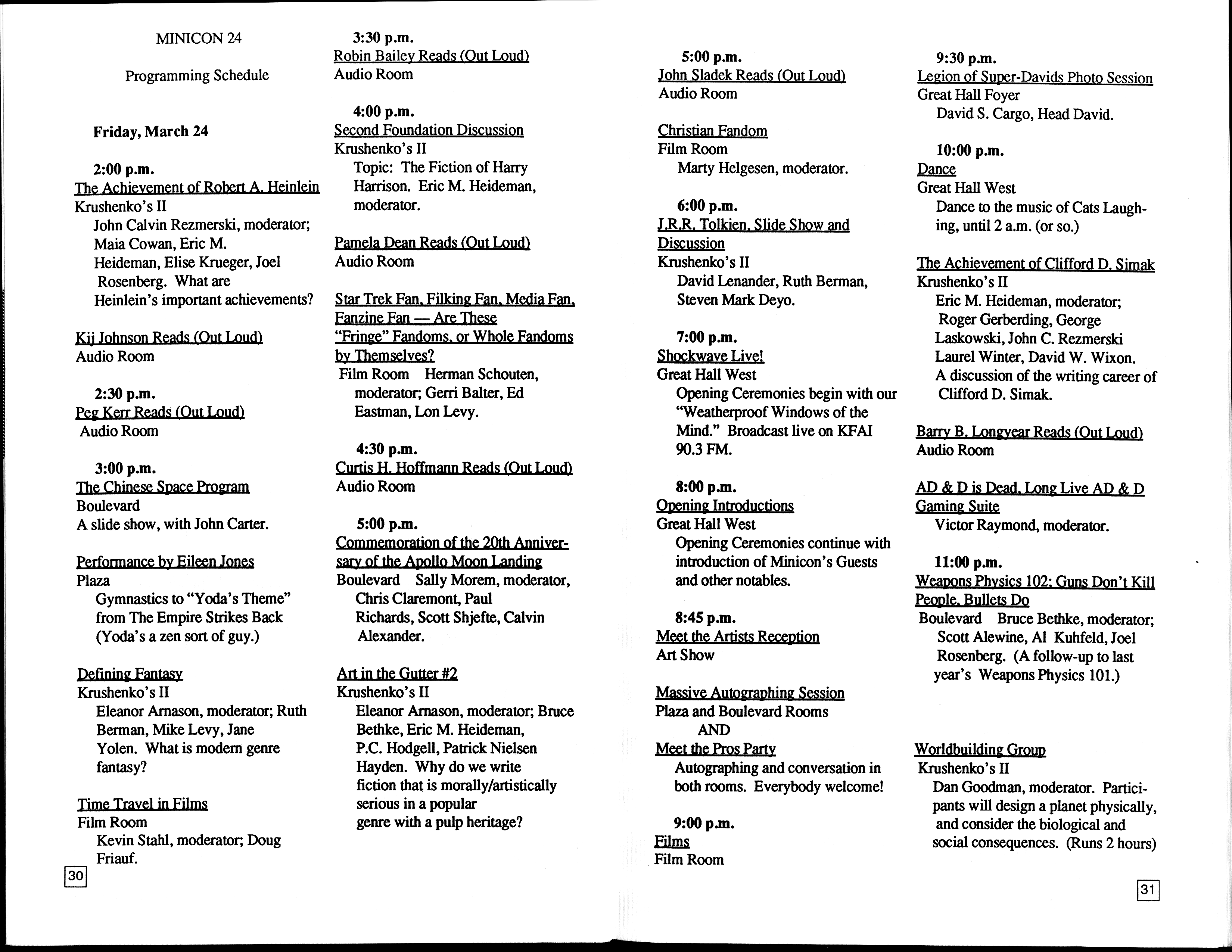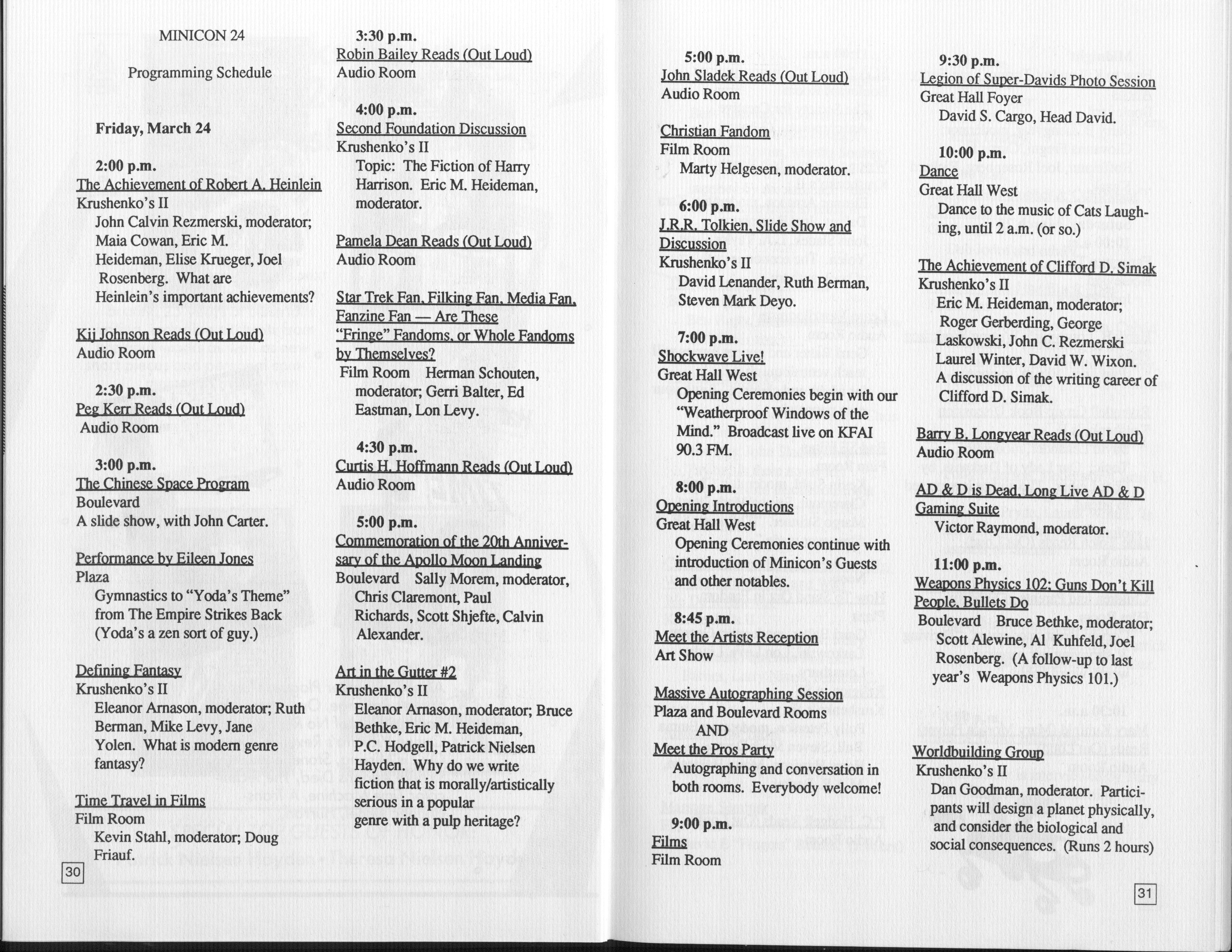 Except as noted below, the parts of the Minicon 24 Program Book made available here are by