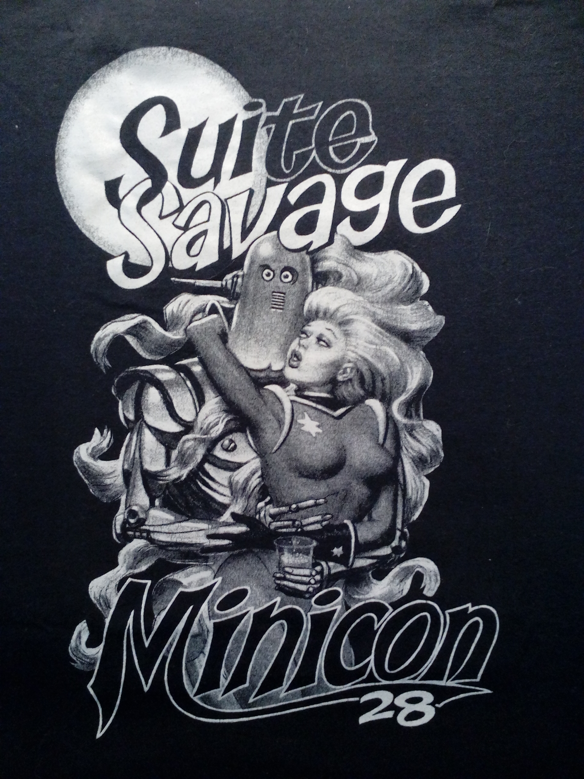 And we sold a sweatshirt, according to the program book. This is probably it, based on the date, although it is conceivable that these were not sold until Minicon 29. DD-B says this was our first venture into color printing (on shirts). This is the front; the back is blank: