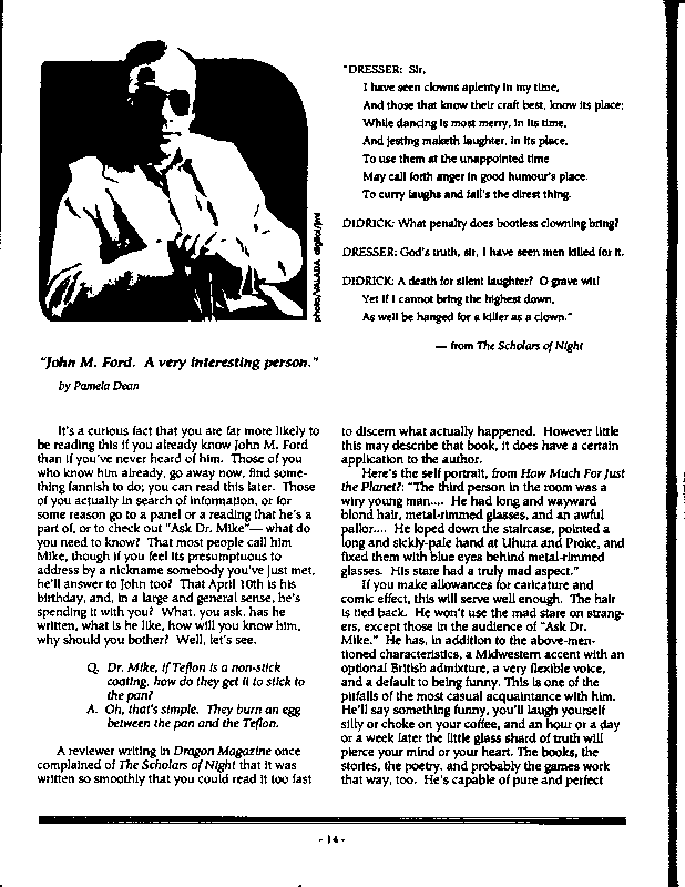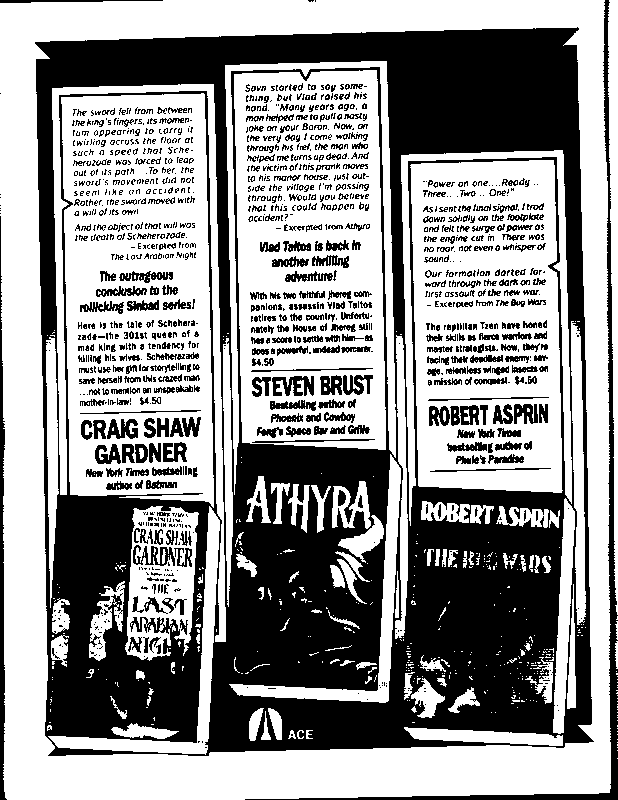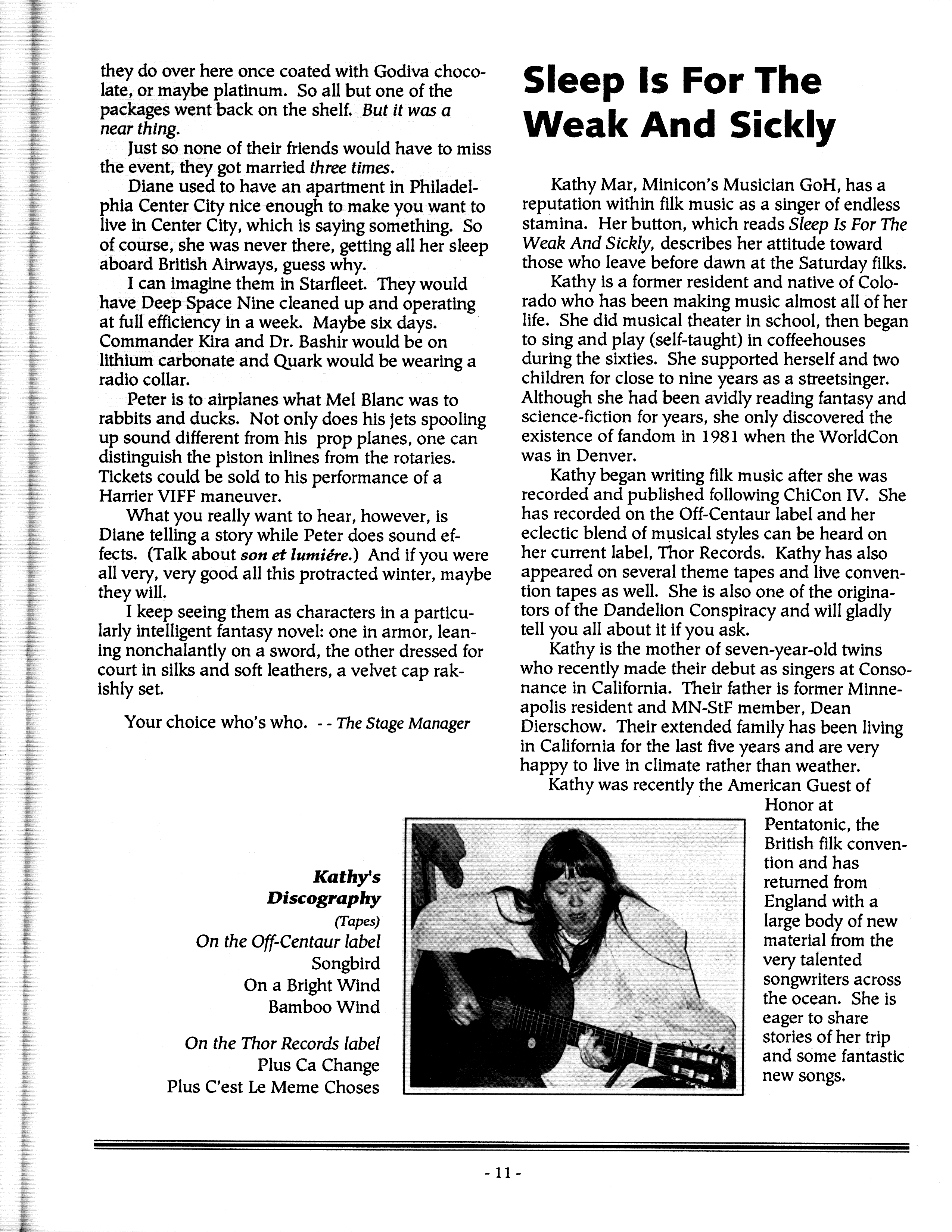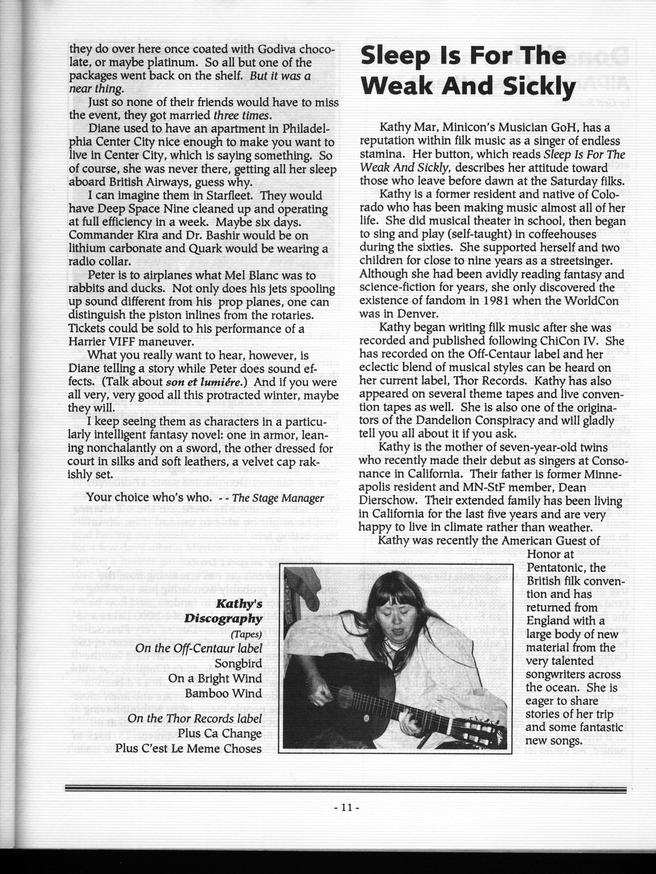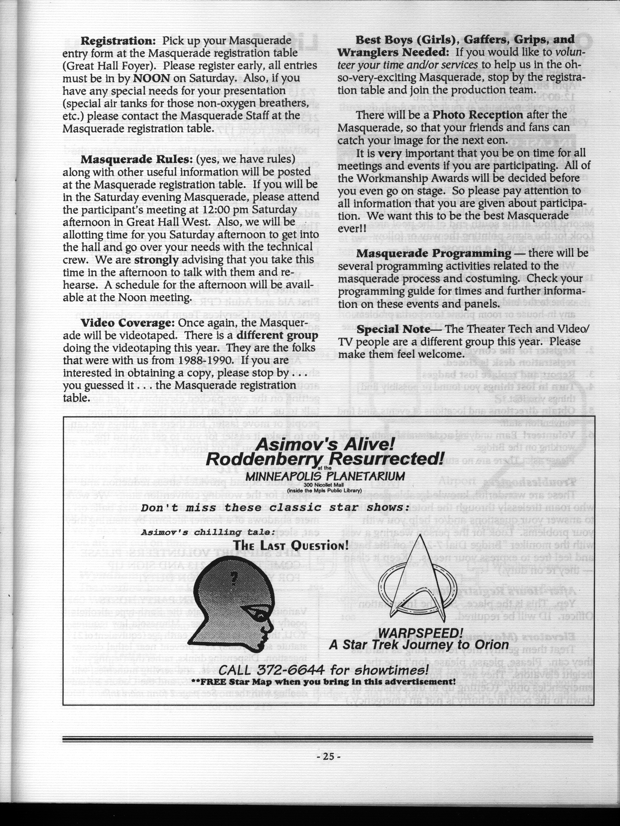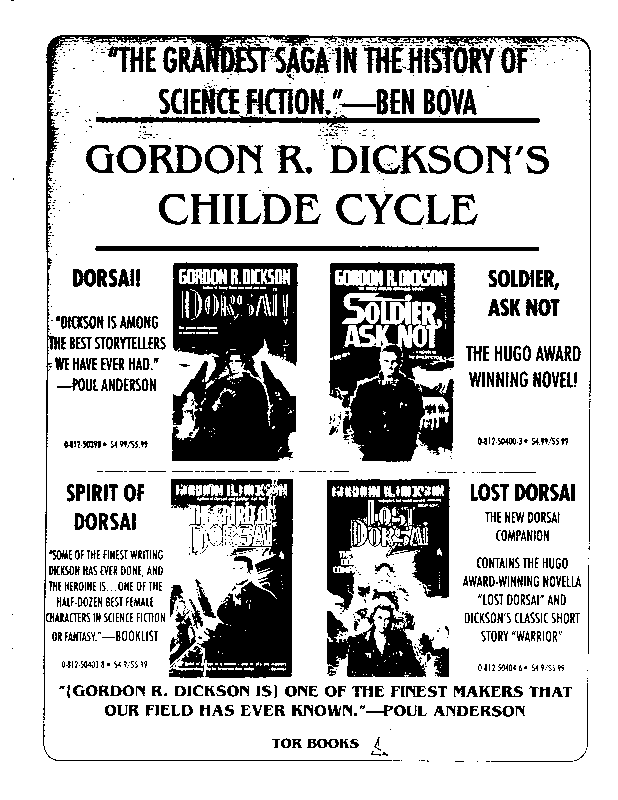 Art by Mary Hanson-Roberts, Cathy Buburuz, Chris Schneider, John Gabarron, Denise Boie, and Peggy Ranson is assumed to ok to reproduce here. The program book has an ambiguous copyright statement and we don't know how to contact them, or have received no reply to our inquries. Take it to be © each of them, all rights reserved.