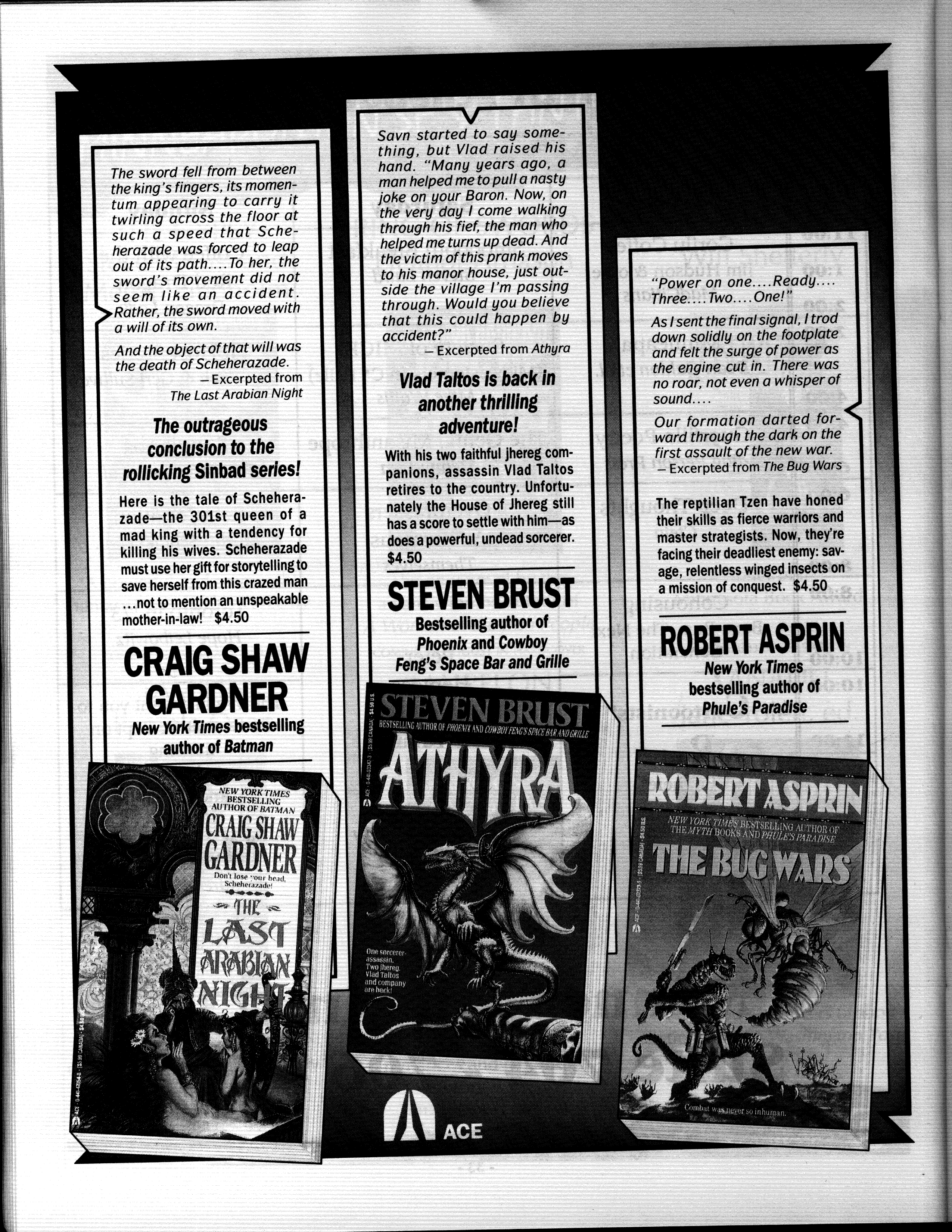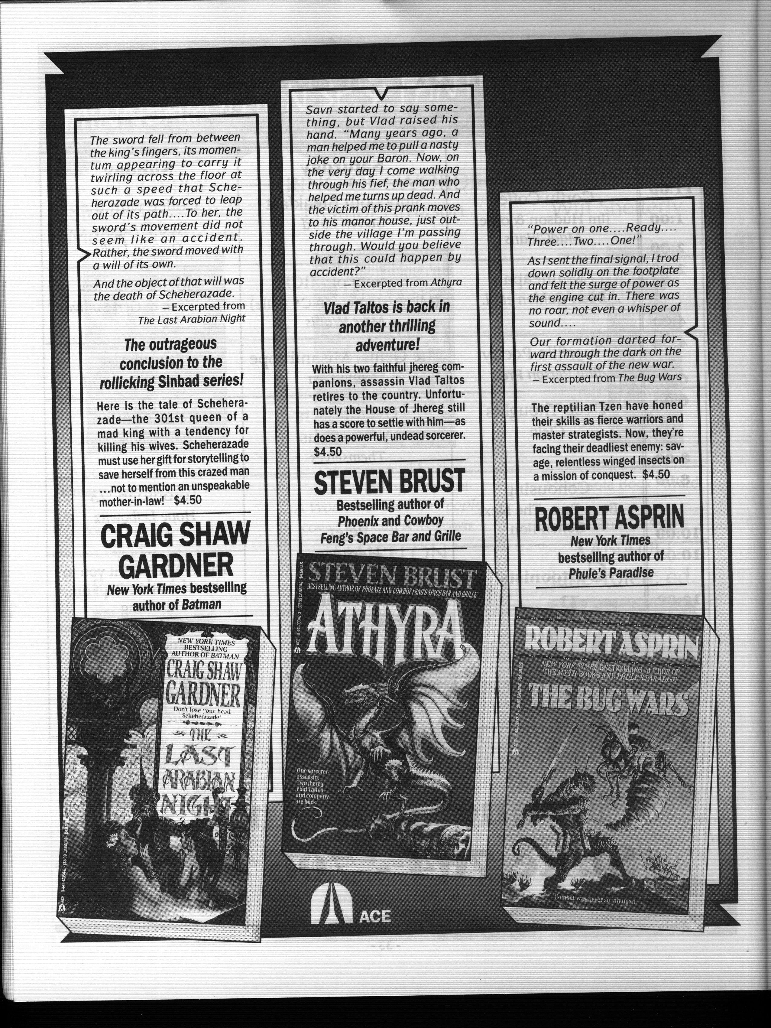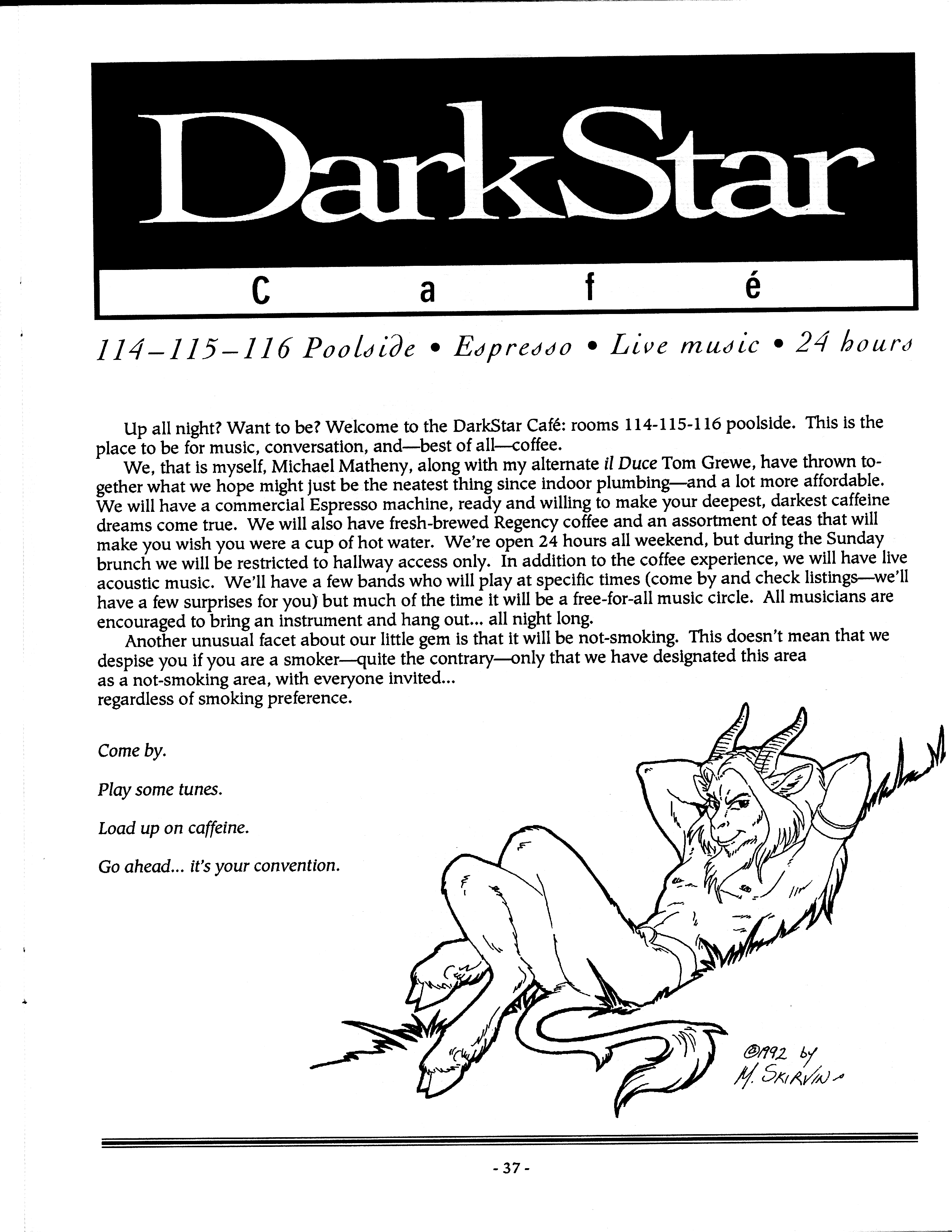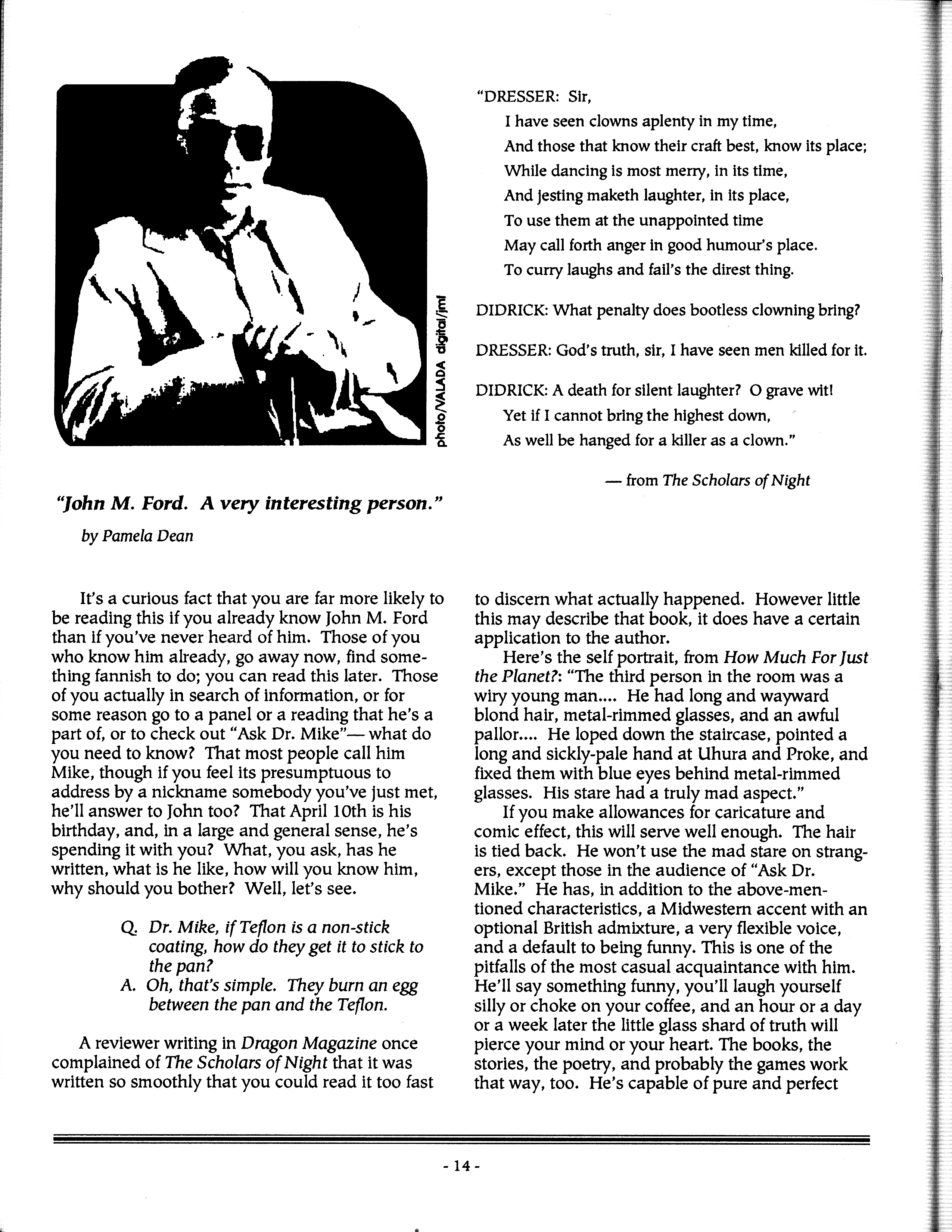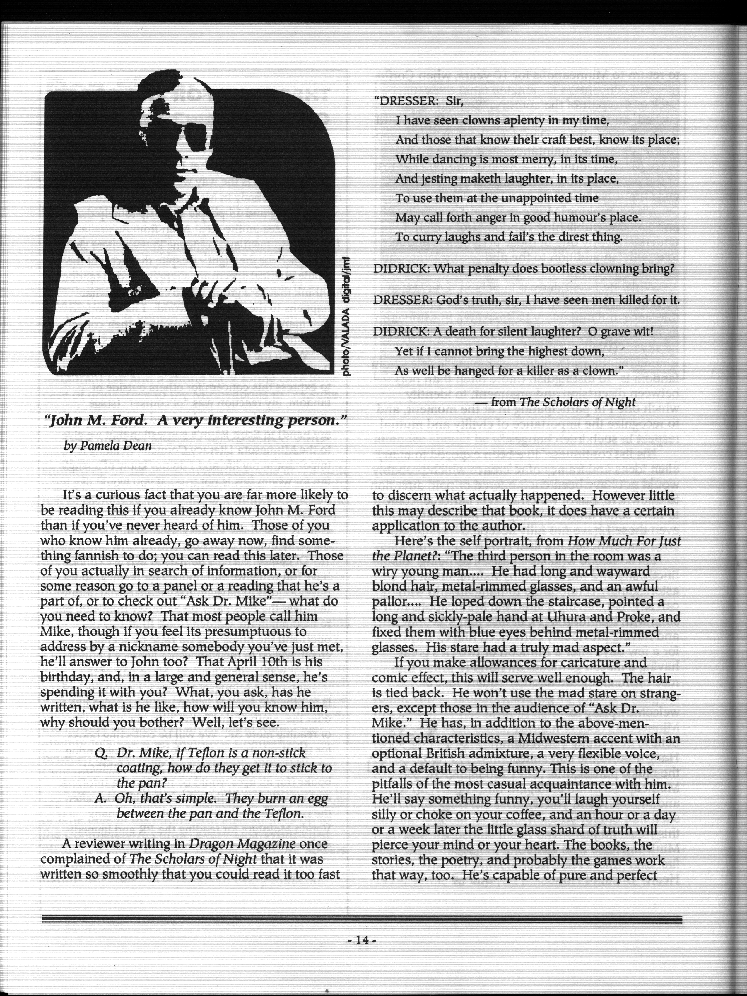 Art by Mary Hanson-Roberts, Cathy Buburuz, Chris Schneider, John Gabarron, Denise Boie, and Peggy Ranson is assumed to ok to reproduce here. The program book has an ambiguous copyright statement and we don't know how to contact them, or have received no reply to our inquries. Take it to be © each of them, all rights reserved.