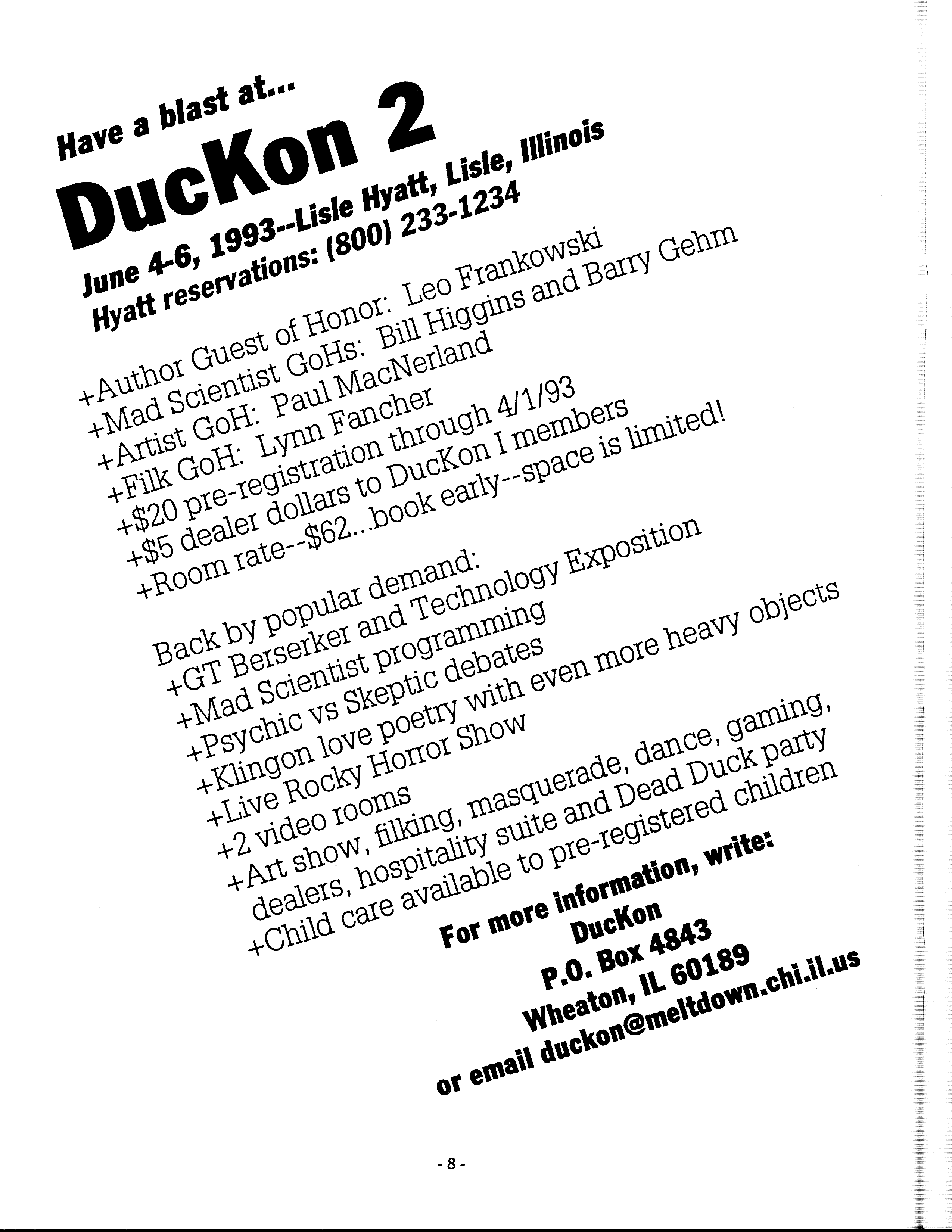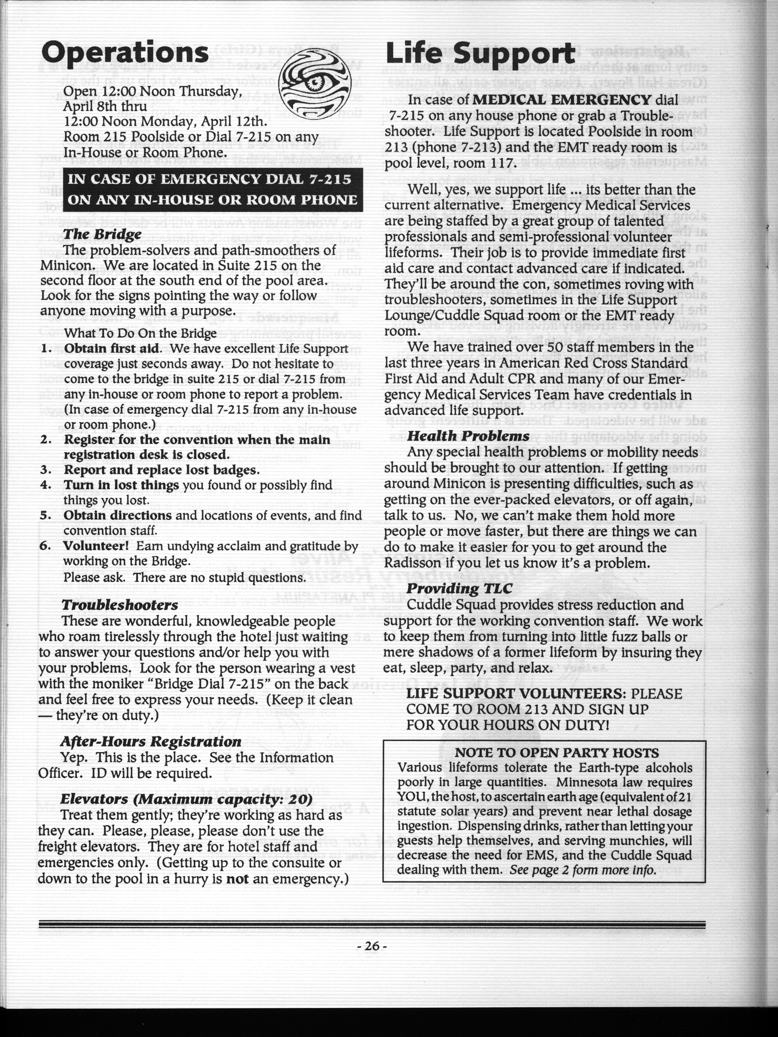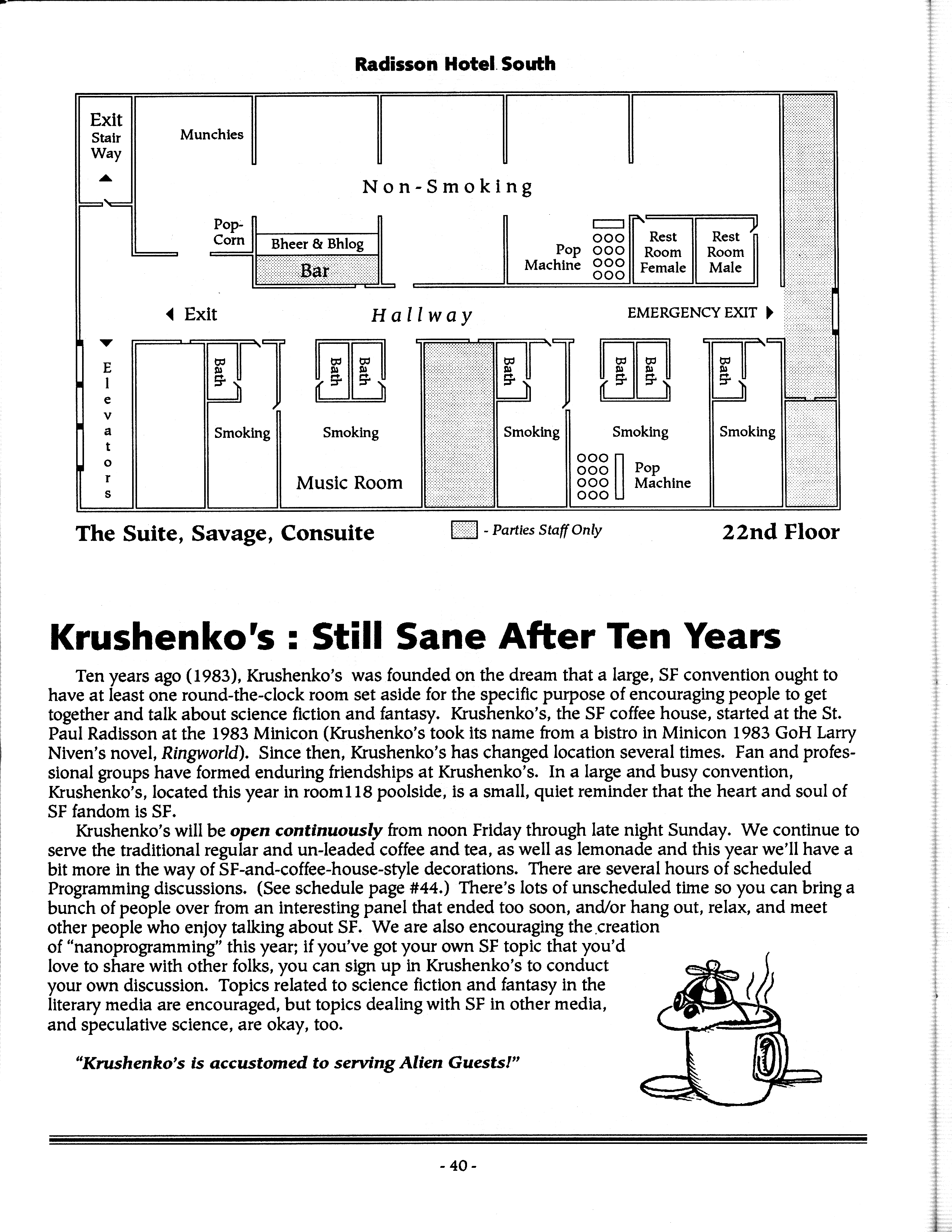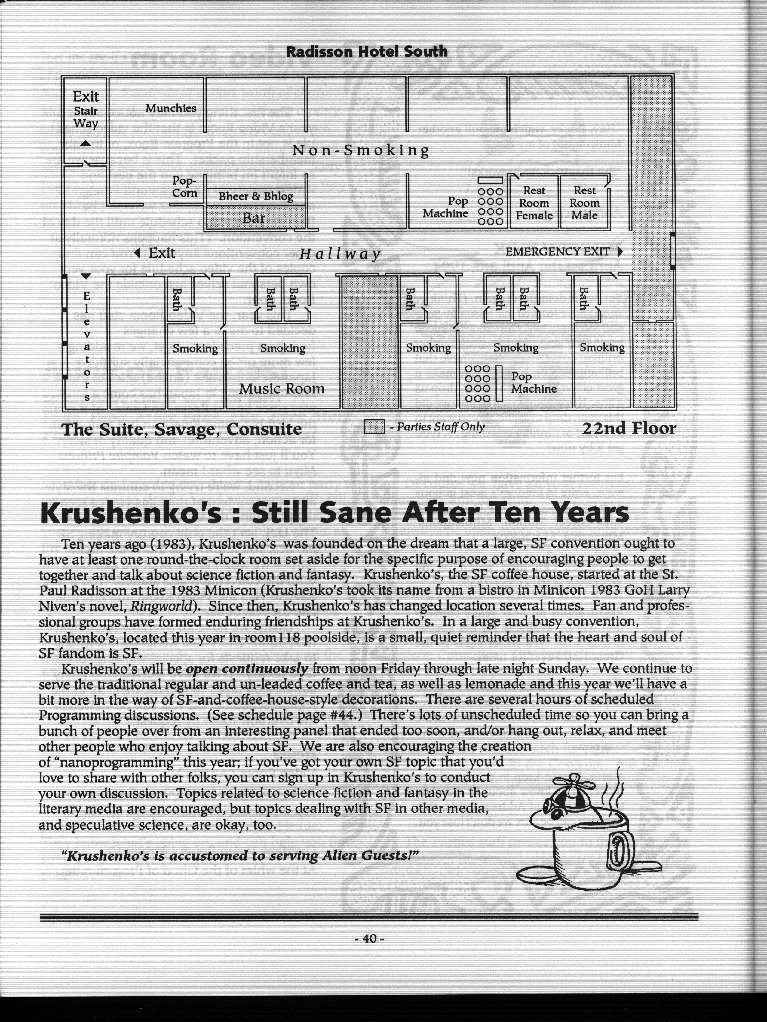 Minicon 28 was held primarily in the Radisson South. The Wyndham Garden Hotel was an overflow hotel. For unknown reasons, this was not listed on our big list of Minicons for many years, but this has now been corrected.