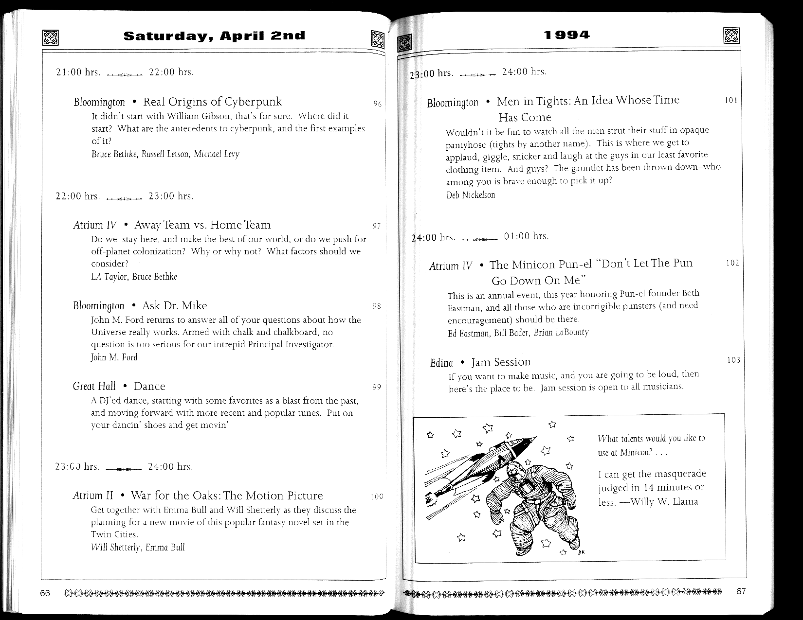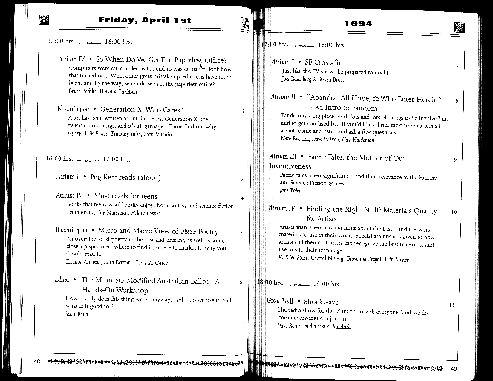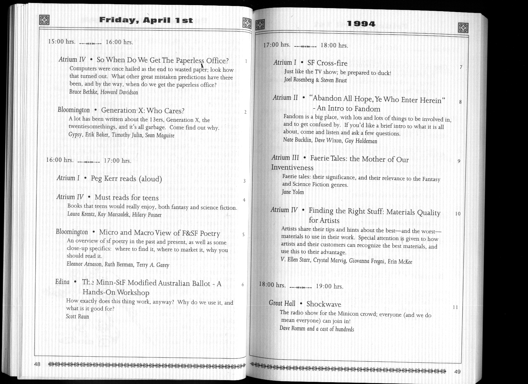 Here is a PDF of the Minicon 29 program book (16 MB).