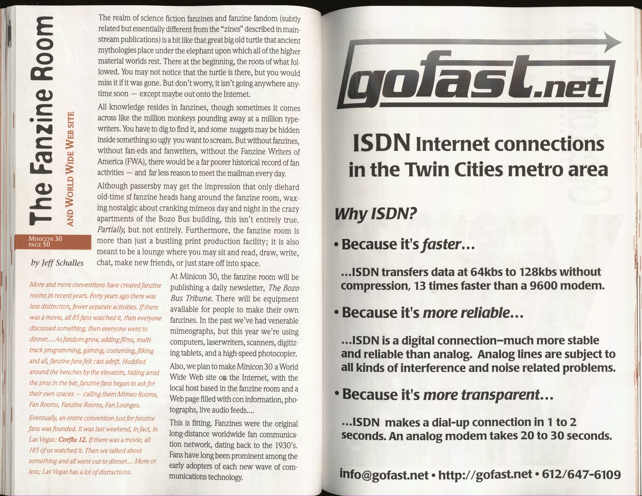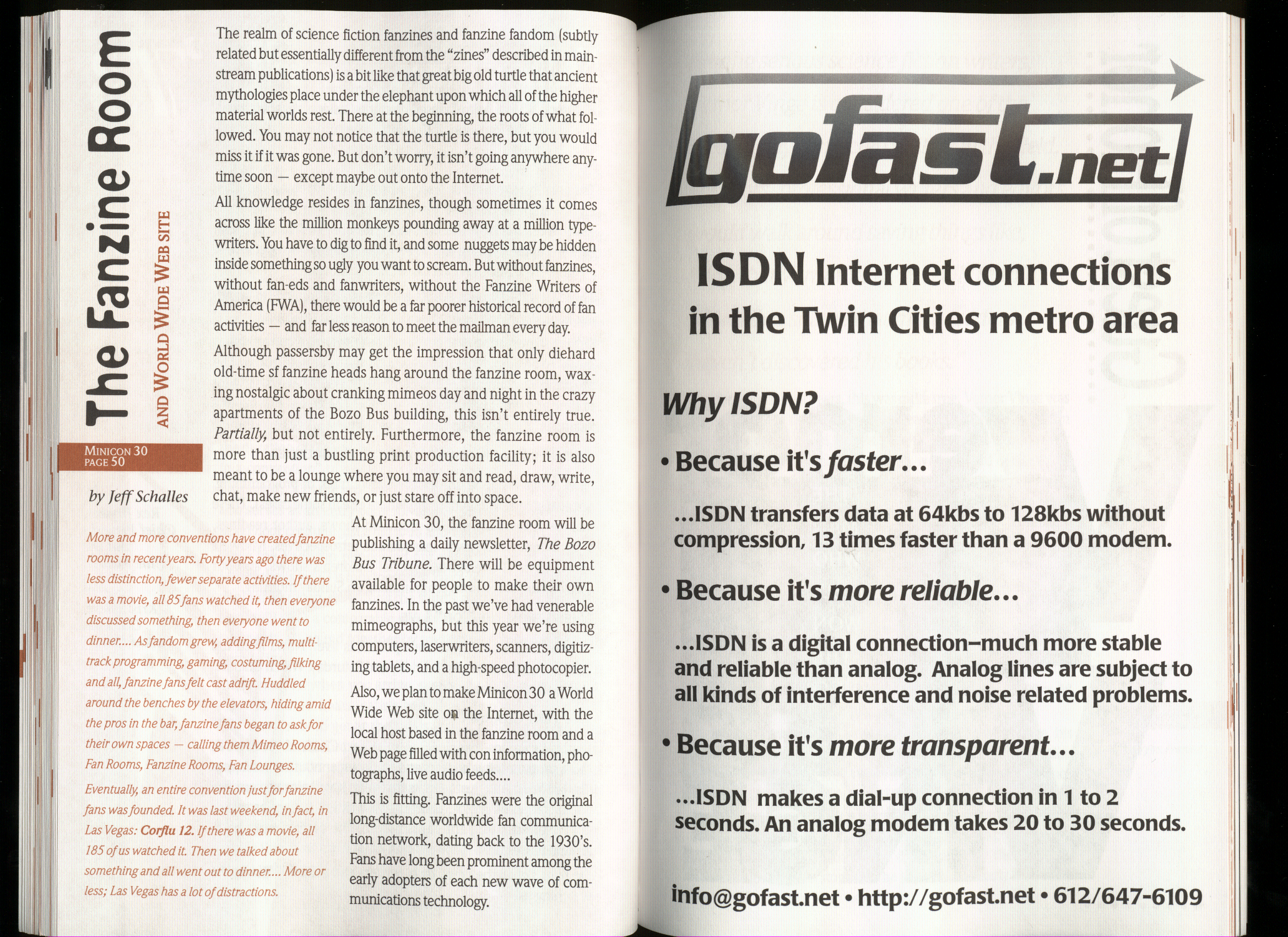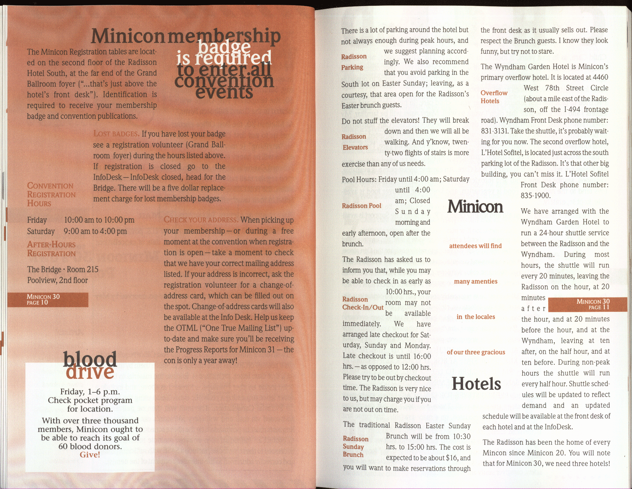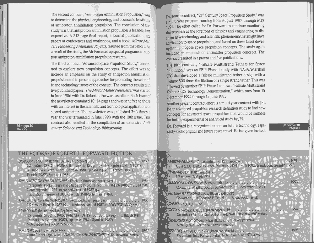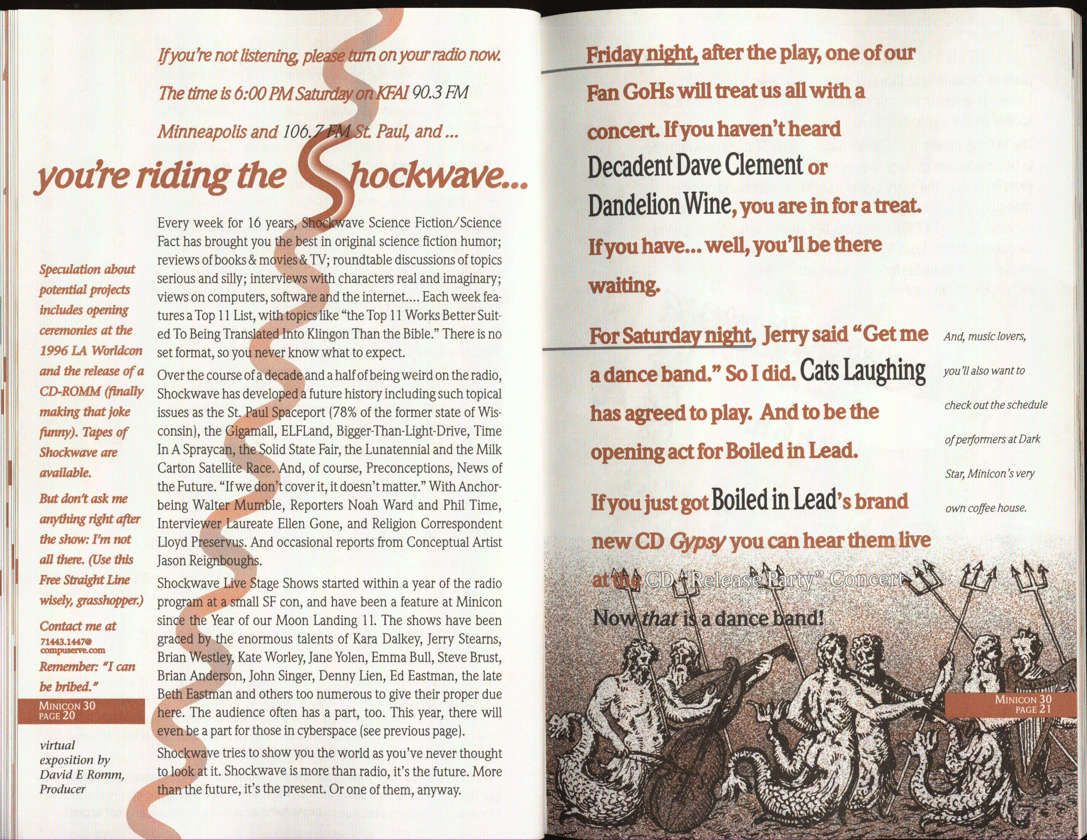 Minicon 30 was held in the very early days of the World Wide Web and featured webpages served from a computer in the convention hotel, which were developed and maintained during the convention.