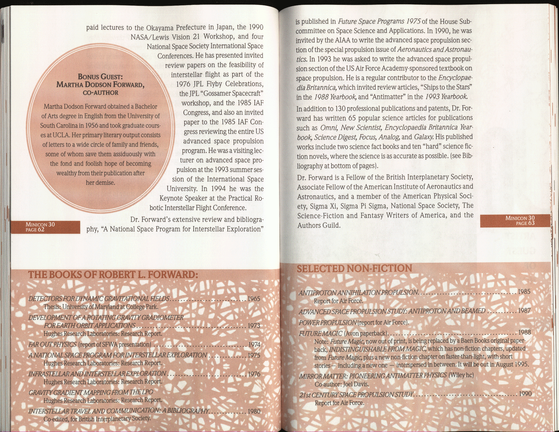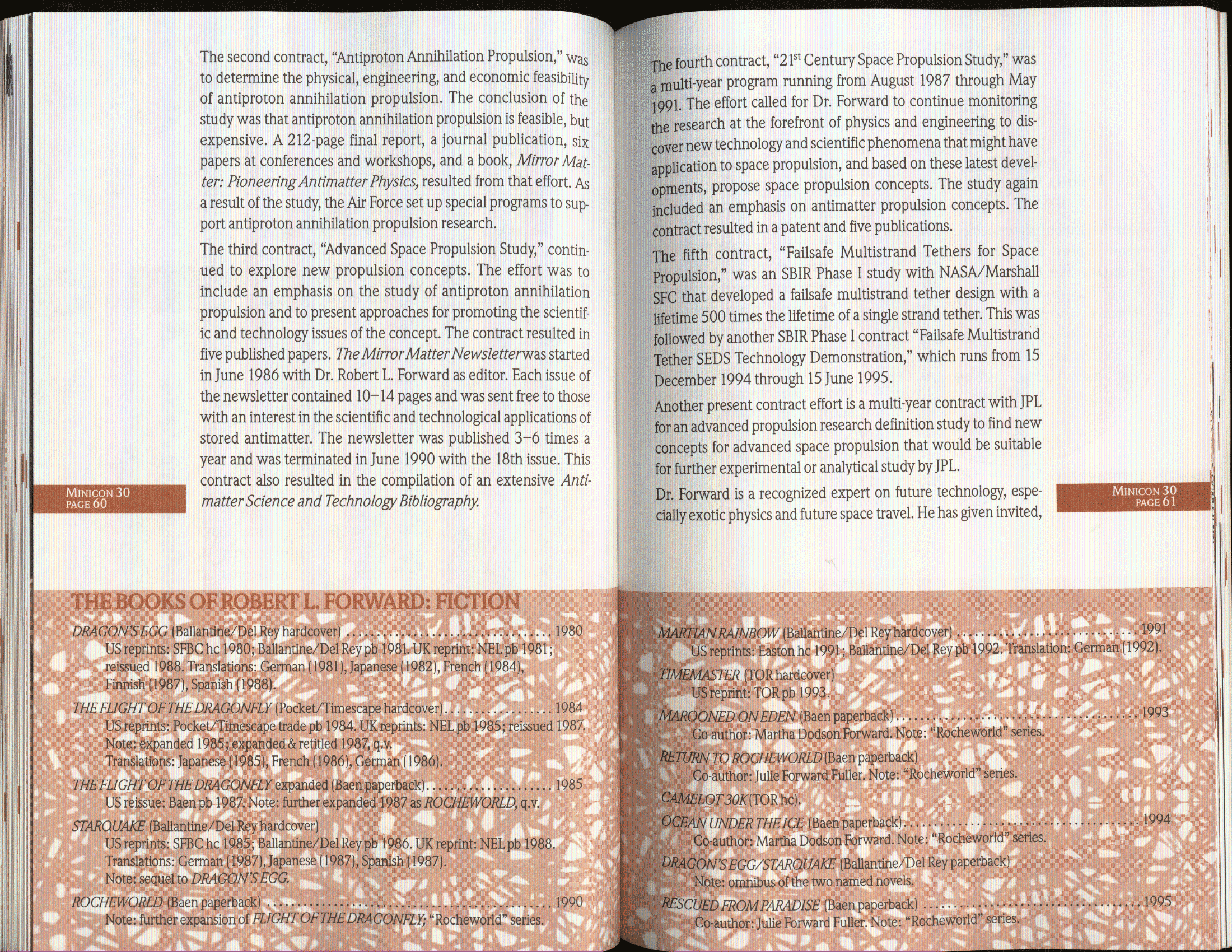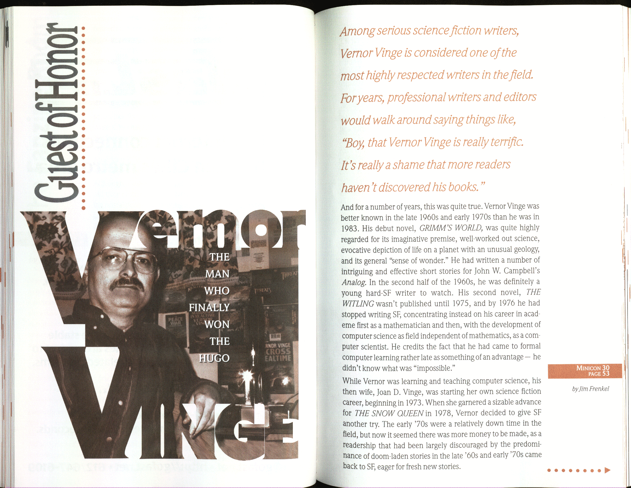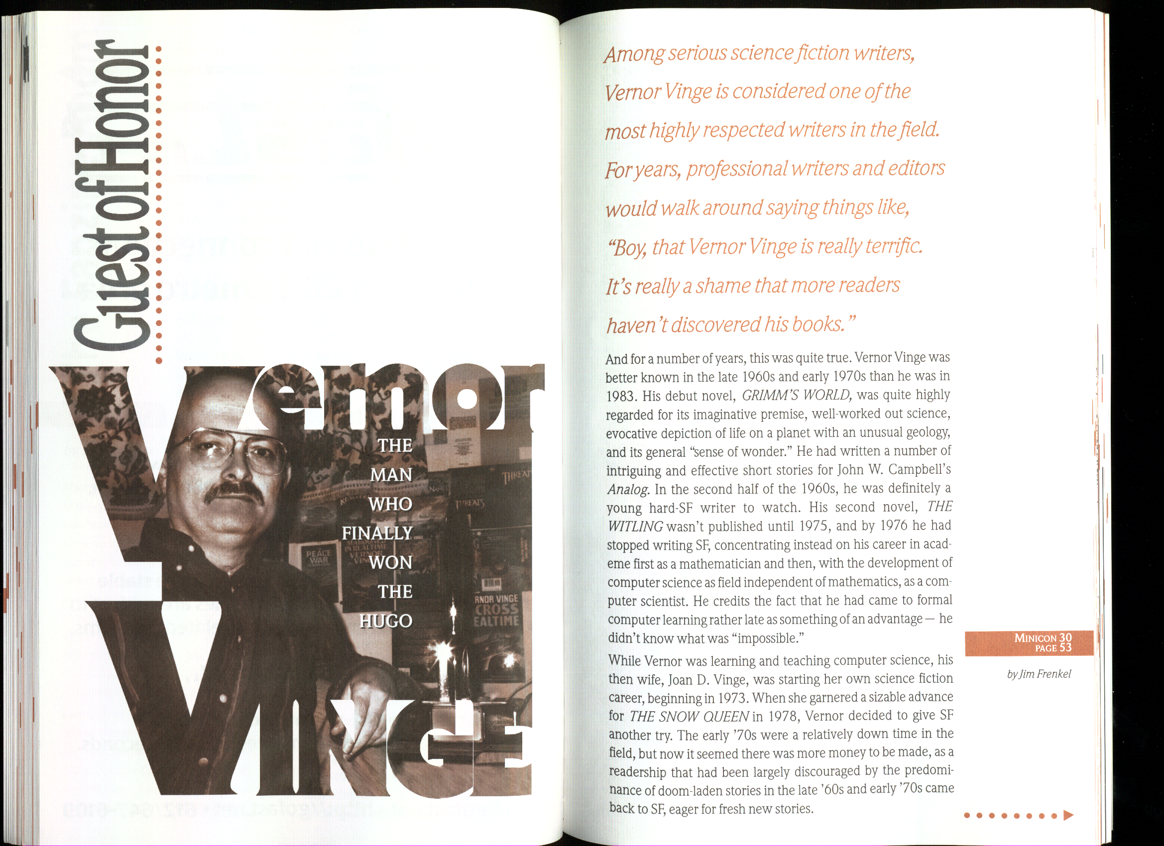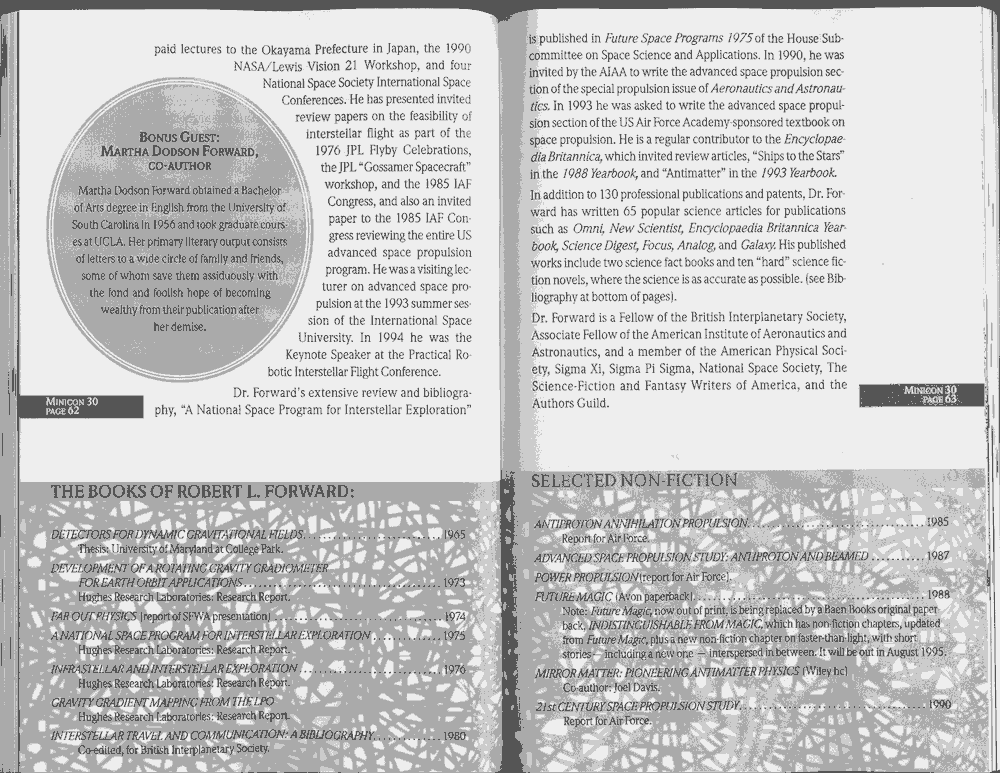 Minicon 30 was held in the very early days of the World Wide Web and featured webpages served from a computer in the convention hotel, which were developed and maintained during the convention.
