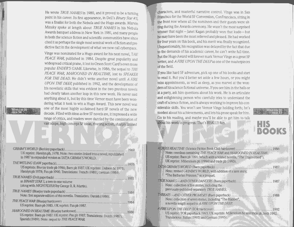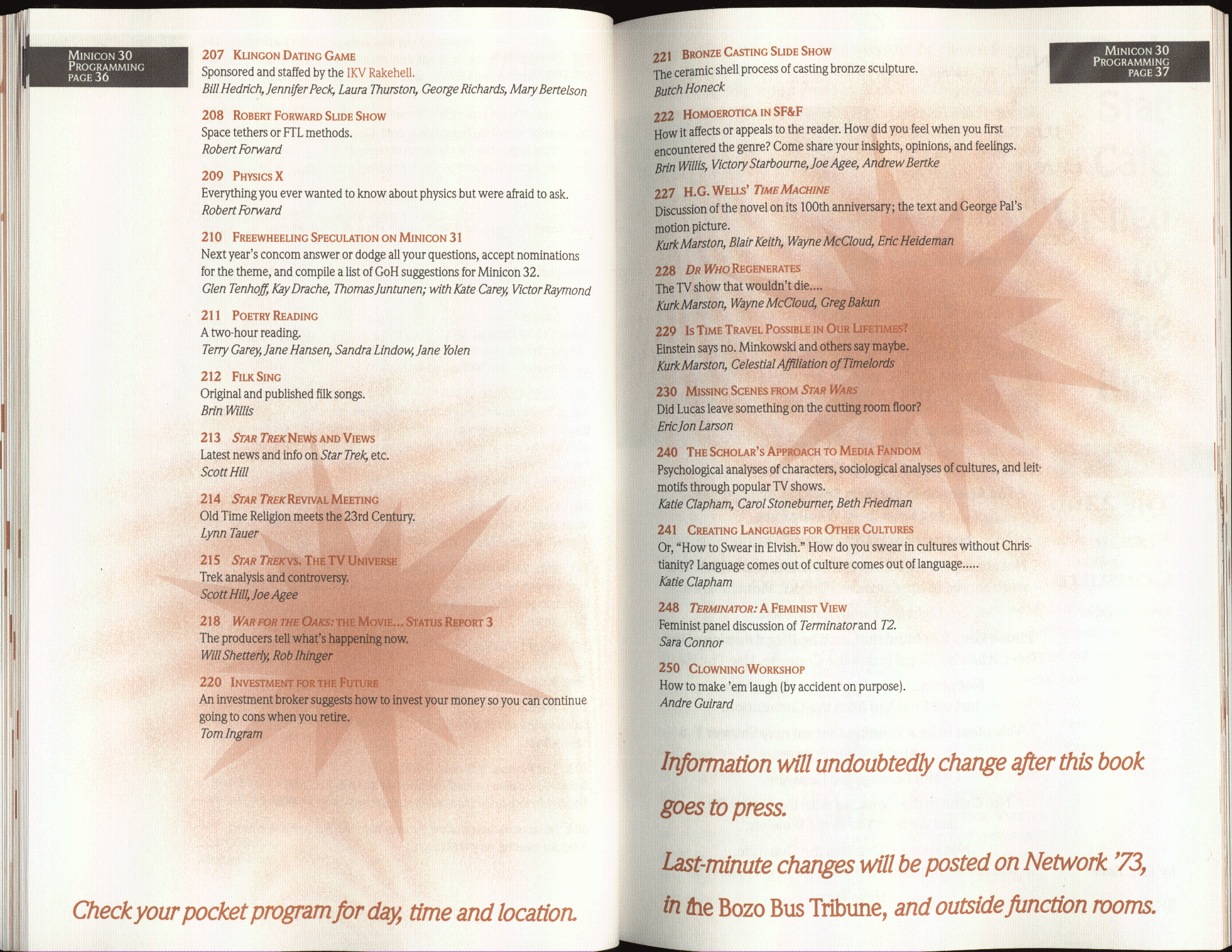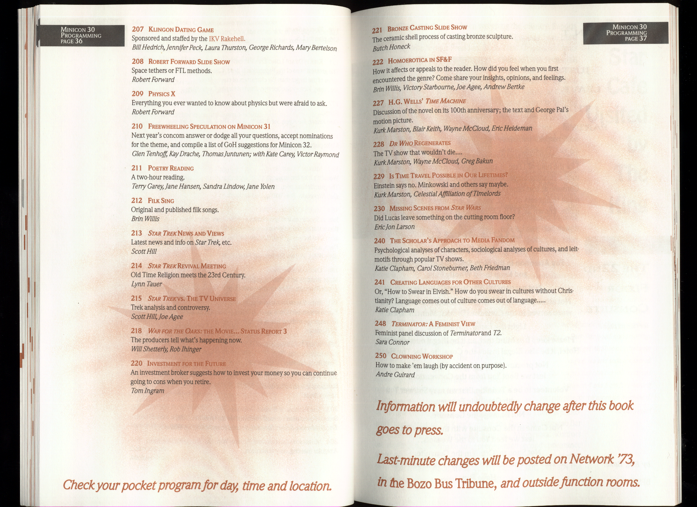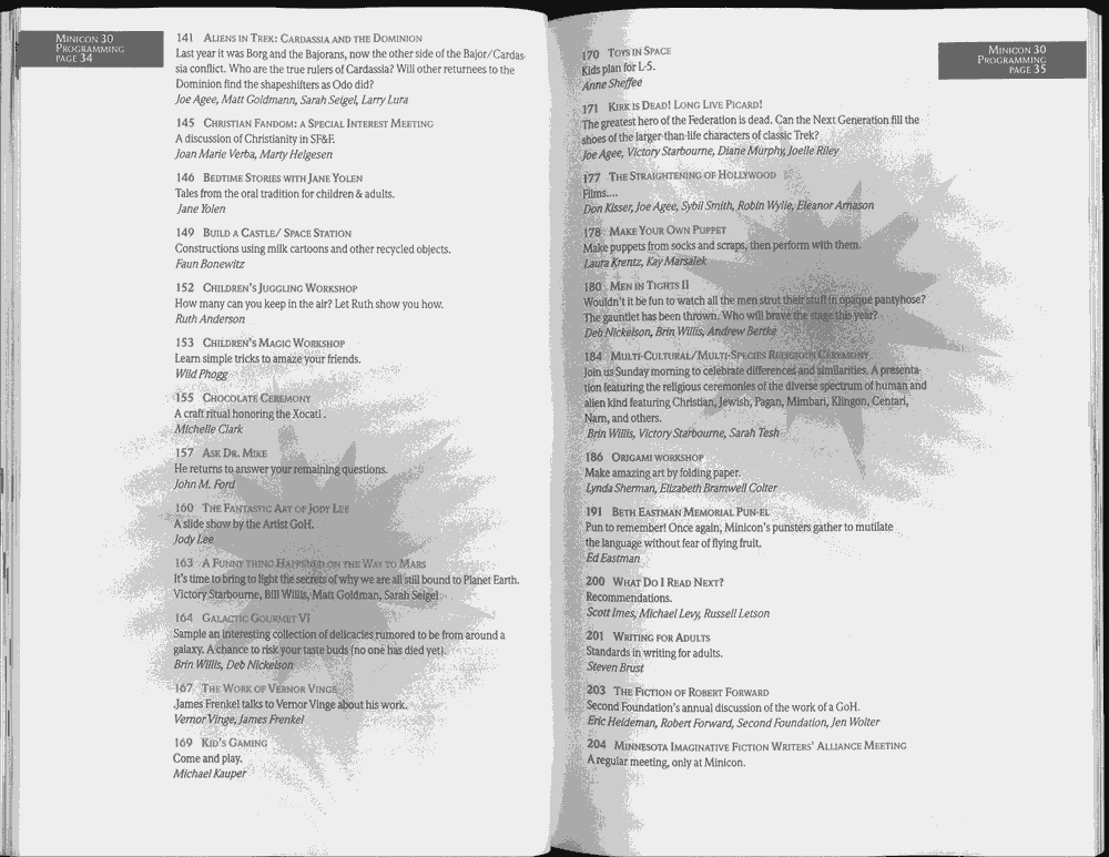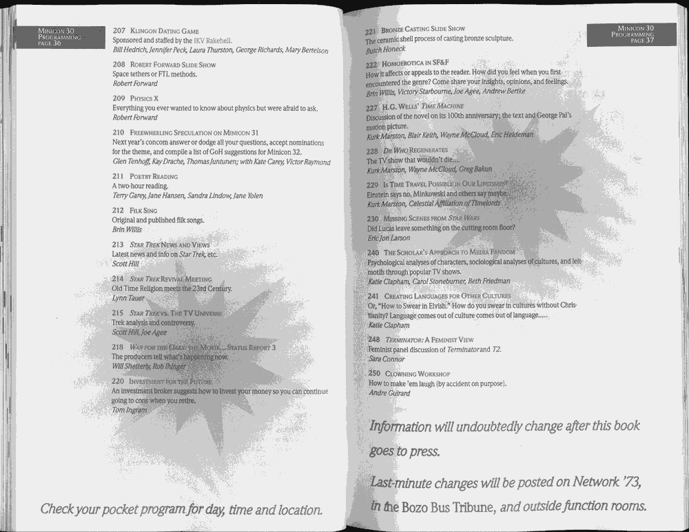 [Added in 2011] We don't currently know of any clean electronic copies of the program book, although page 90 indicates that such a thing must have existed at some point. Anyway, here's a PDF of a scan (100MB) or a lower quality version of the same (3MB).