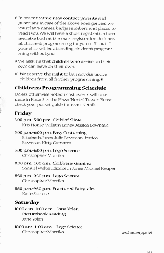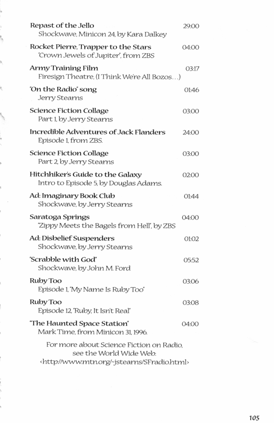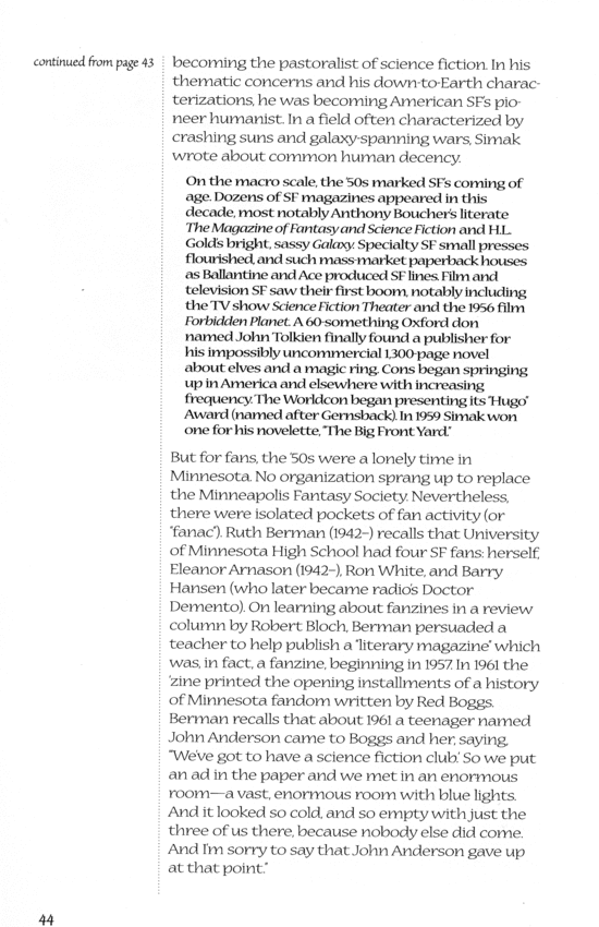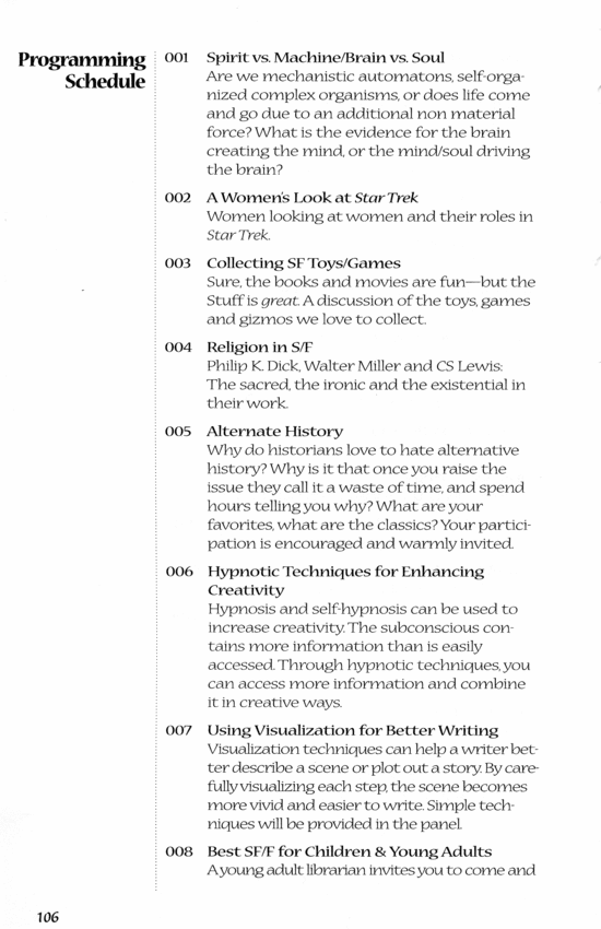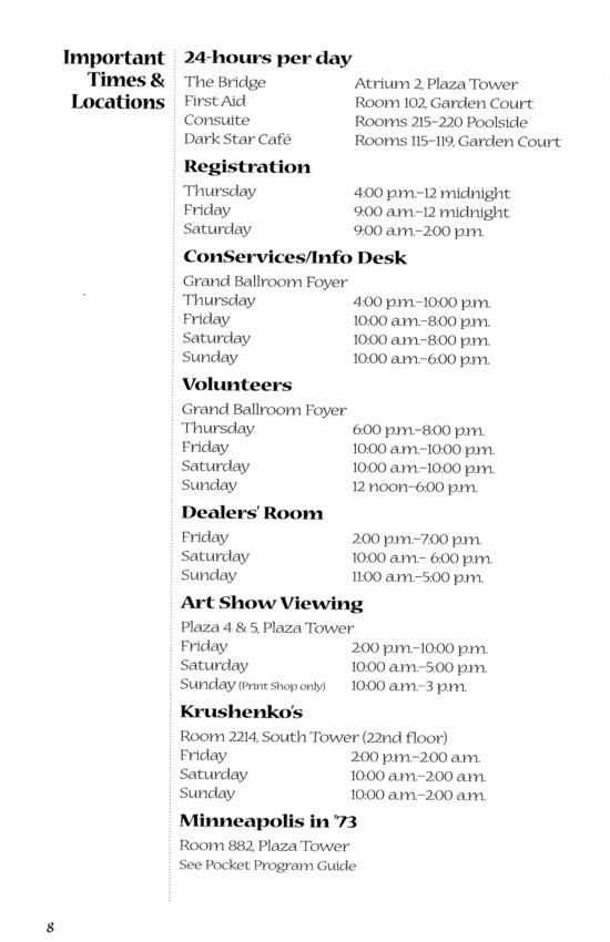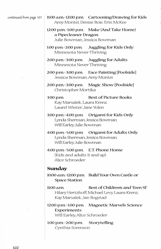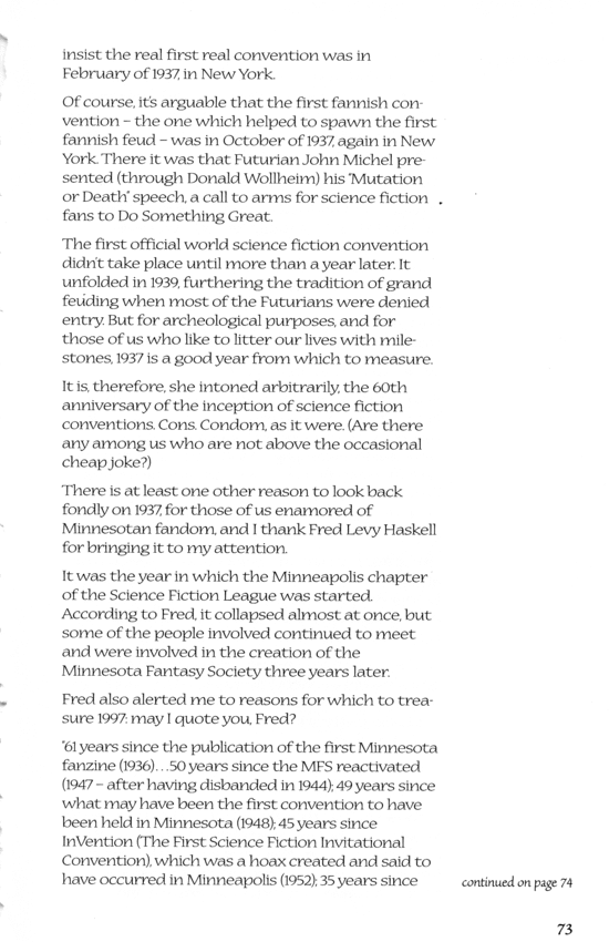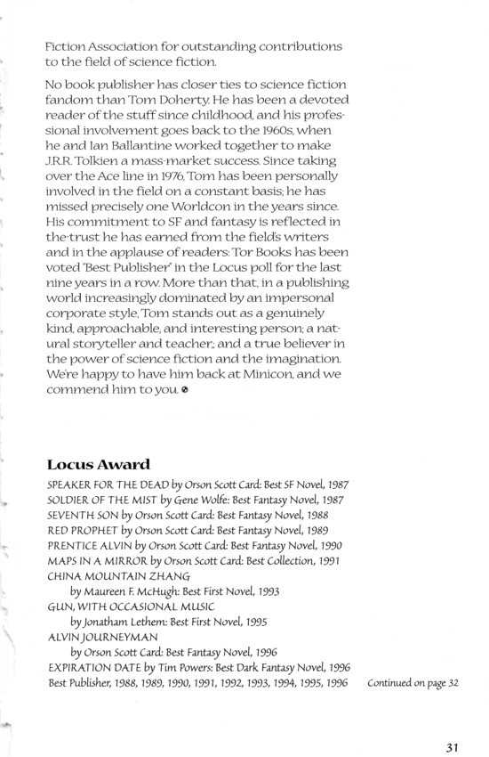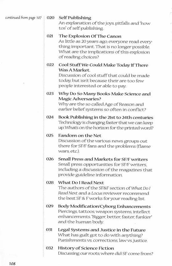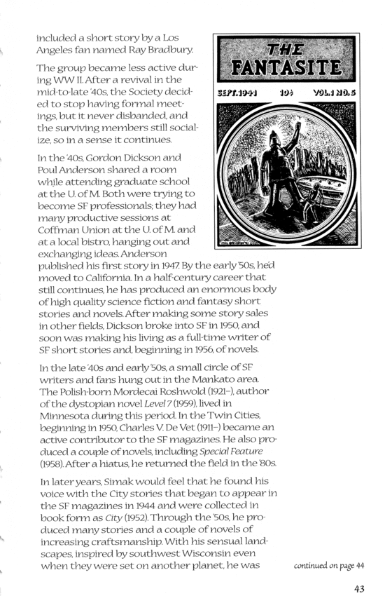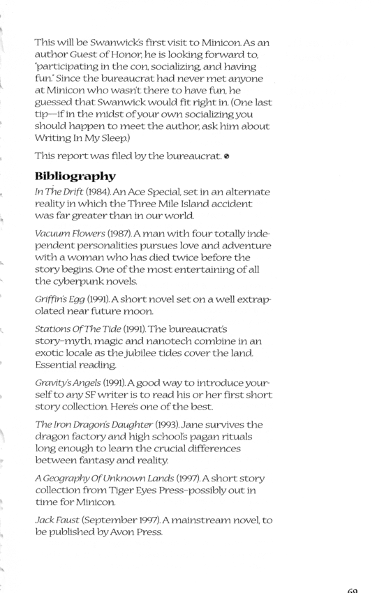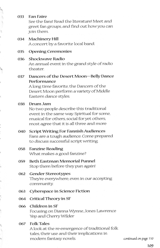 This page is part of an archive and is available for historical reference only; for information on recent and upcoming Minicons, please visit www.mnstf.org/minicon/ Information on these pages may not reflect current Minicon and Minn-StF policies, functions, contact info, etc. For information about the Minnesota Science Fiction Society, the organization that has been putting on Minicon since 1968, please visit www.mnstf.org. |