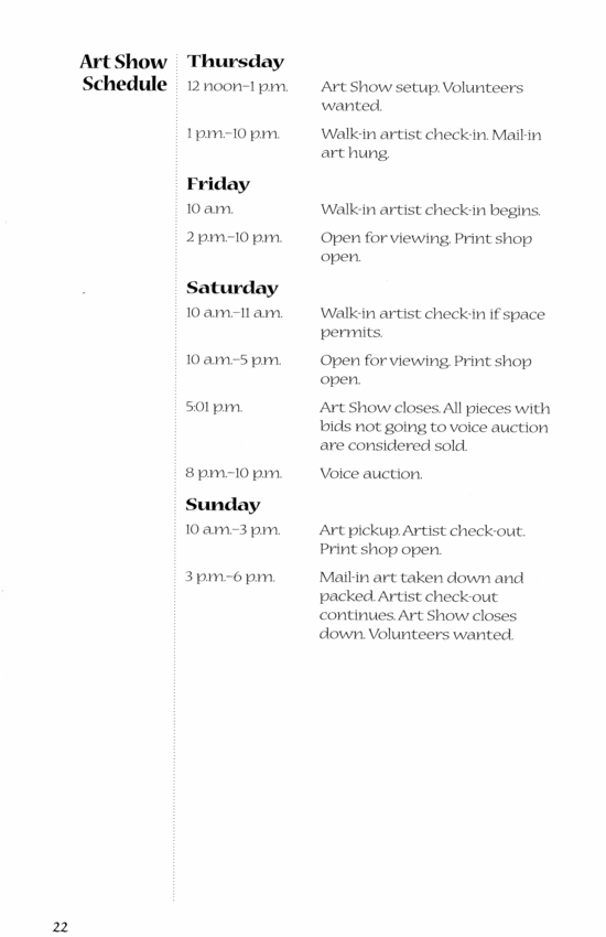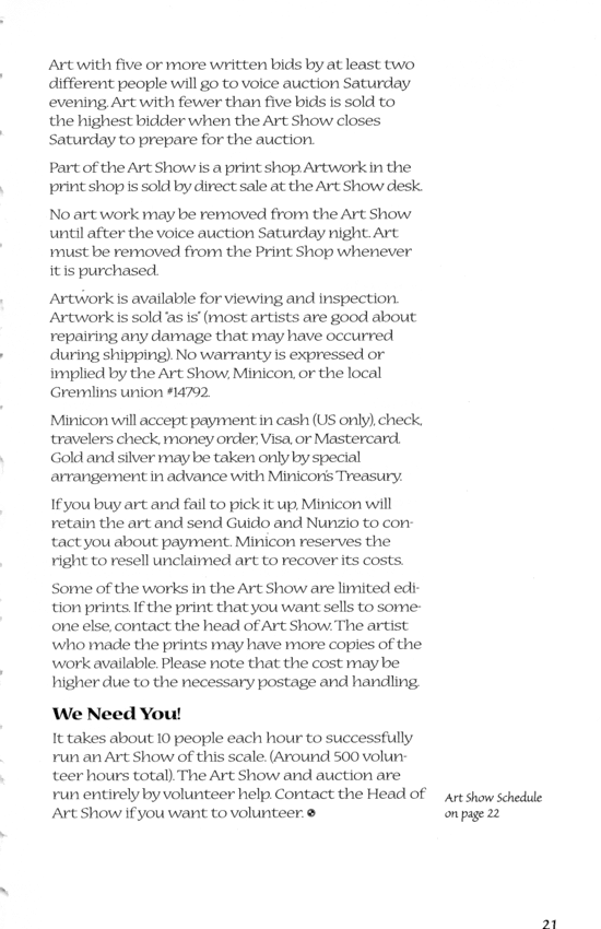 The art show department may be reached on line at artshow@minicon32.mnstf.org