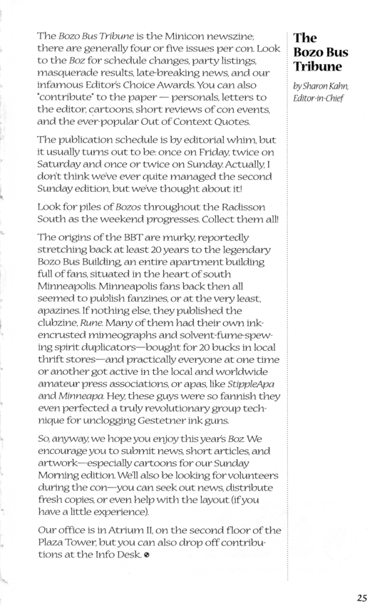 2026: Here are all the issues of the Bozo Bus Tribune, our at-con newsletter.
