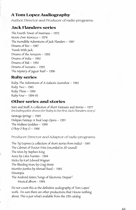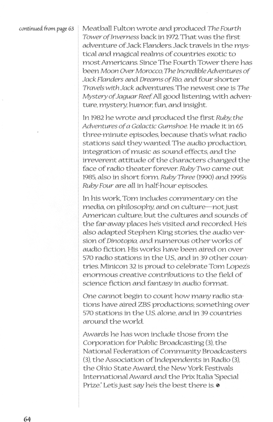 SF Radio writer, proprietor of the ZBS Foundation. Perhaps you've heard of the adventures of Jack Flanders or Ruby the Galactic Gumshoe