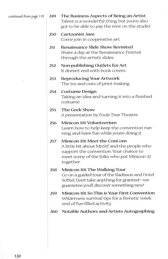 If you're an author, editor, dealer, artist, musician, teacher, or scientist and want to do things at Minicon in that capacity as well as as a fan, please let us know that. Minicon is volunteer run, and not everybody is sure to recognize every name in the field, even every big name.