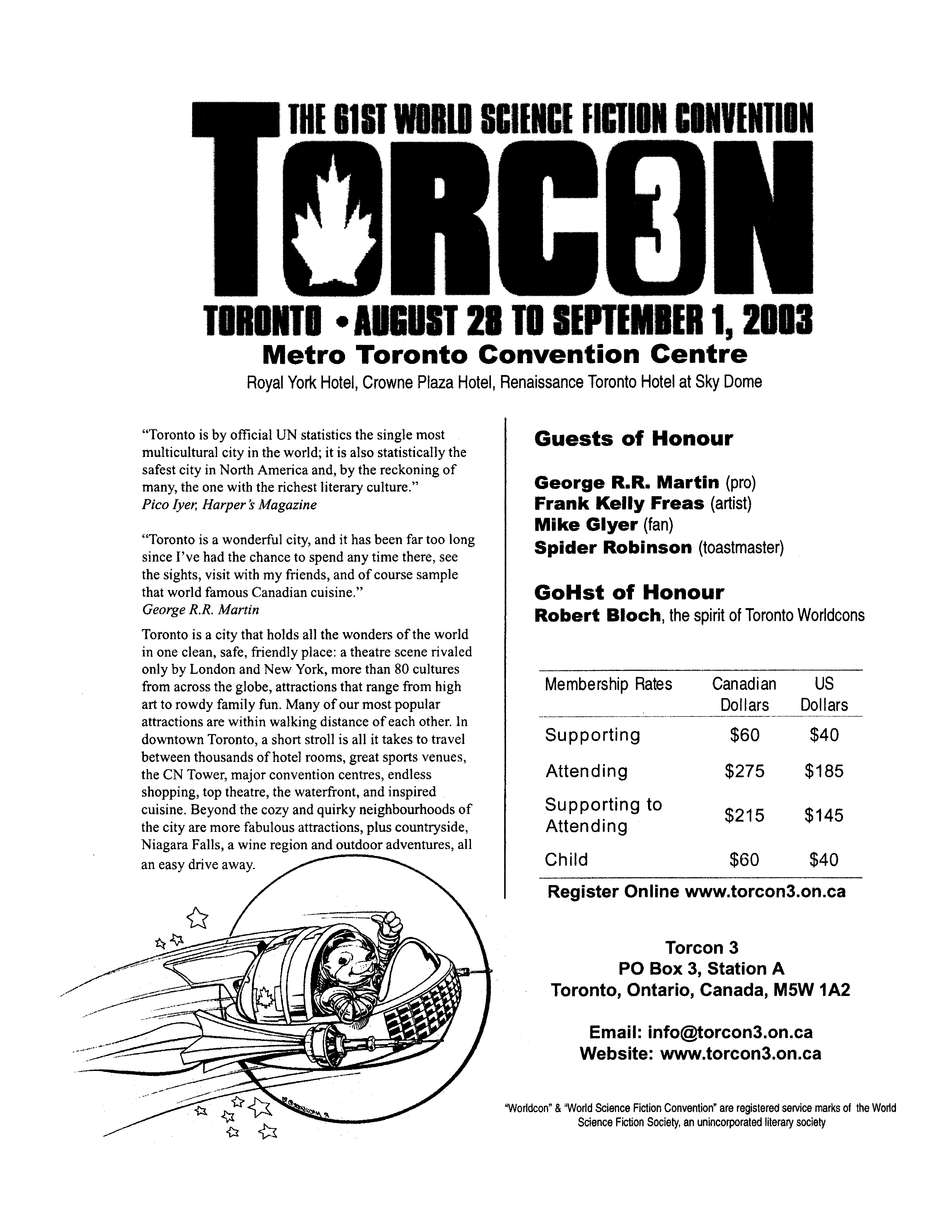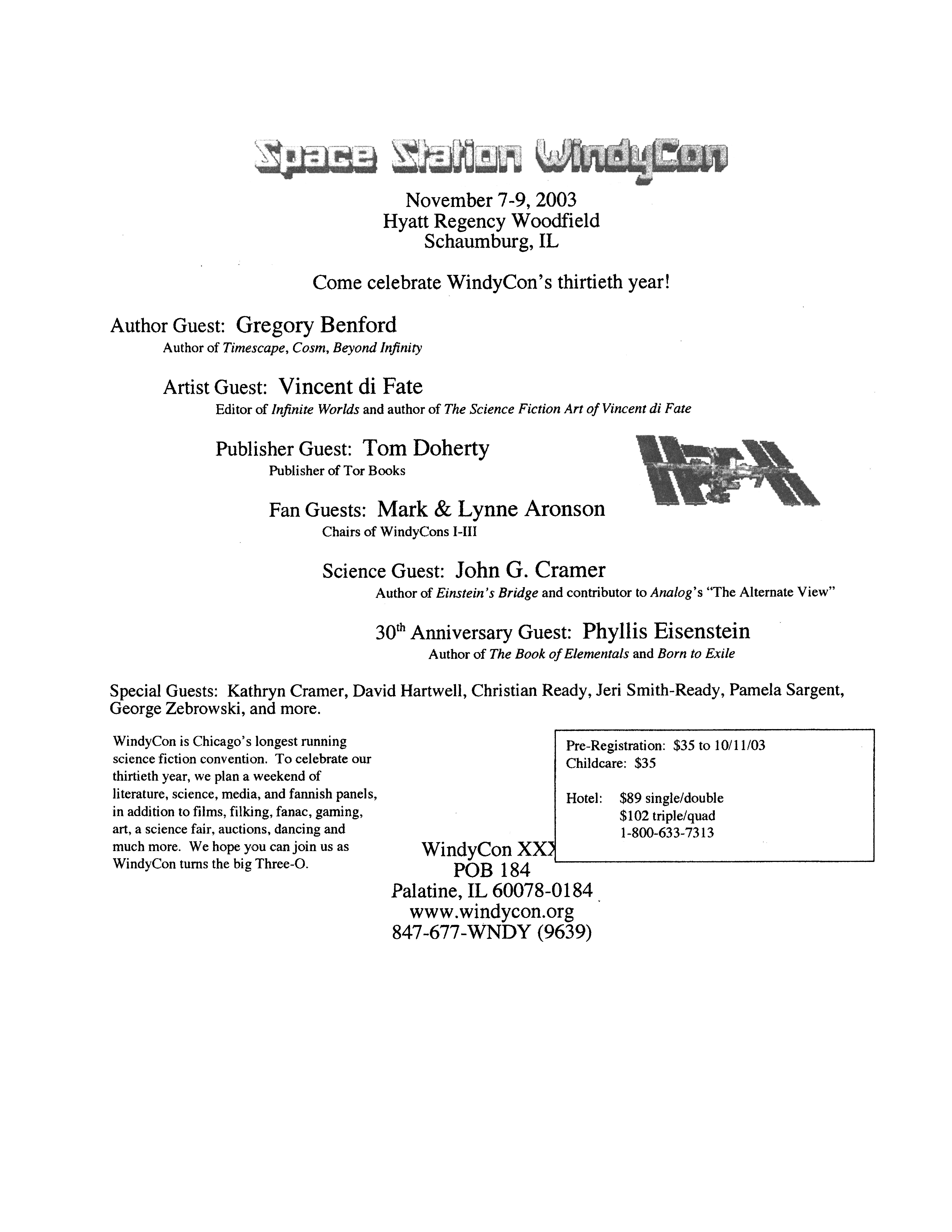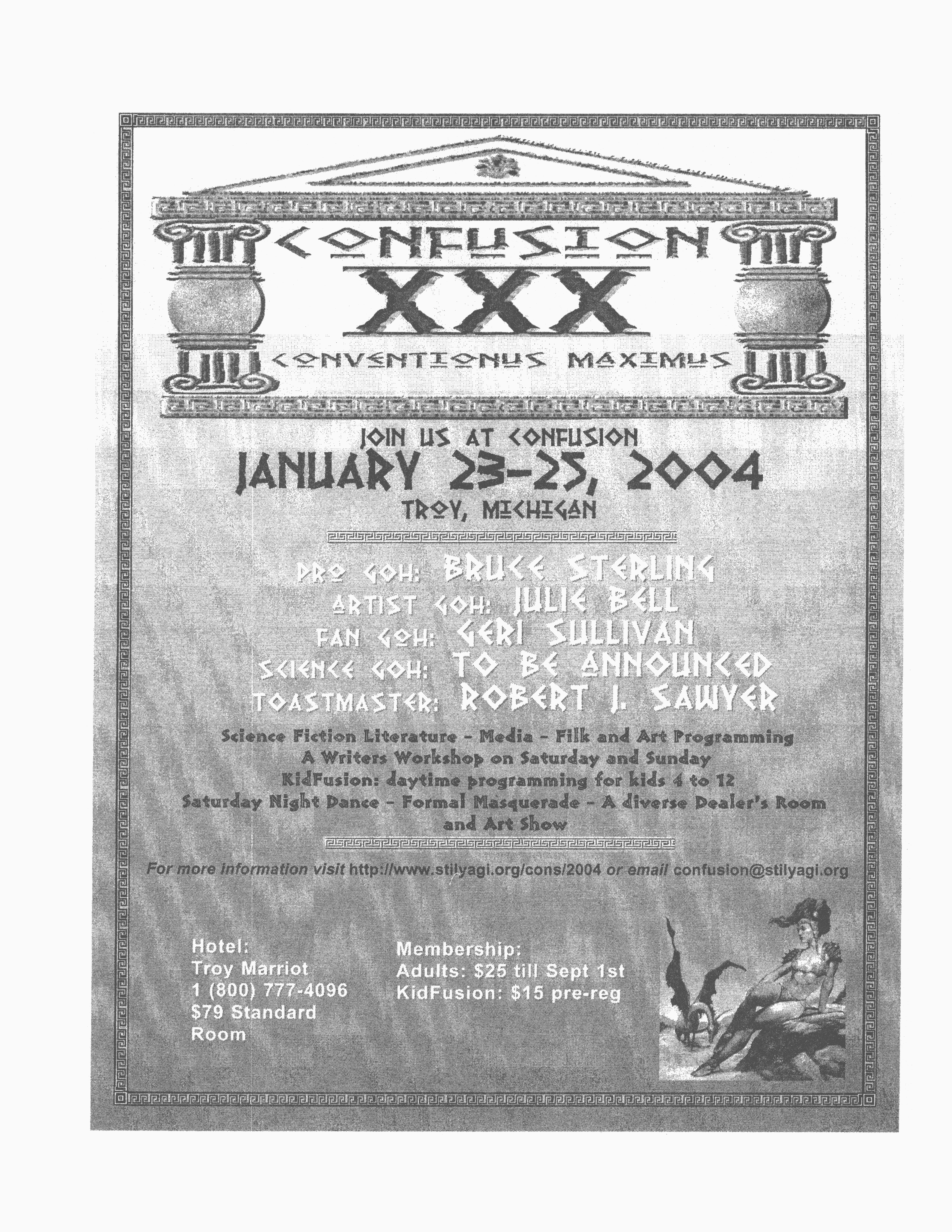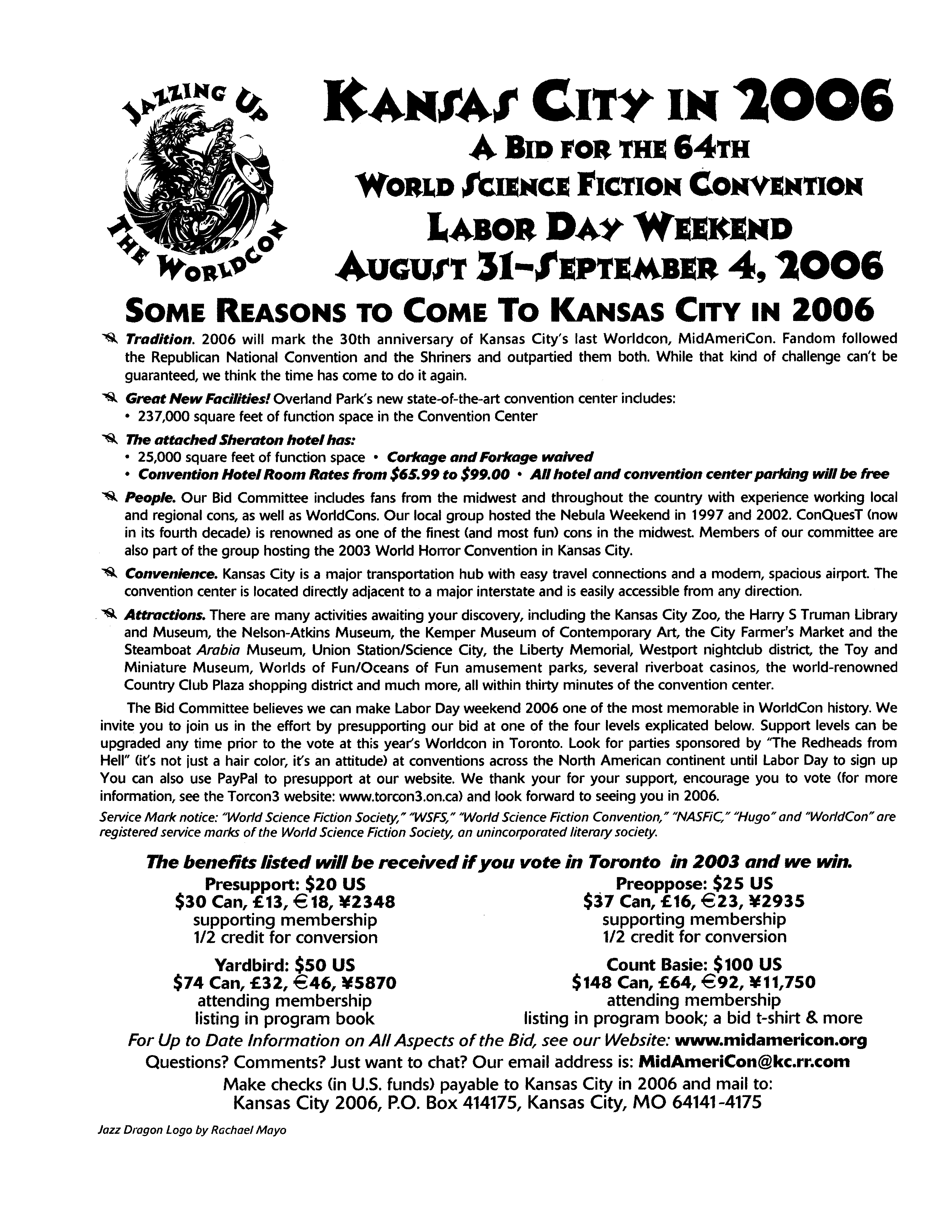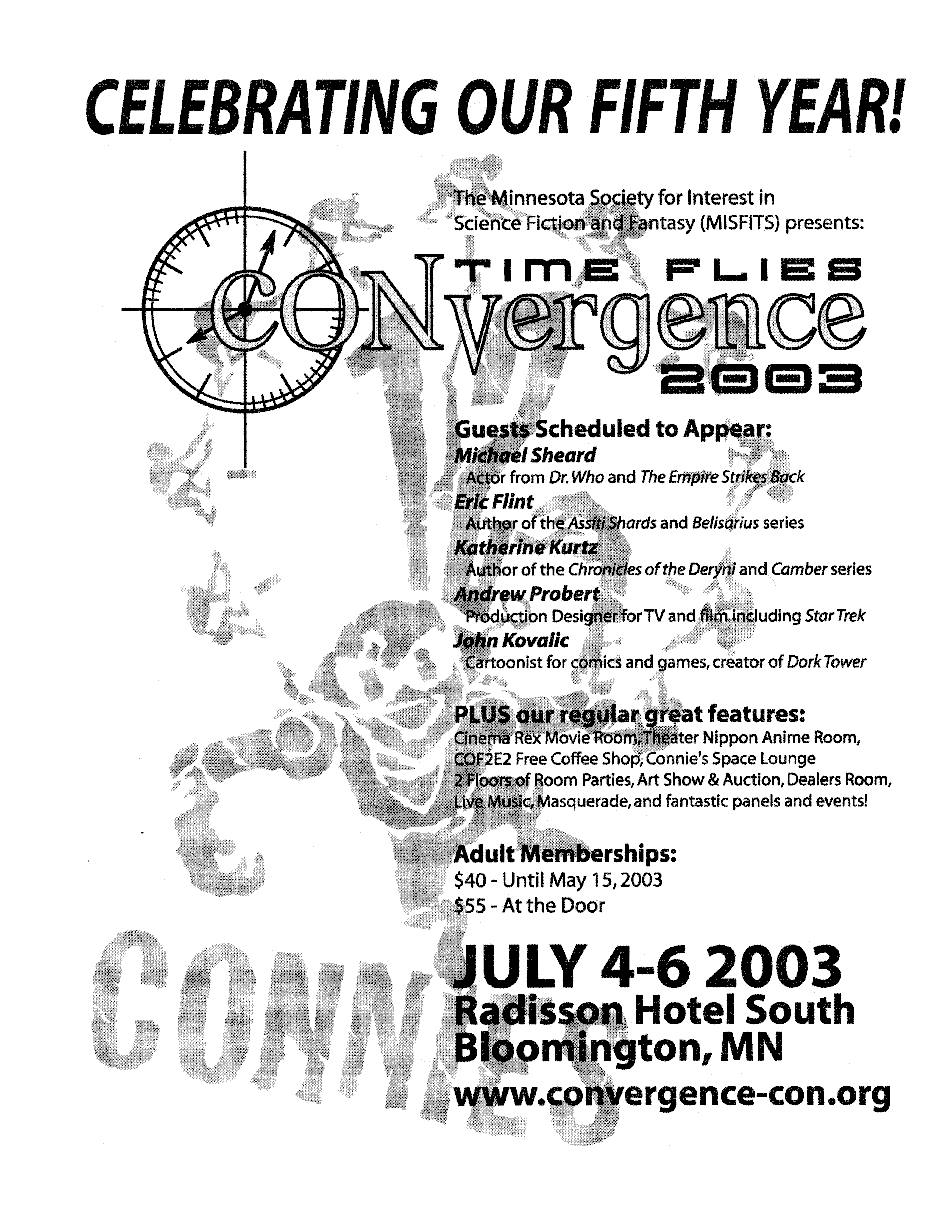Thanks to everyone who showed up to the Minneapolis in '73 parties at CONvergence, Diversicon, ConJose, Loscon and MarsCon. We had fun and hope that you did as well. Special thanks to everyone who helped out, with an extra special thanks to CONvergence party hosts Sharon Kahn and Richard Tatge, Diversicon party host Larry Sanderson, ConJose party hosts: Doug Friauf, David Schroth, Laura Jean Fish and Larry Sanderson, Loscon party hosts Geri Sullivan and Don Fitch and MarsCon party host Peter Hentges.