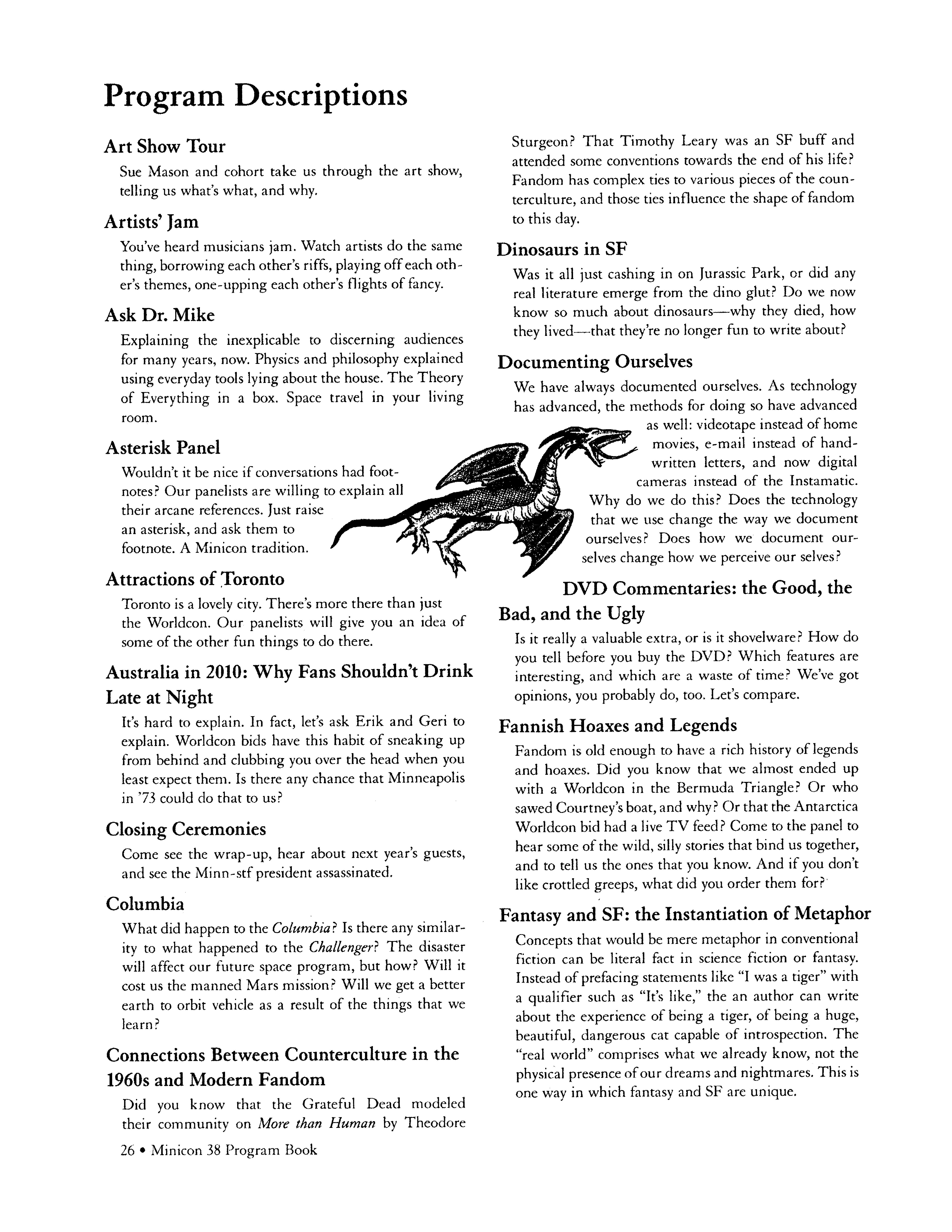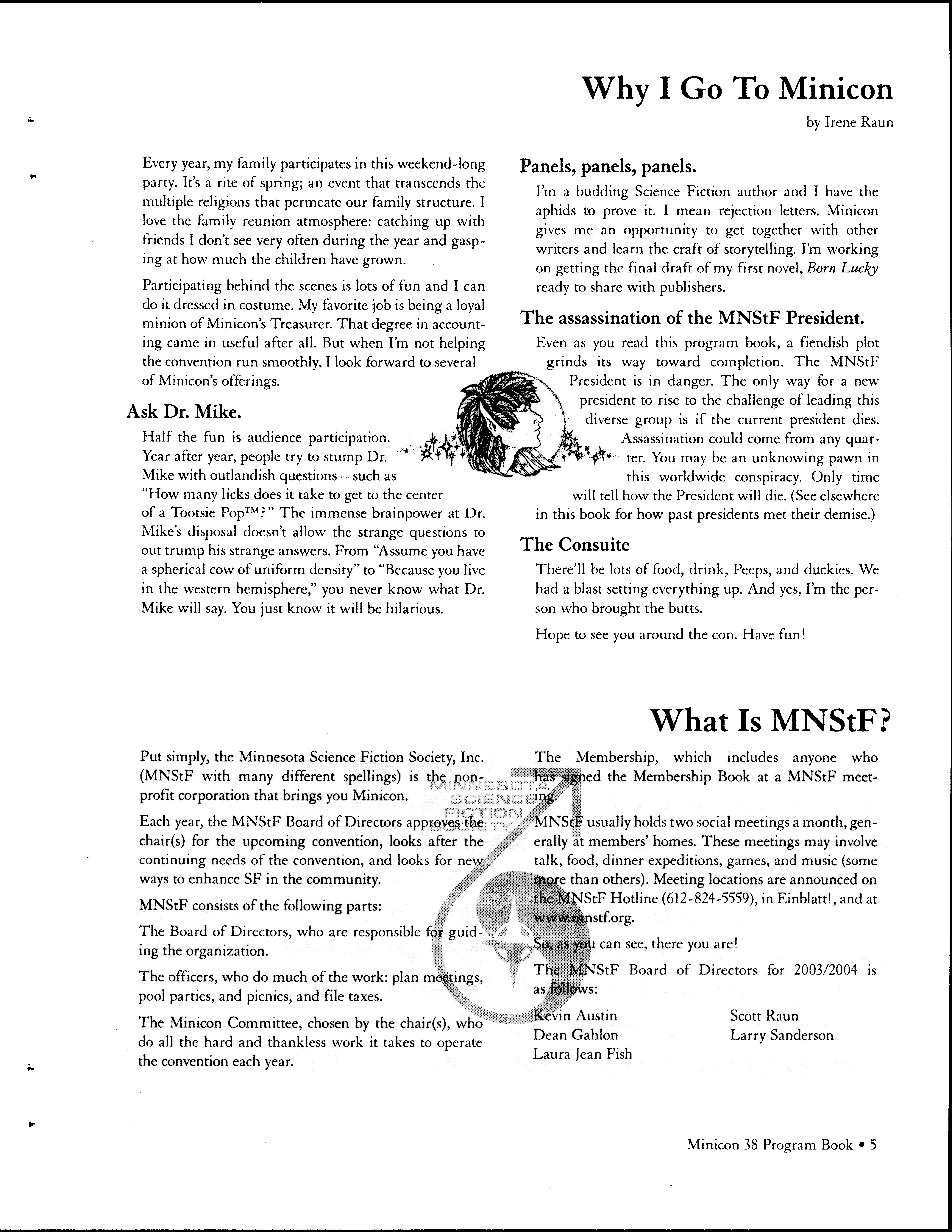 Minicon 38 is over. Thanks to everyone who showed up and helped to make it such a great time.