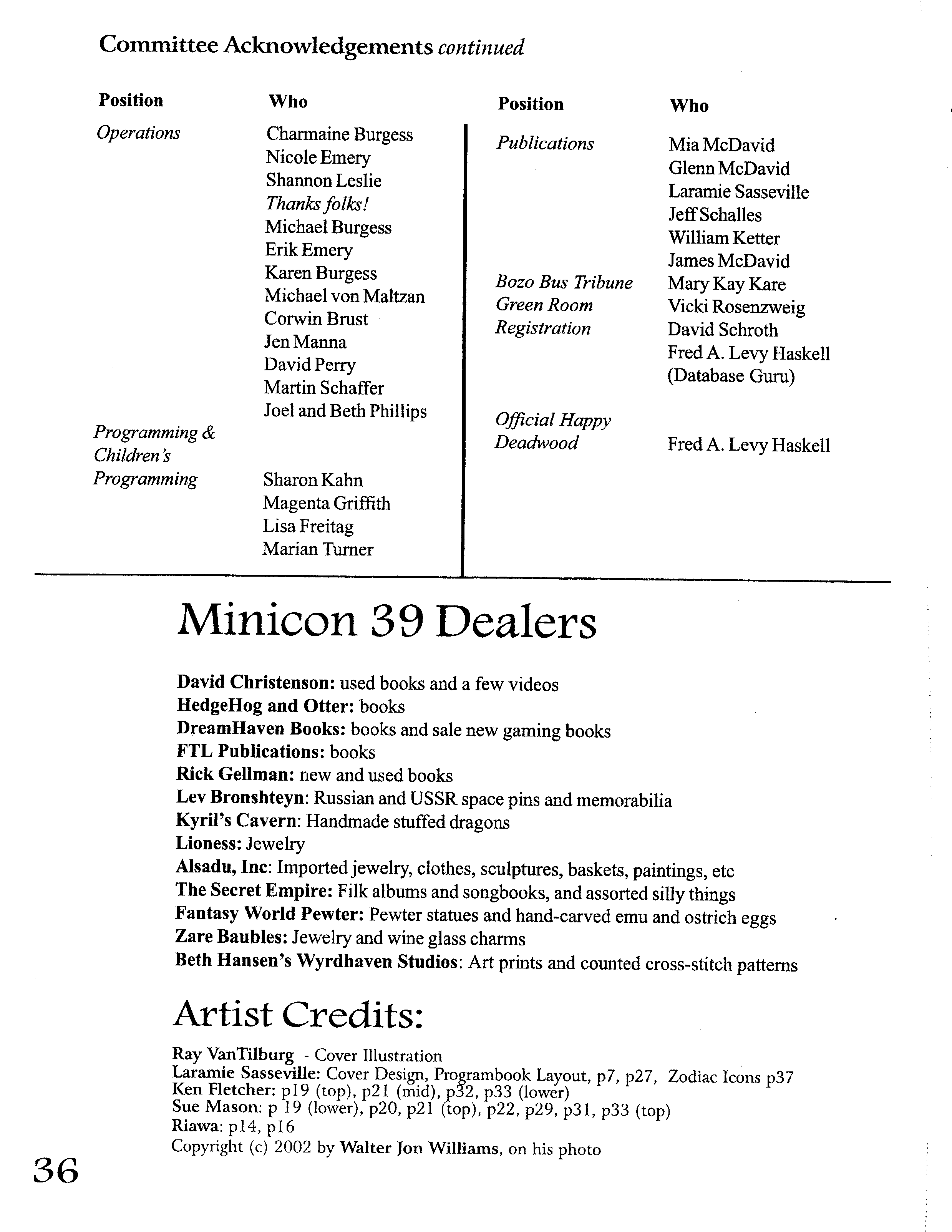 The parts of the Minicon 39 Program Book made available here are