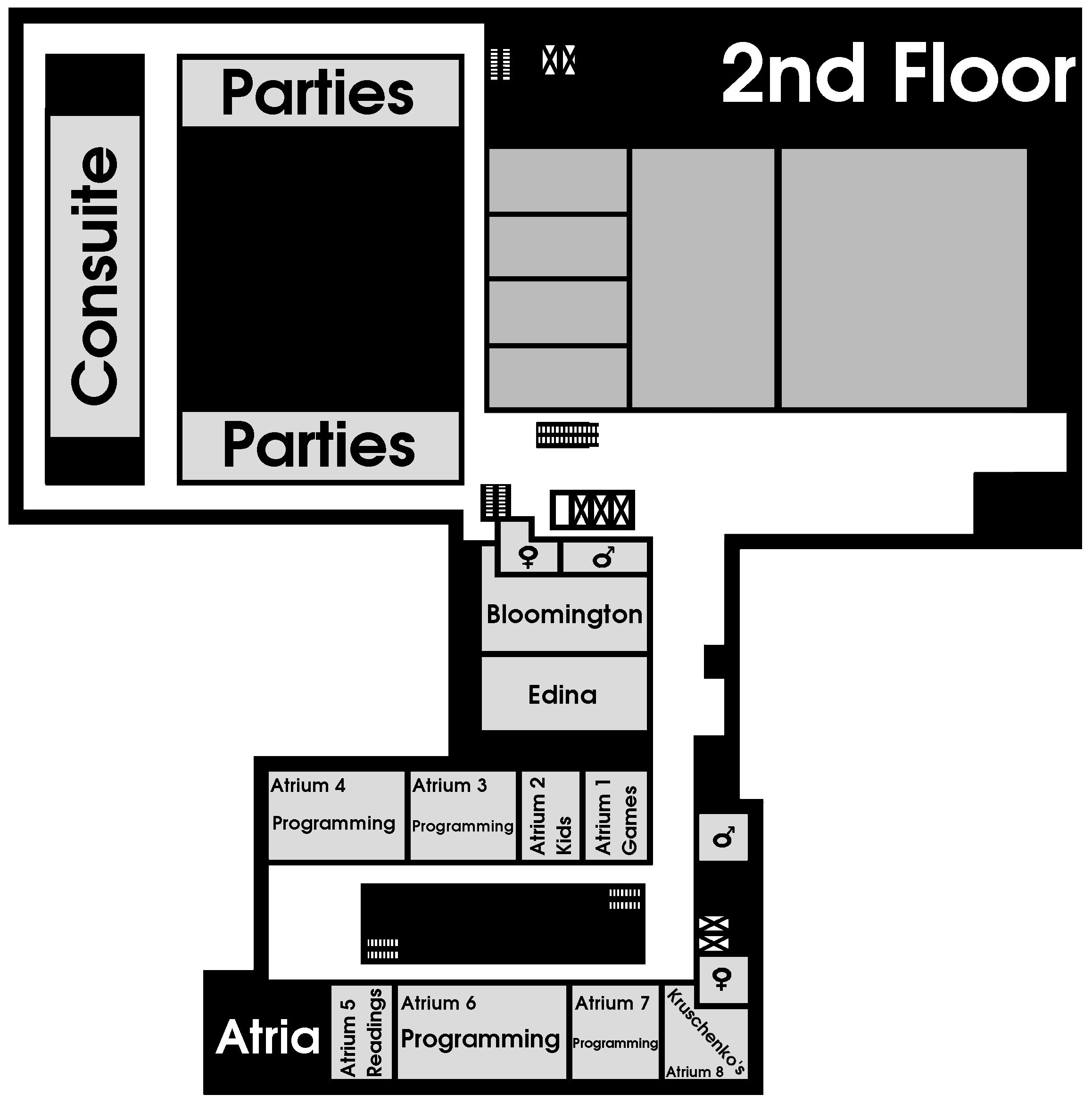 Wondering where things are located at Minicon 41? There will be a map in the pocket program, but if you want to know right now, you can check out these maps: Minicon 41 - First Floor | Minicon 41 - 2nd Floor.