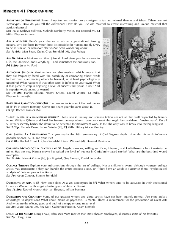 Minicon 41 is over. These pages remain as a historical record. Please contact [arDONOTTYPETHISchivist |at| mnstf |dot| org] with any questions or comments. See the main Minicon page for information about this year's Minicon.