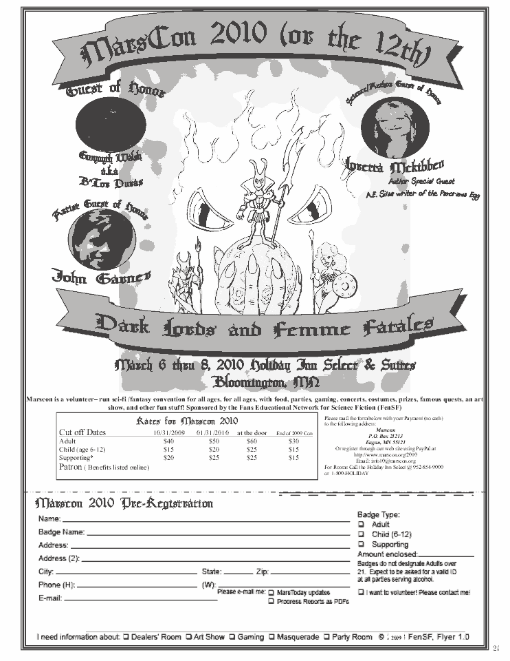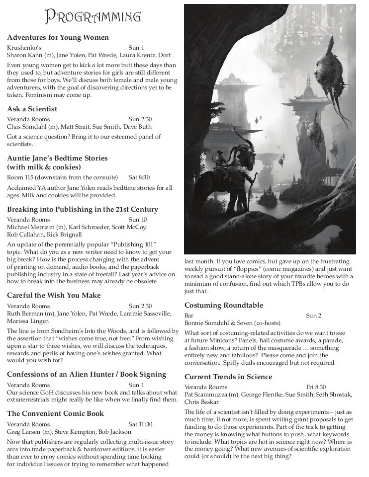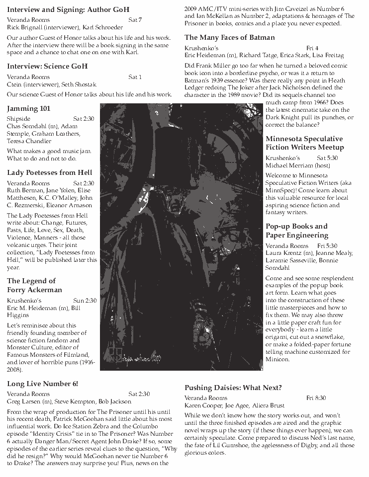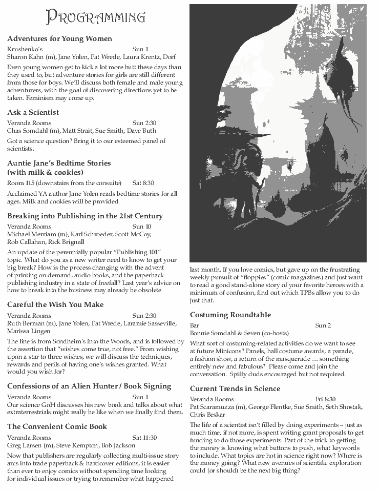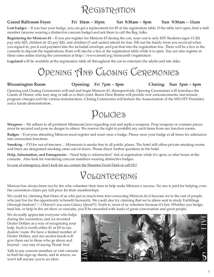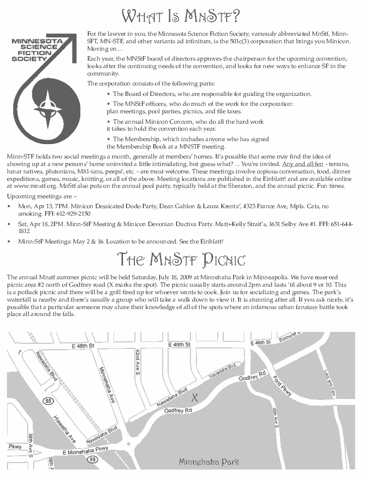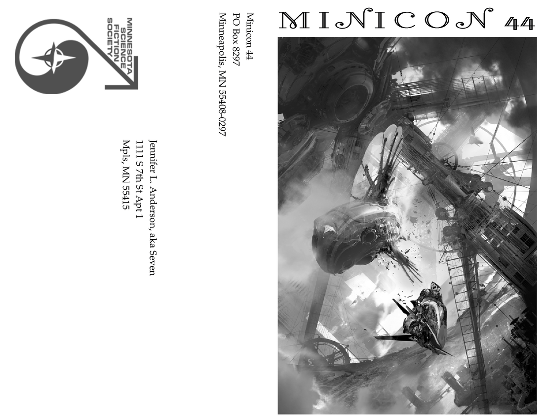 Minicon 44 Progress Report 2 in PDF (23 MB) or page images: Outside | Reg form | Pages 8 and 1 | Pages 2 and 3 | Pages 4 and 5 | Pages 6 and 7