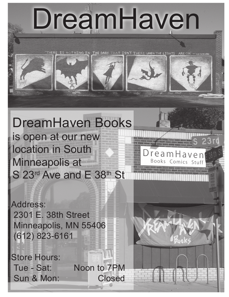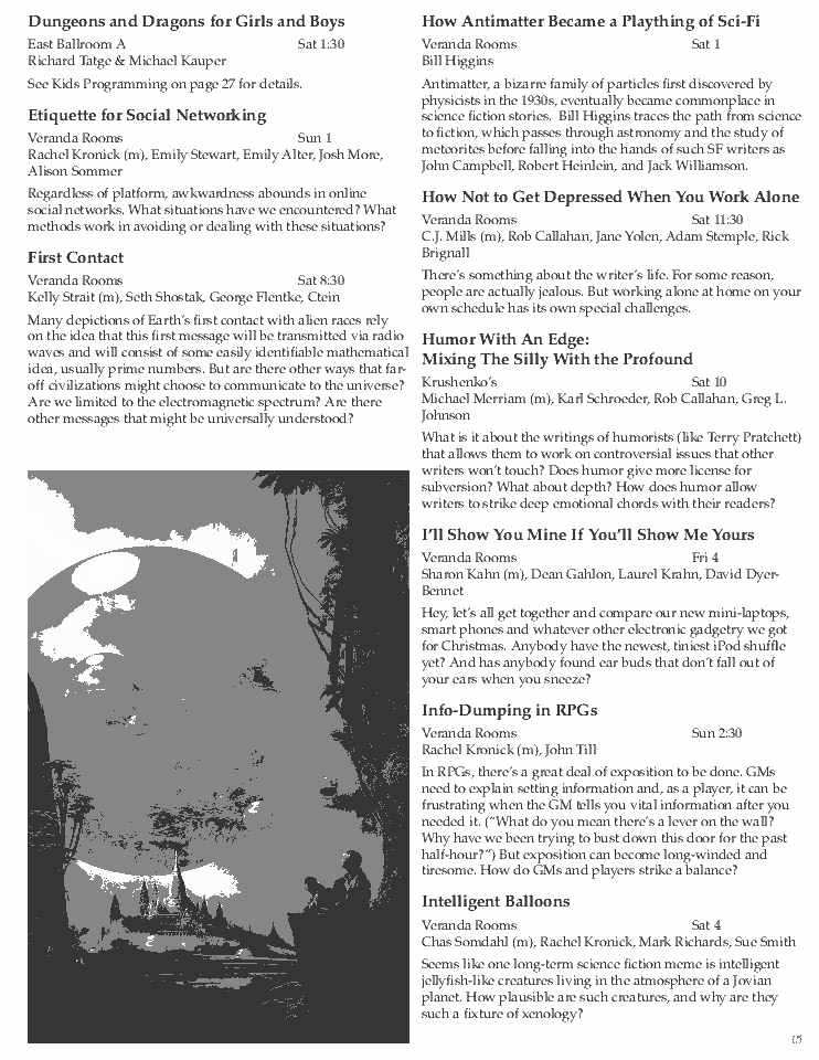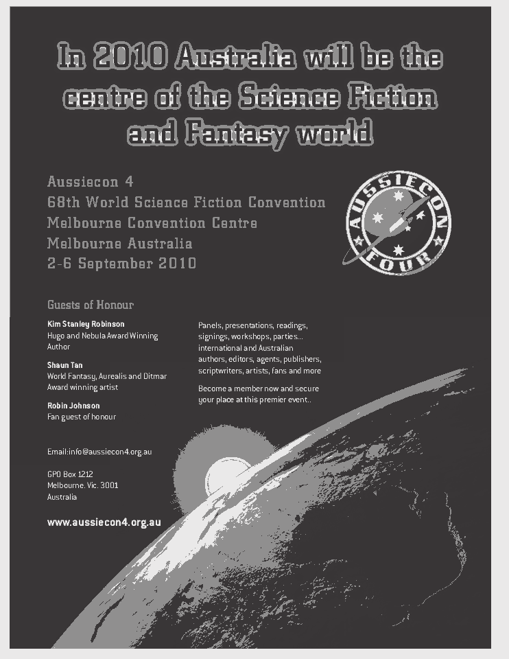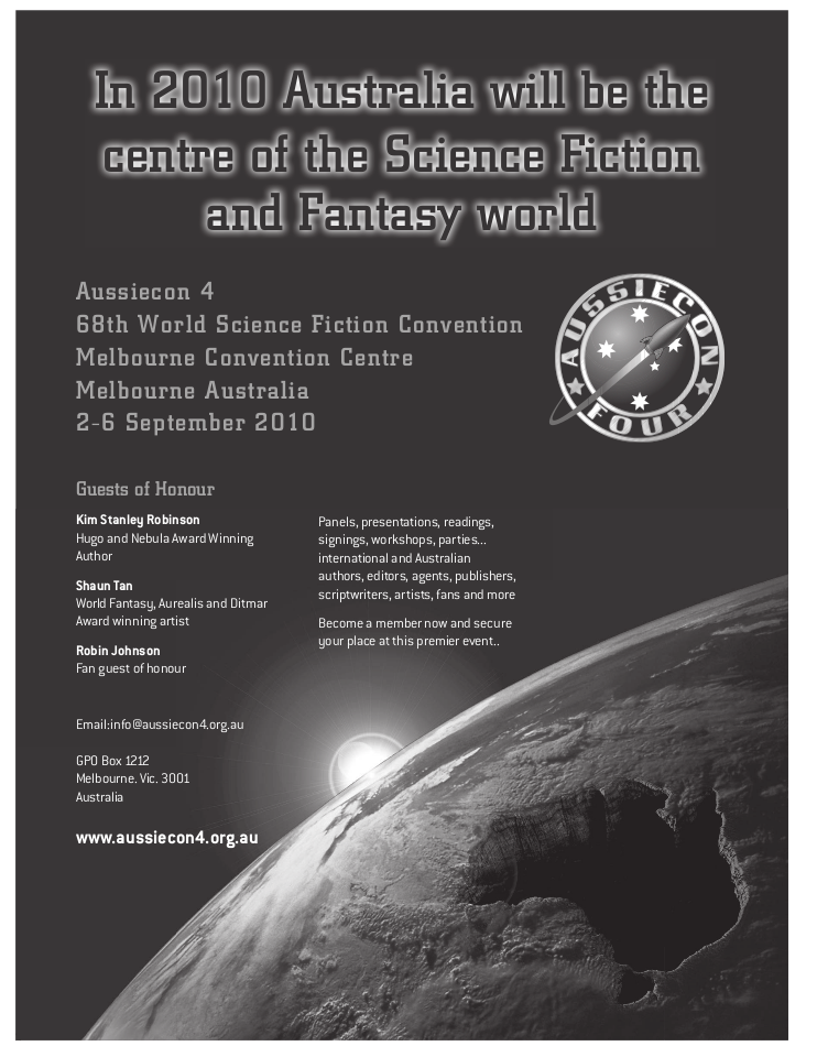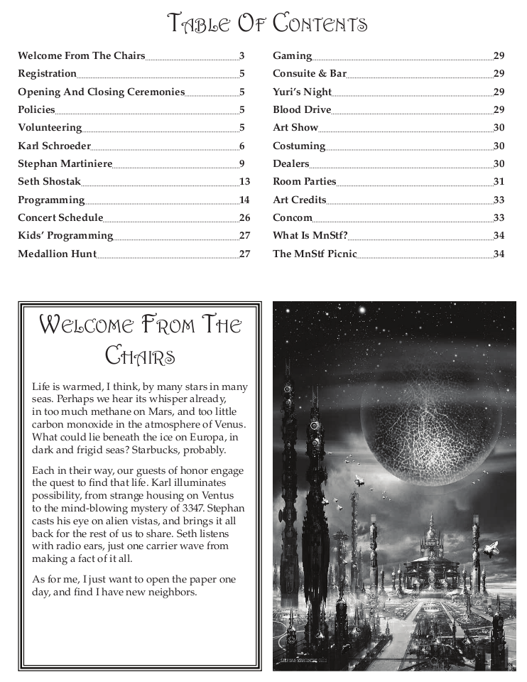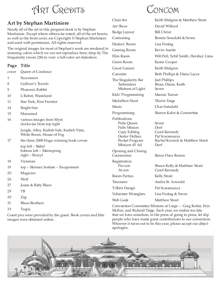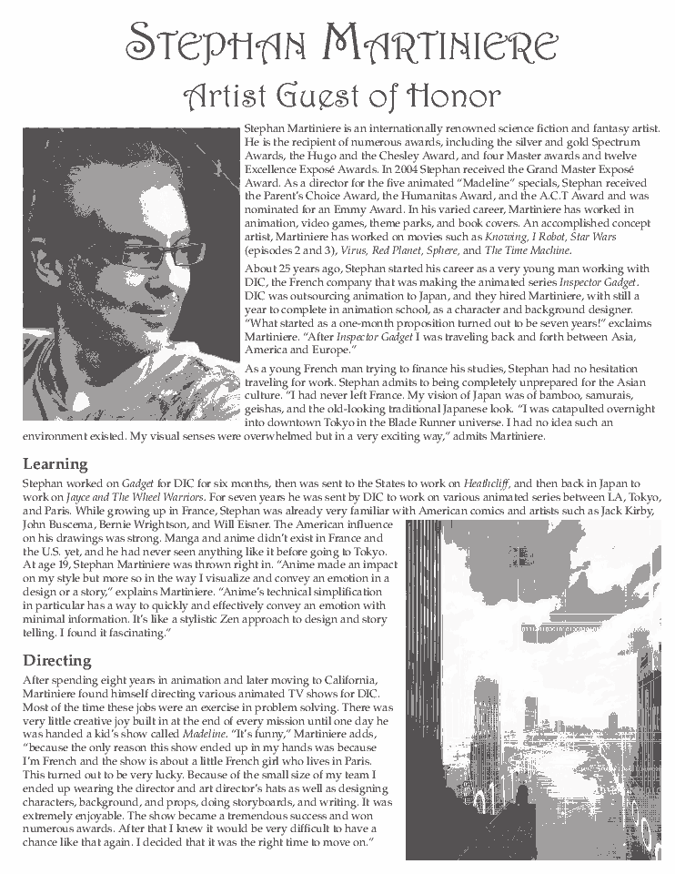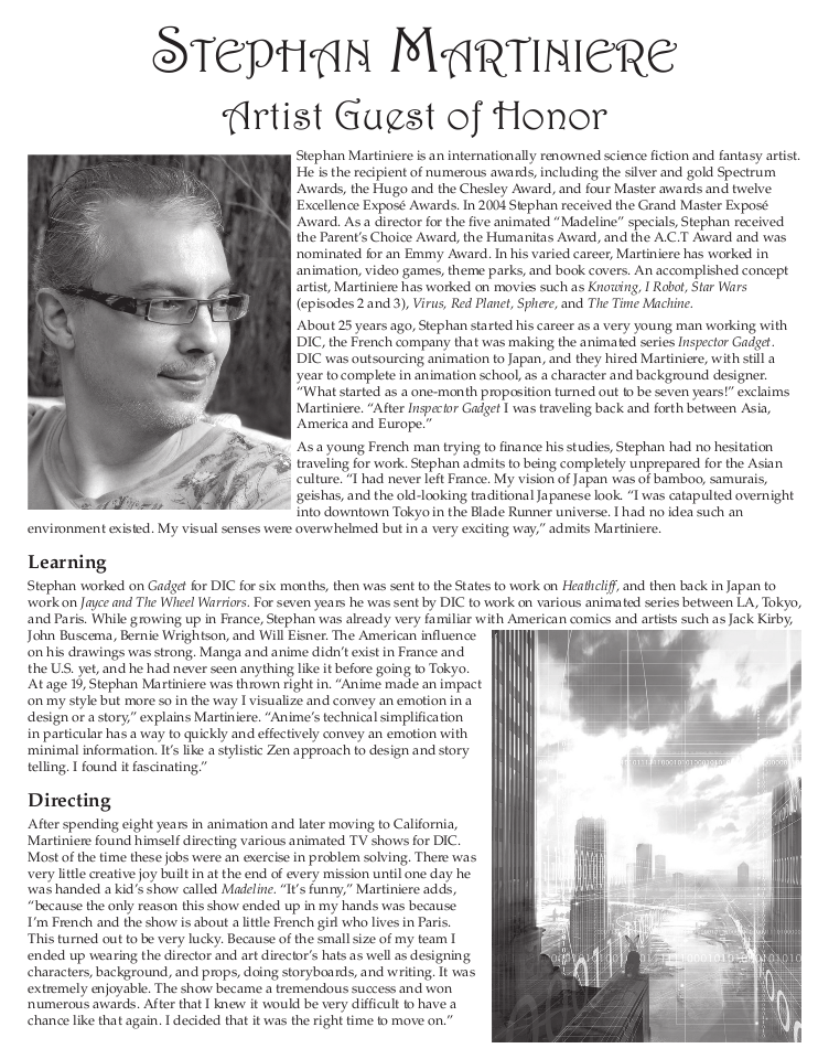 Advertisements remain property of the advertisers. Art by Stephan Martiniere is © Stephan Martiniere and reproduced here by permission. Guest of honor photos, book covers and film images are © as indicated.