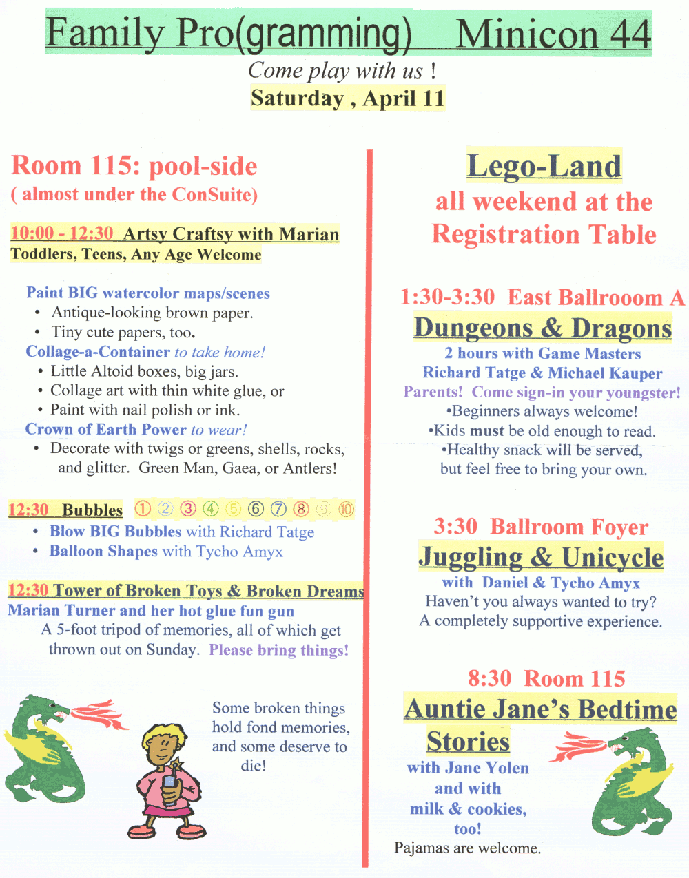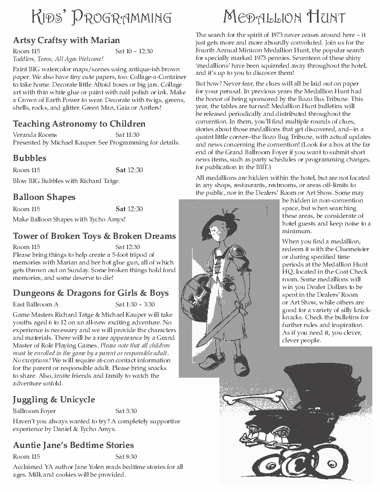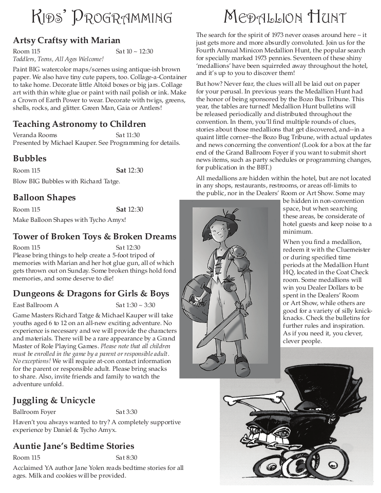 The Minicon 44 Pocket Program, Medallion Hunt Bulletin and Kids' Programming Flyer by the