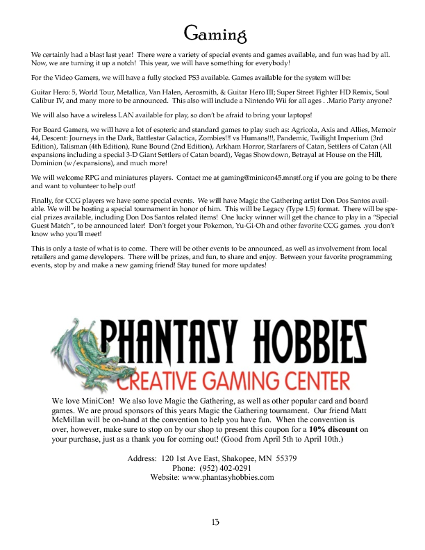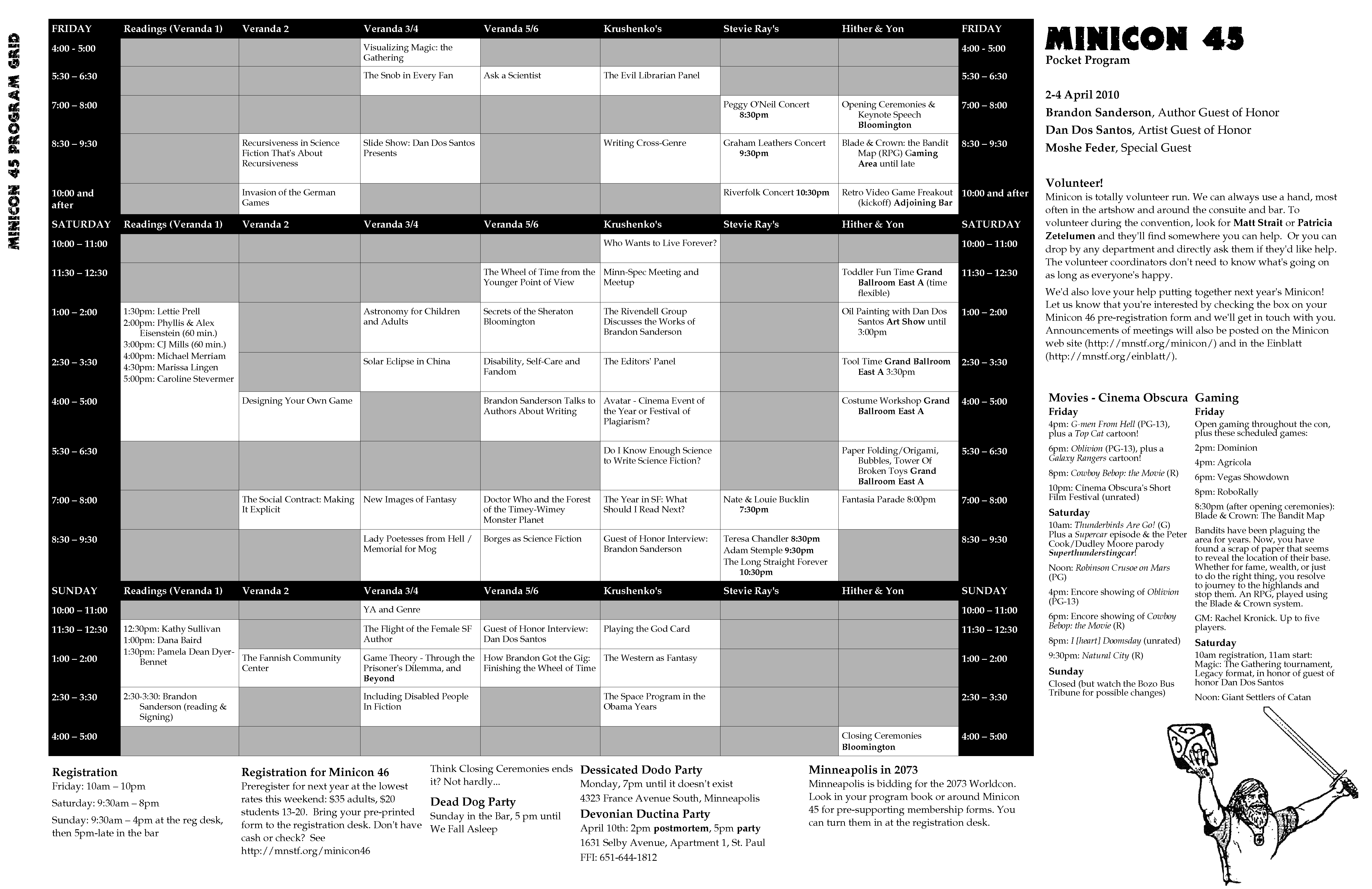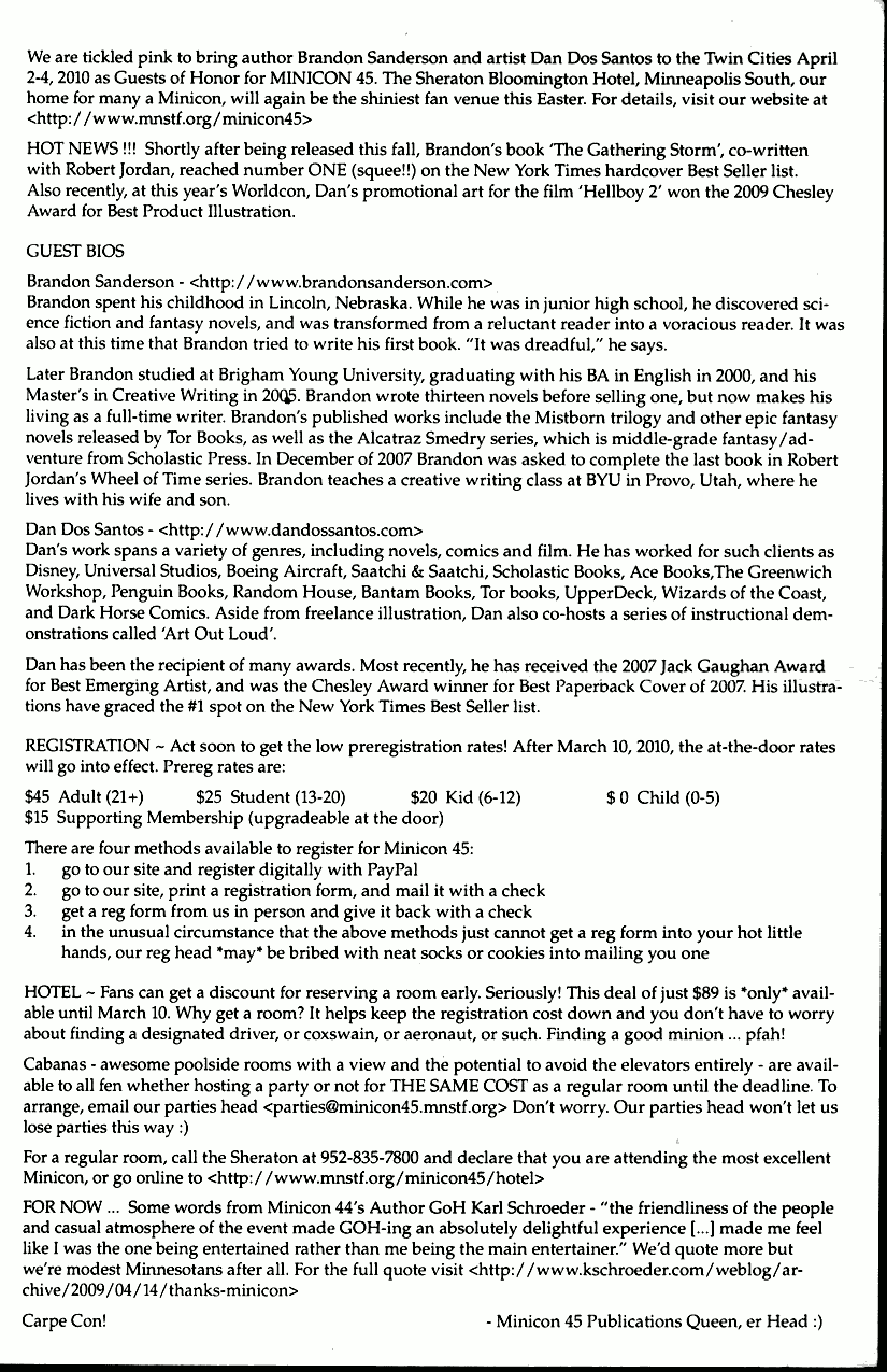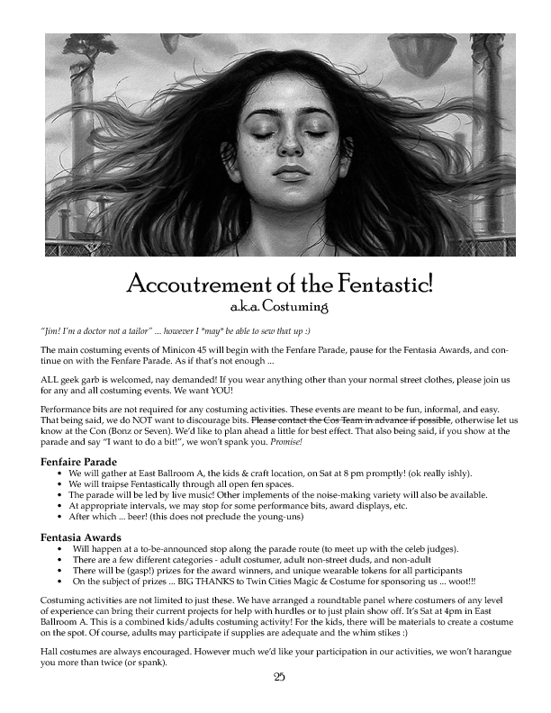 Minicon 45 is over. Please see the main Minicon page for information about the upcoming Minicon. This page remains as a historical record. Please contact [archivist |at| mnstf |dot| org] with questions or comments.