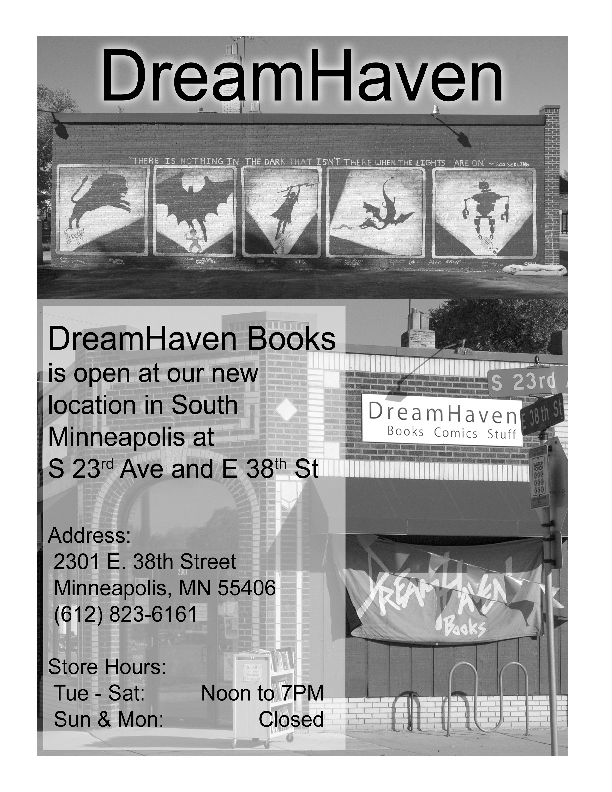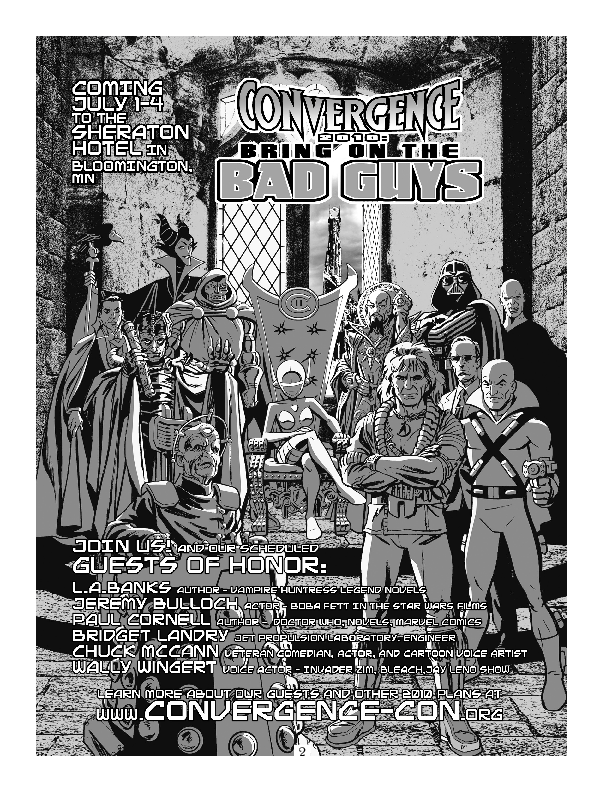 Despite (attempted?) use of color in issue 1, all issues were printed in black and white (or black on colored paper, anyway). Progress Report 1And here's Progress Report 1: Progress Report 2And finally, Progress Report 2: T-shirtsMinicon 45 had a short sleeve and a long sleeve t-shirt. Here are pictures of the short sleeve one (this is the front, the back is blank): And the long sleeved one (the back is, again, blank): Document Licenses