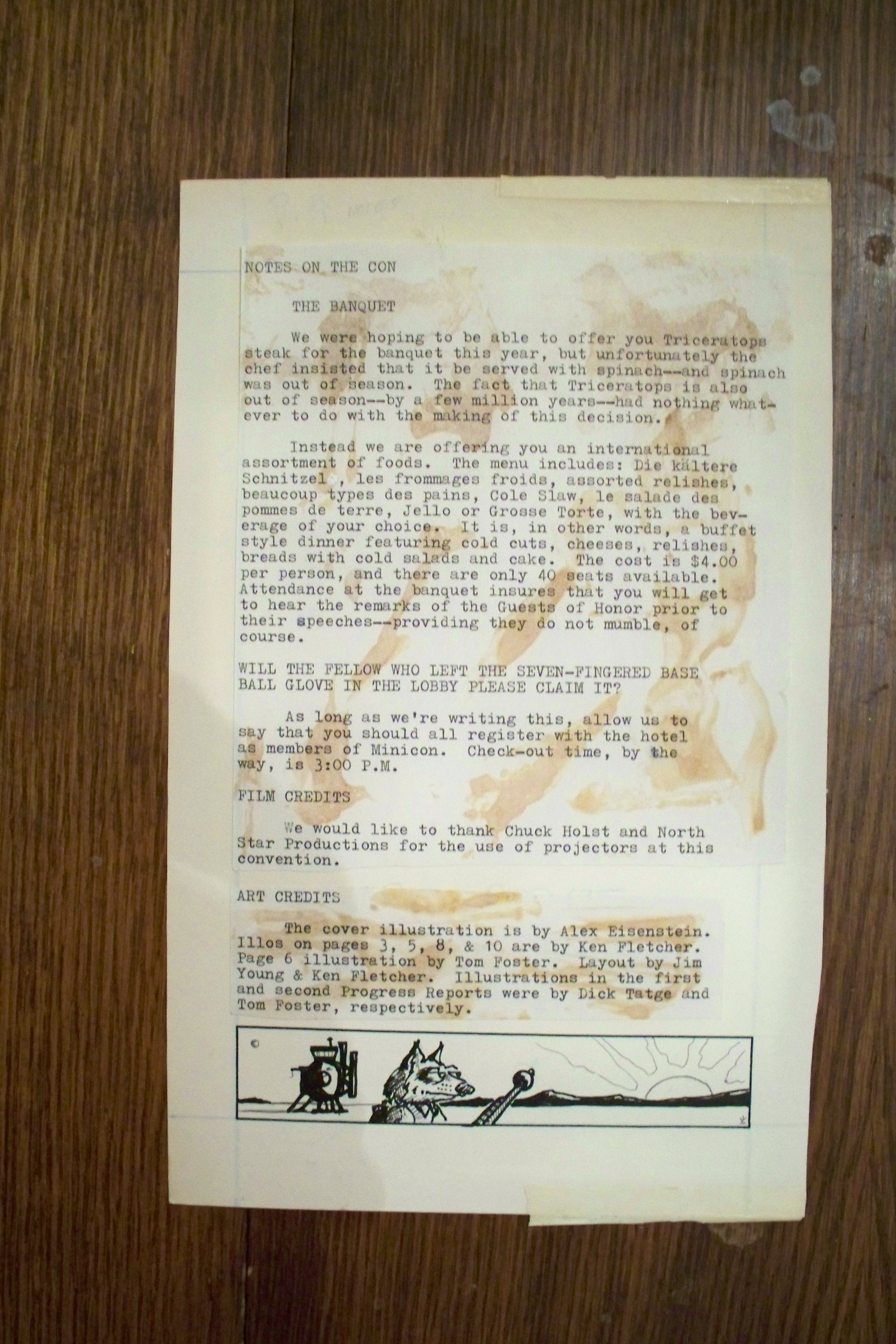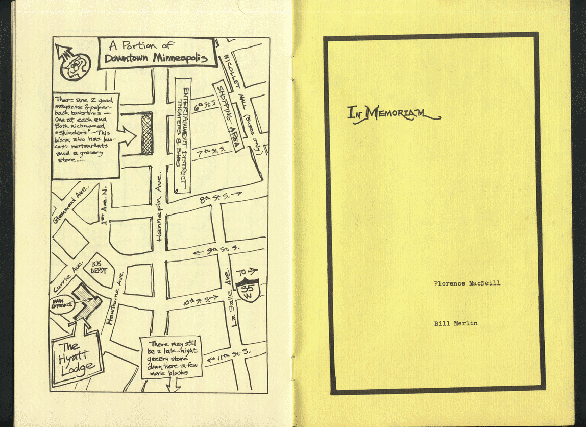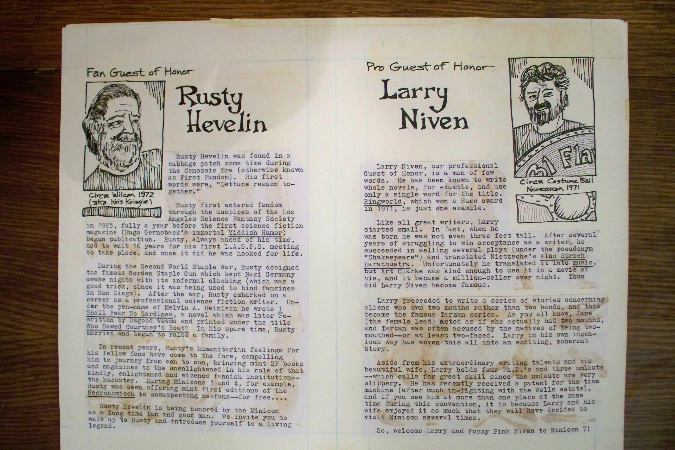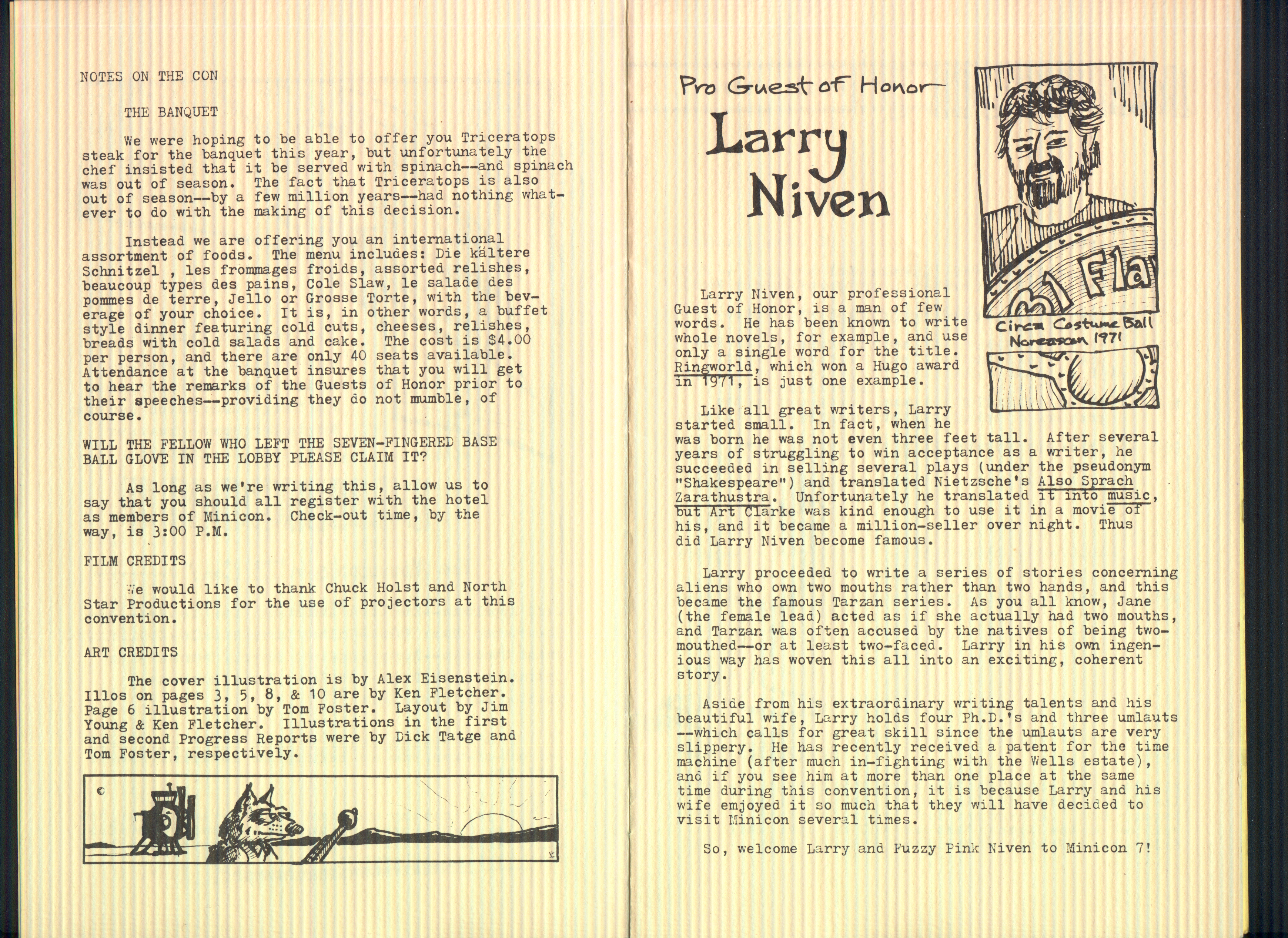 Long before we found an actual copy of the Minicon 7 program book, we found the original paste-up boards. They are missing only page 9, an advertisement. Here is a PDF of photographs of all the boards.
