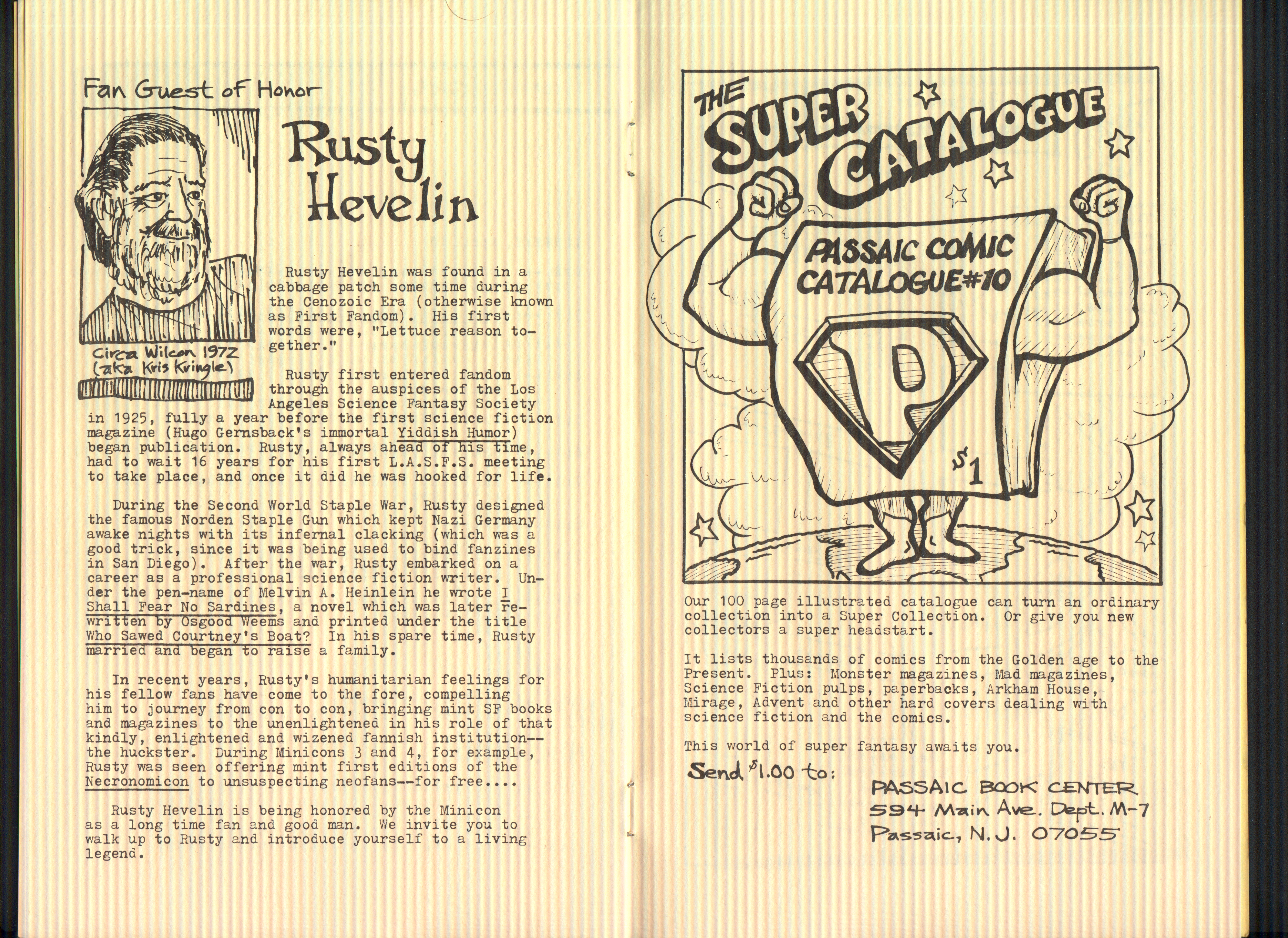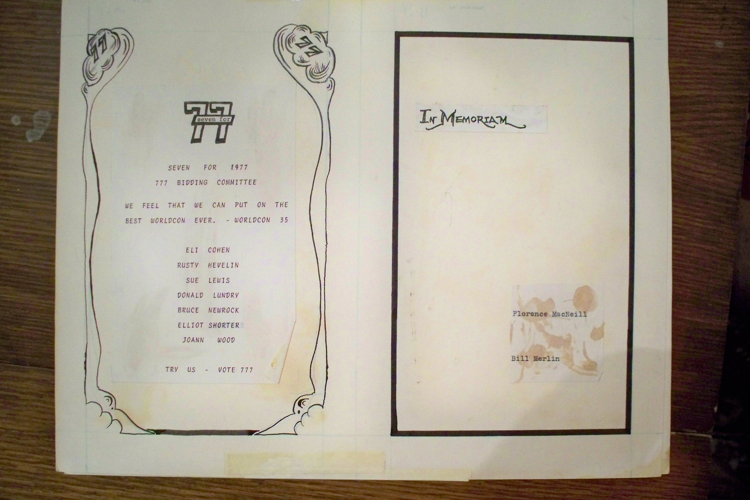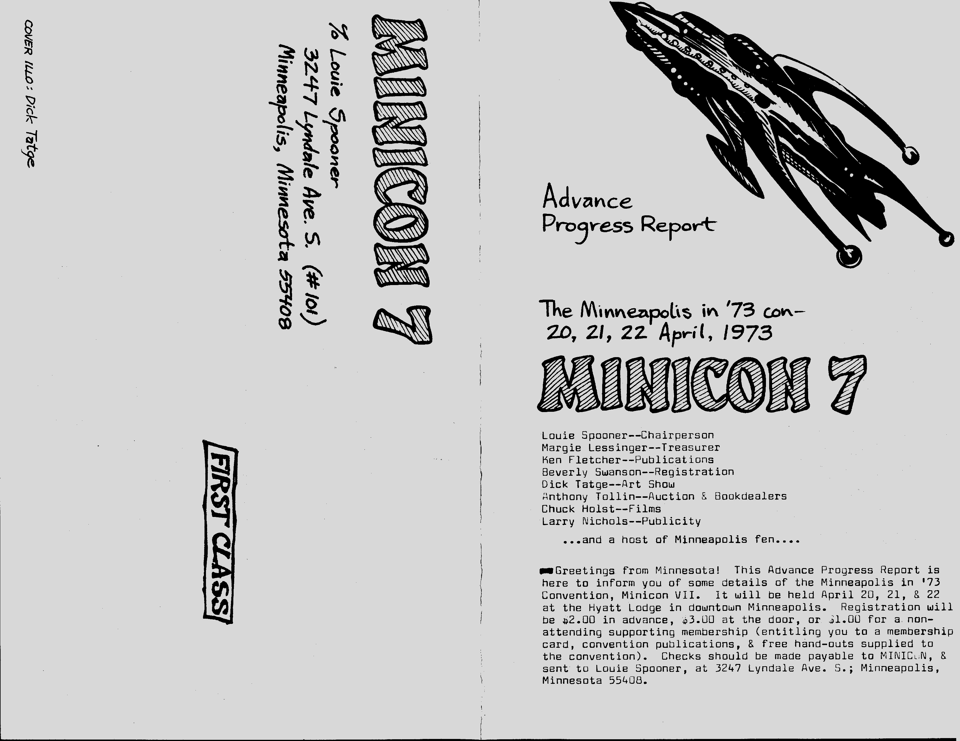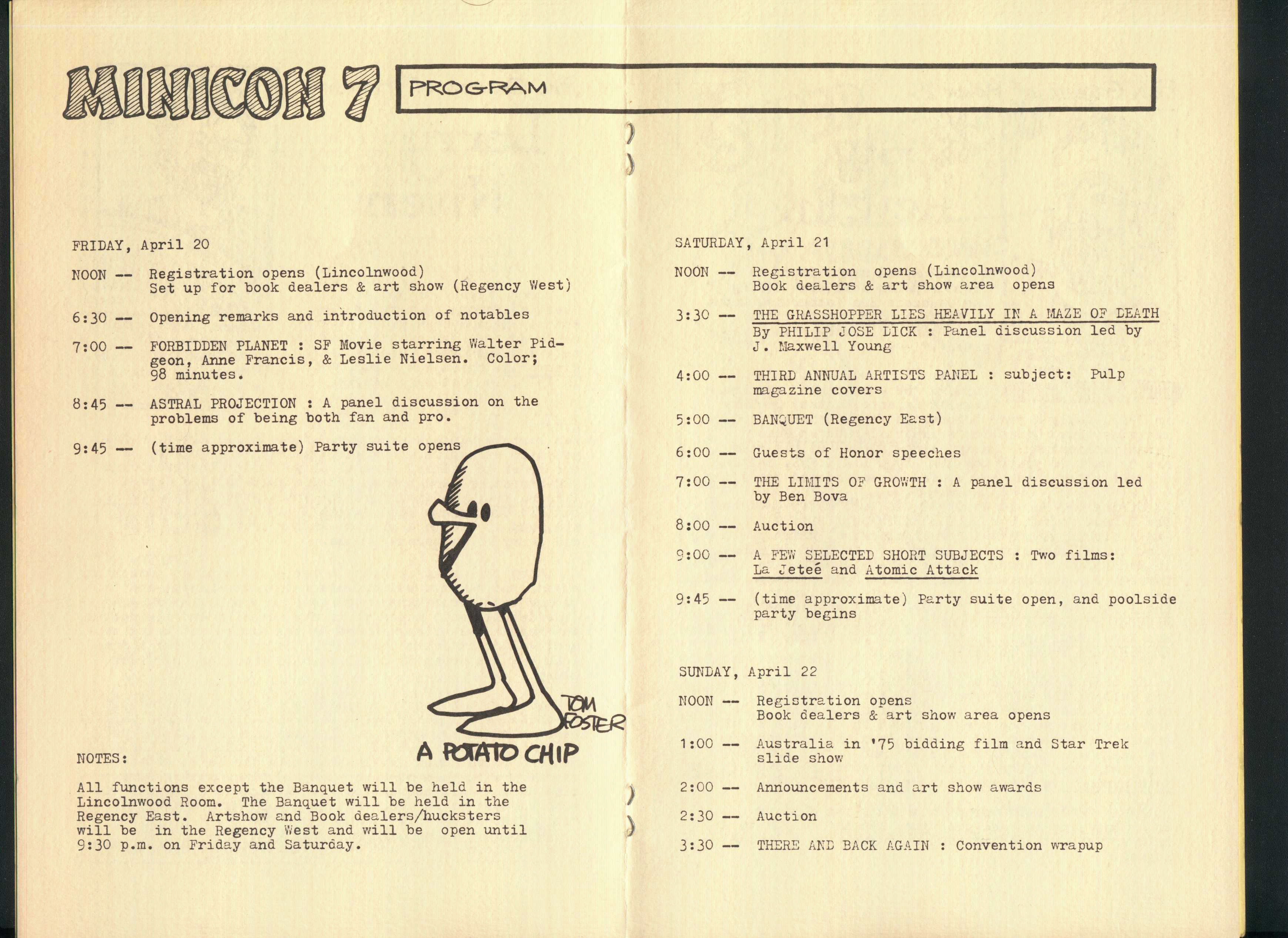 Long before we found an actual copy of the Minicon 7 program book, we found the original paste-up boards. They are missing only page 9, an advertisement. Here is a PDF of photographs of all the boards.